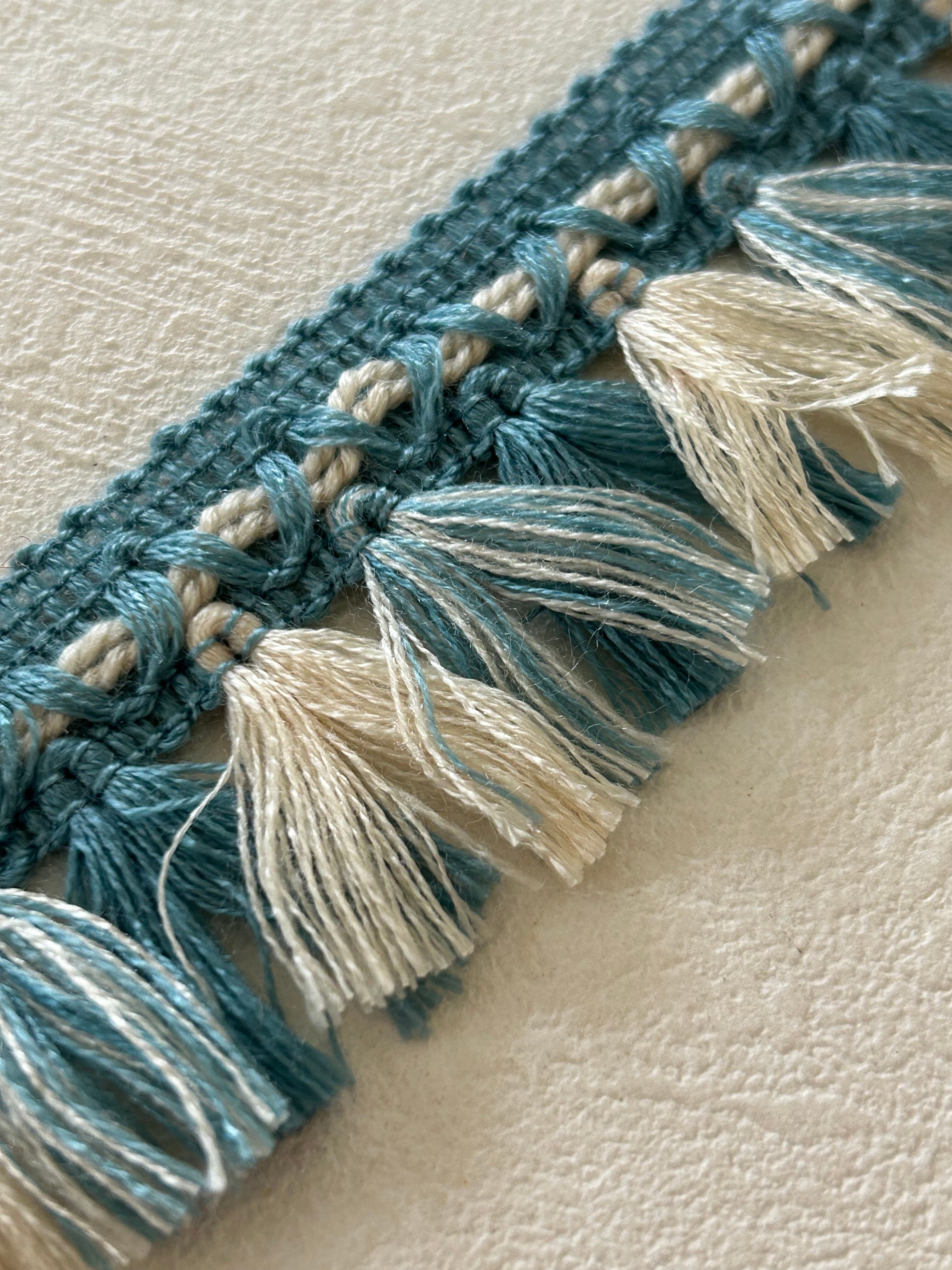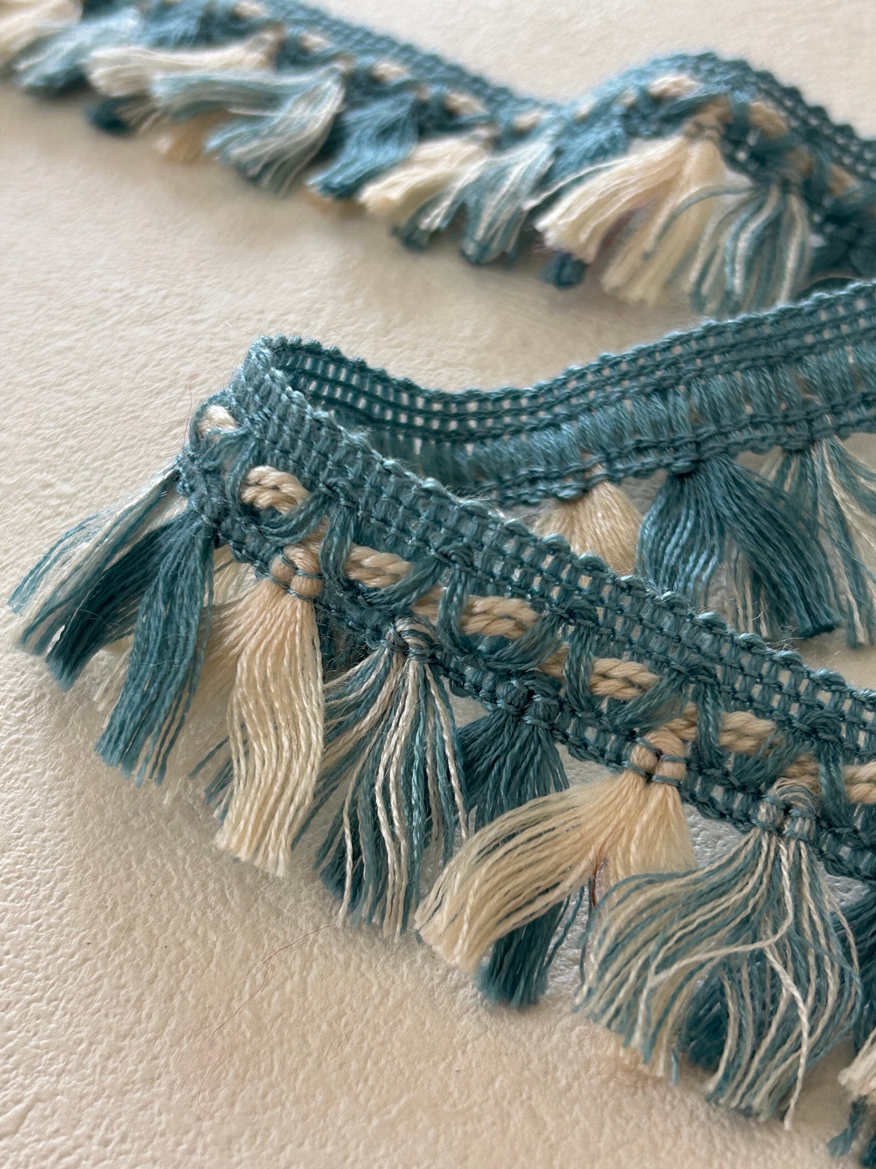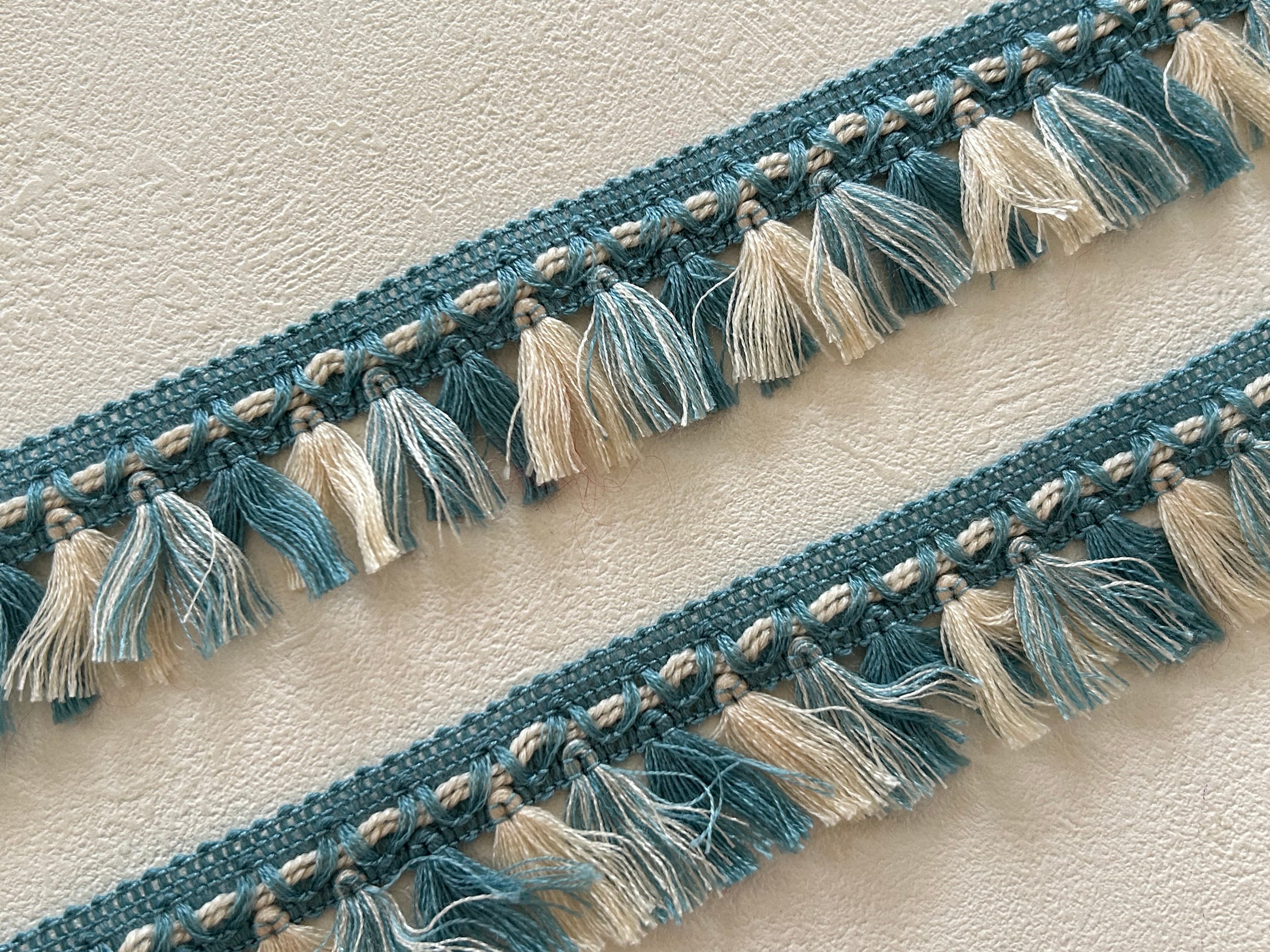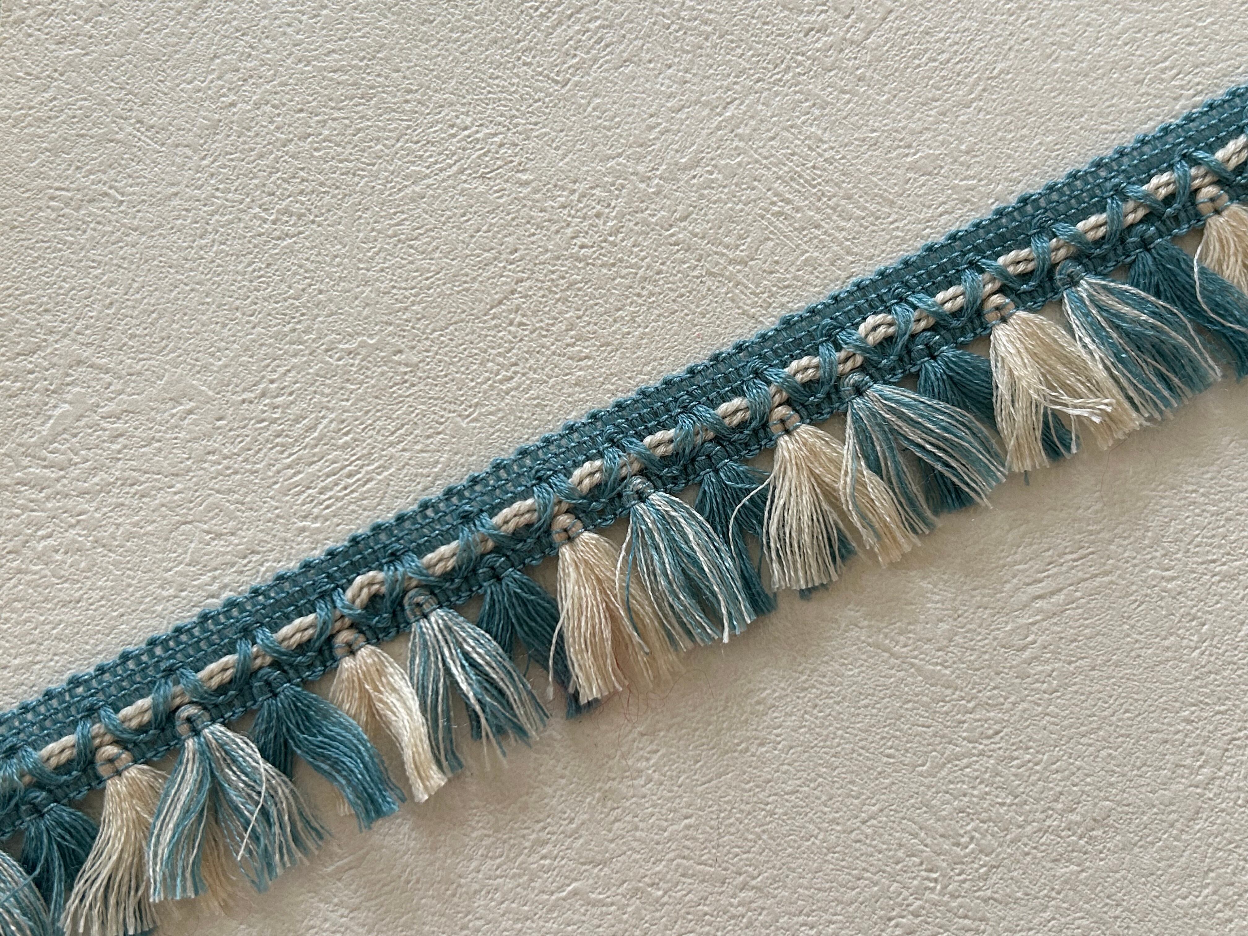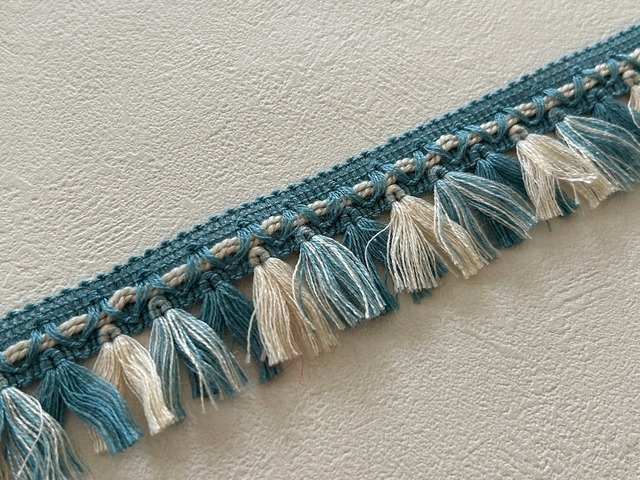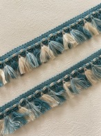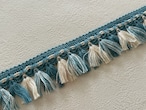 フランスVintage フリンジブレード 115cm デッドストック ライトブルー×アイボリー カルトナージュ デコレーション材 カットブレード