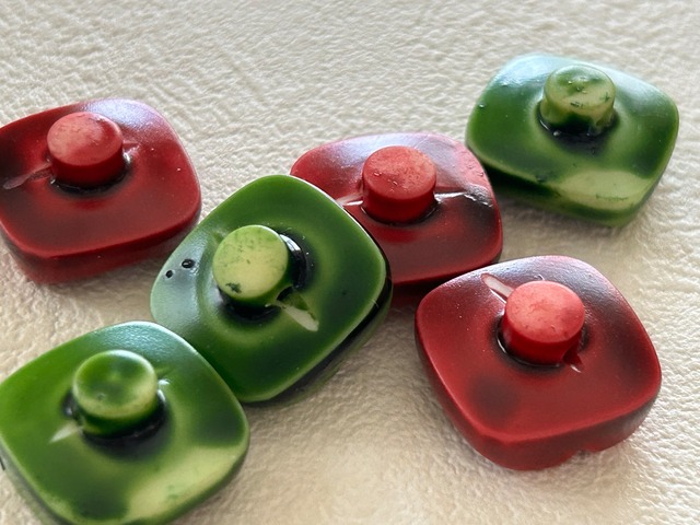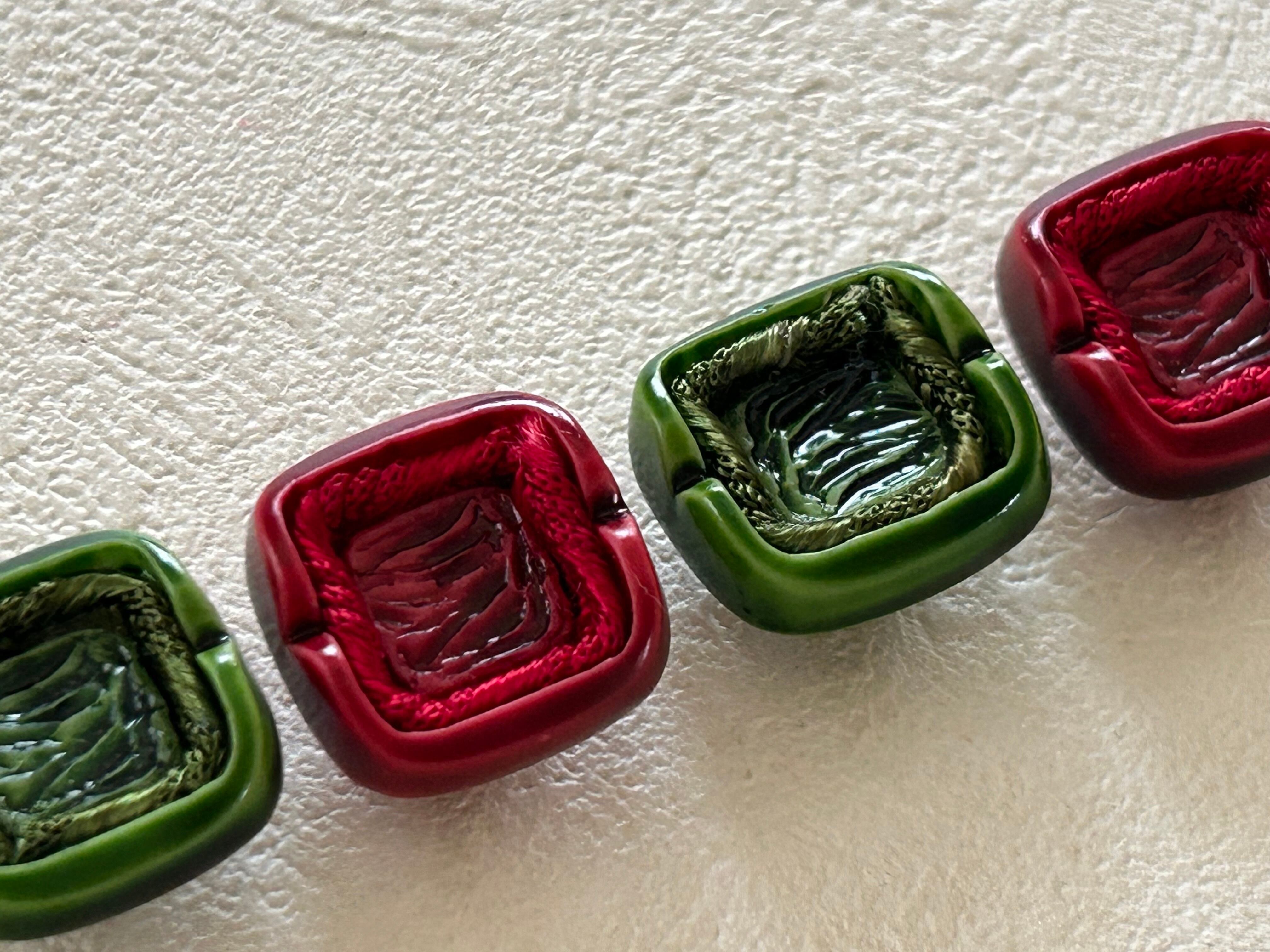 Japanese Vintage ヴィンテージボタン スクウェア レッド/グリーン 17mm コード レトロボタン アクセサリーパーツ 装飾材 カルトナージュ