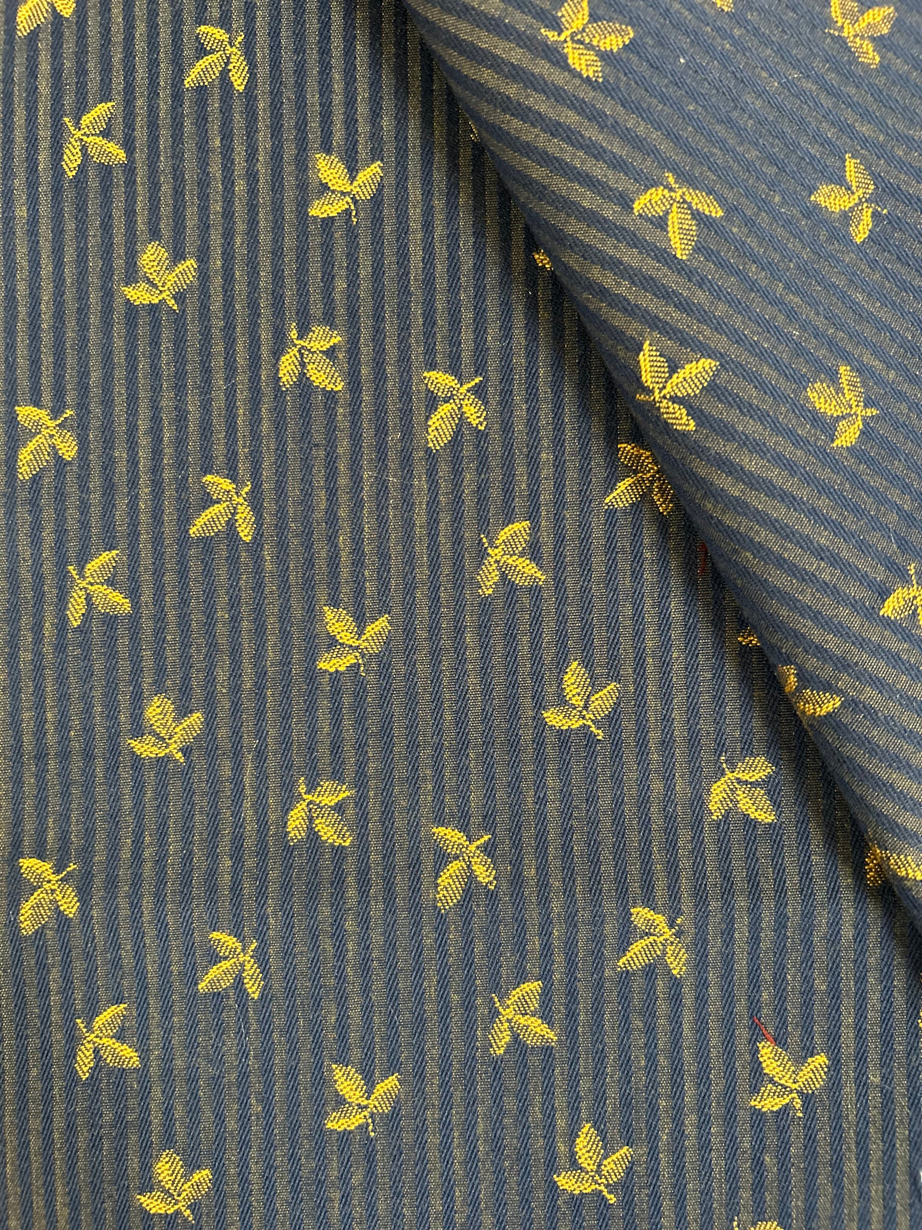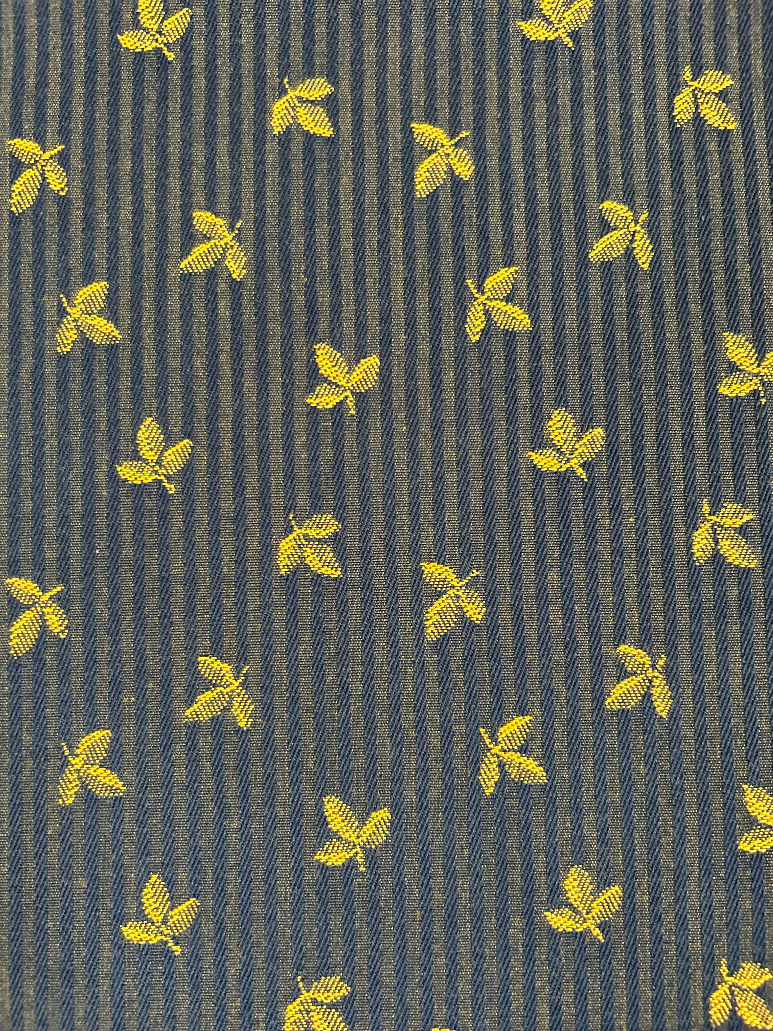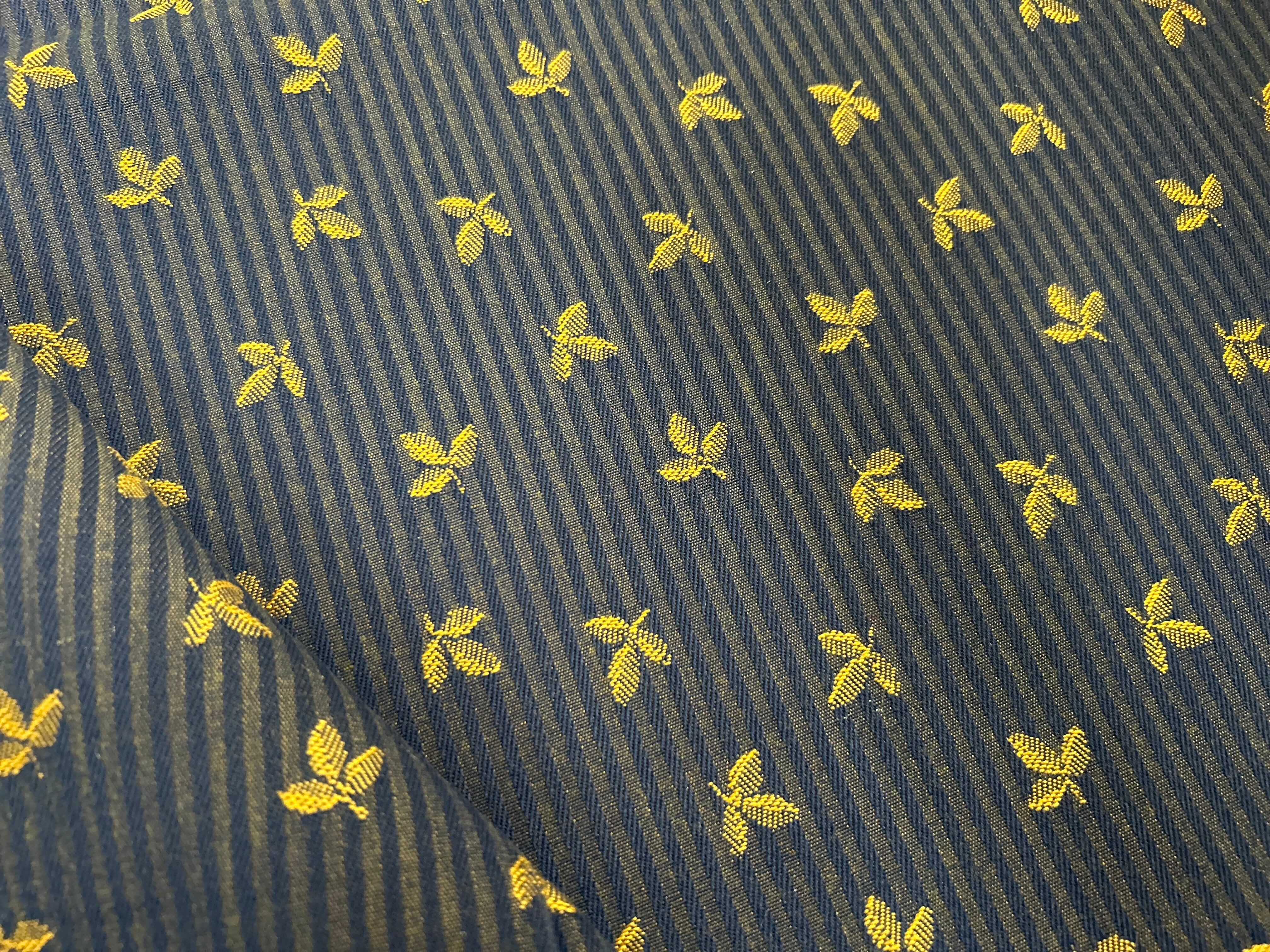 フランス ジャガード生地 リーフ柄 ストライプ ネイビー×イエローゴールド カルトナージュ スツール バッグ ポーチ