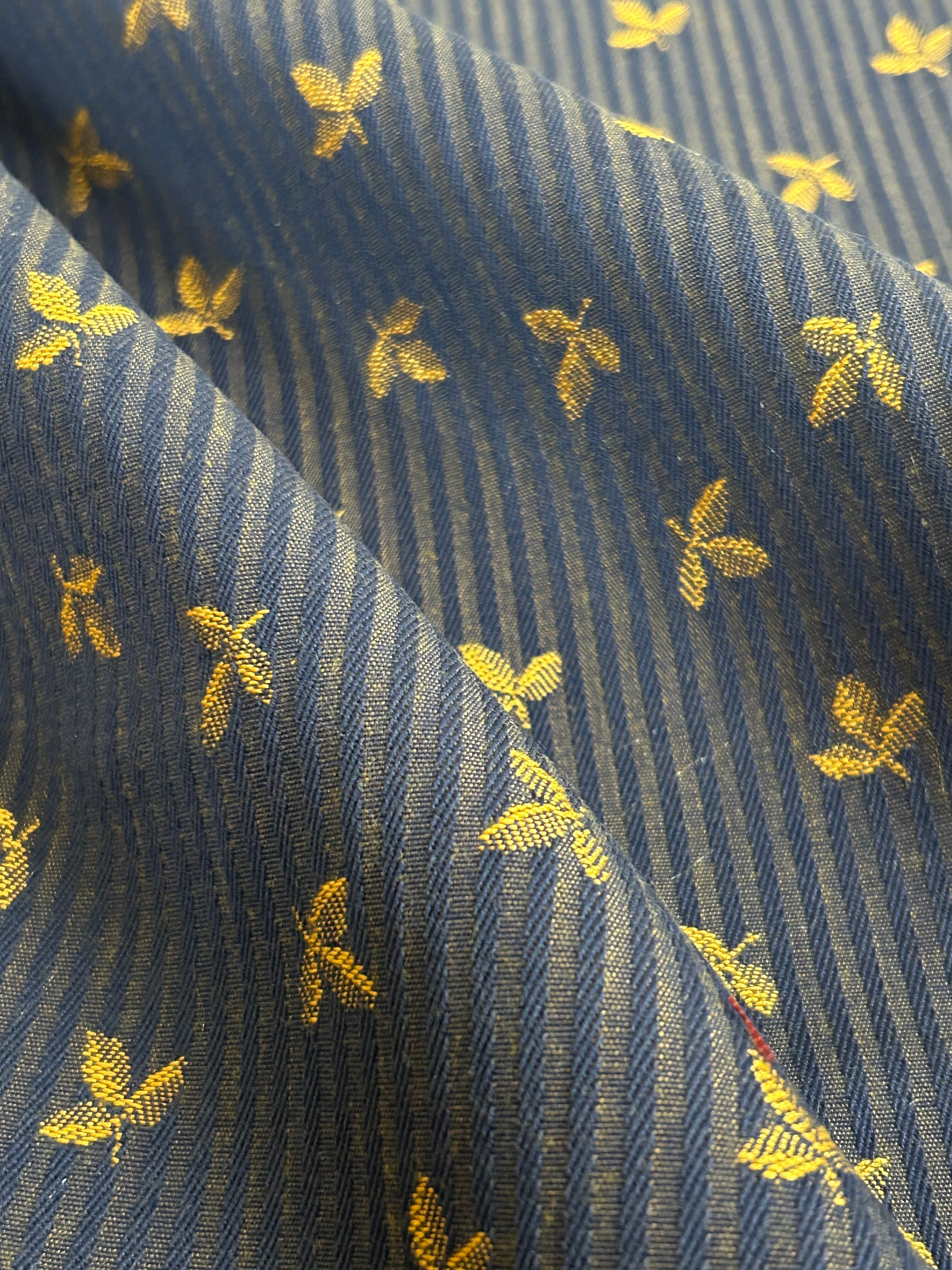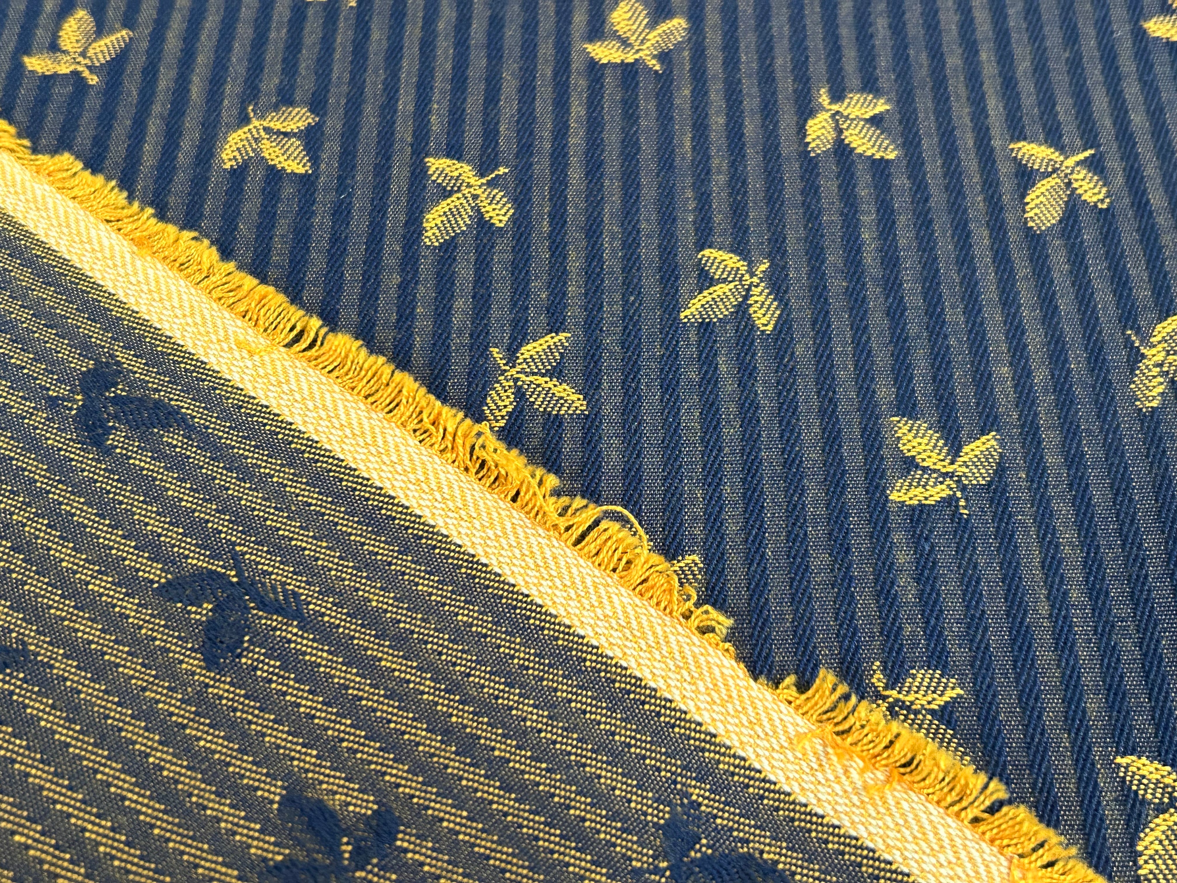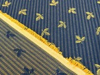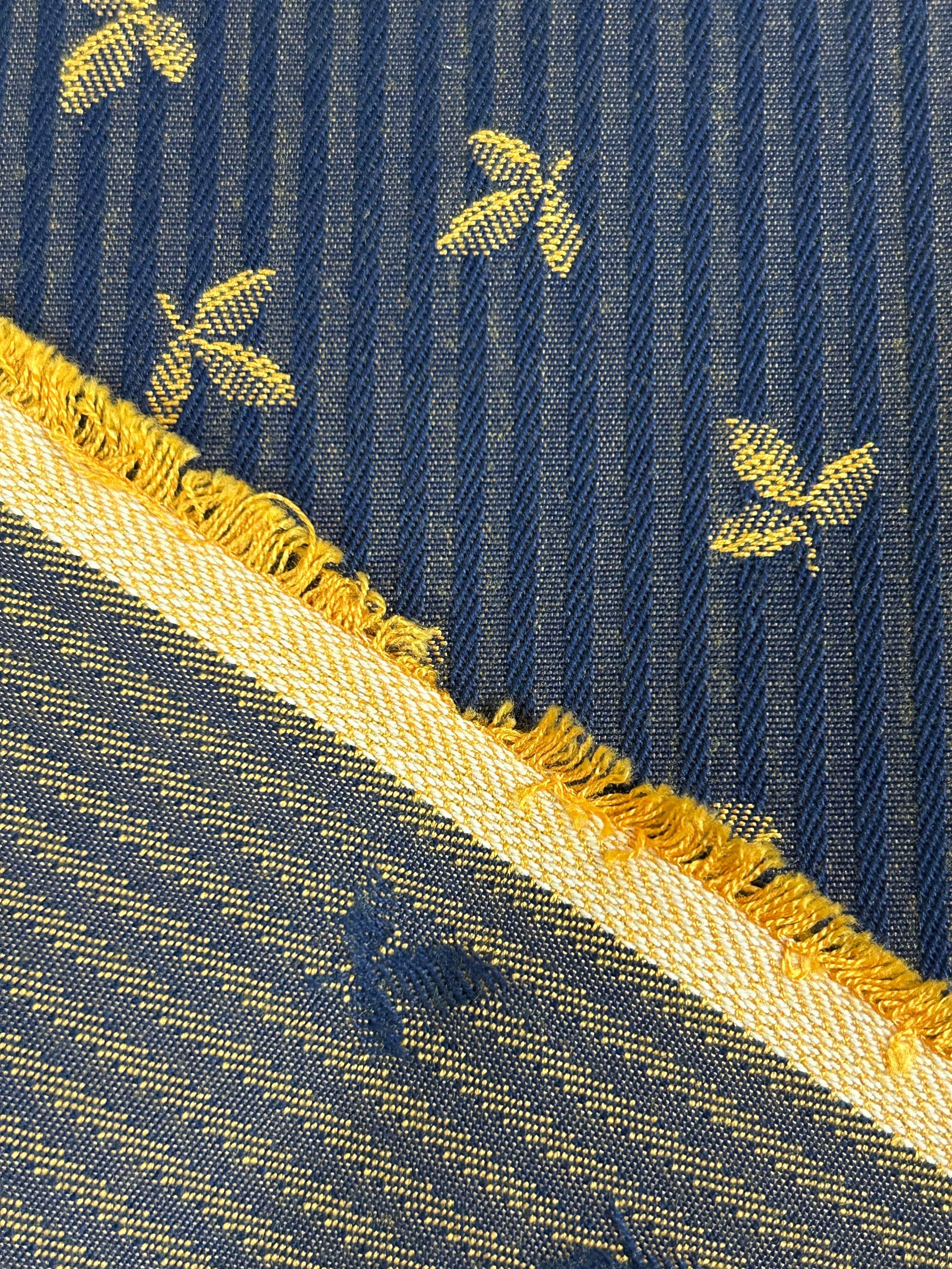 フランス ジャガード生地 リーフ柄 ストライプ ネイビー×イエローゴールド カルトナージュ スツール バッグ ポーチ