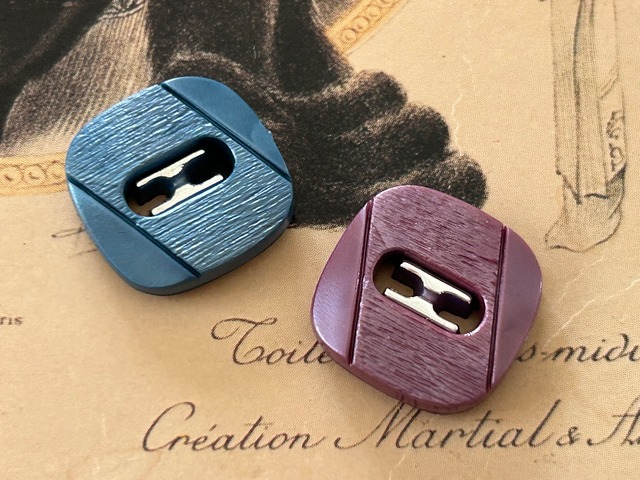 Japanese Vintage ボタン 角なしスクウェア パープル/ブルー 18mm 昭和レトロ アクセサリーパーツ 装飾材 カルトナージュ