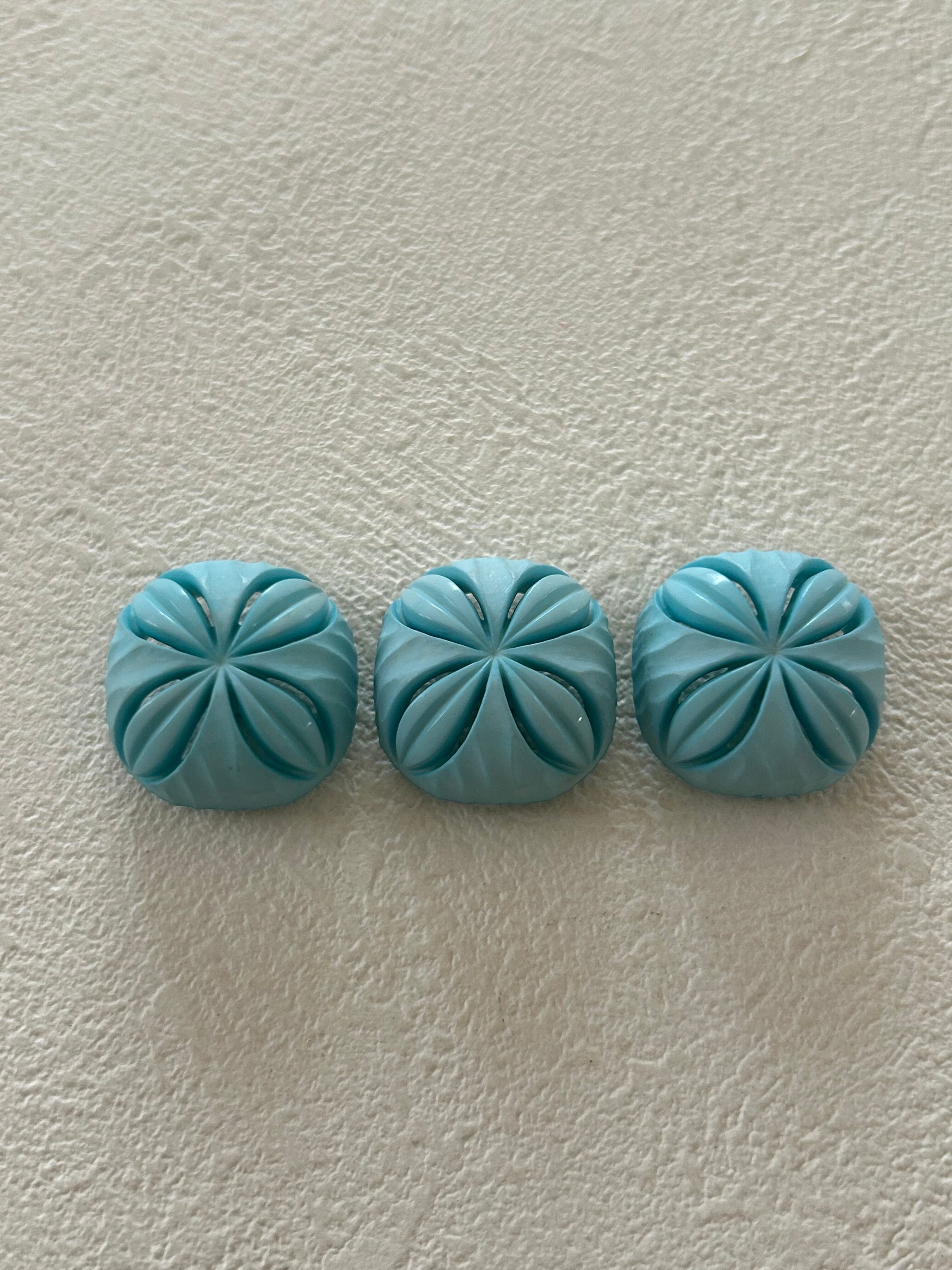 Japanese Vintage ボタン 21mm ドーム型 プラスチック ライトブルー 透かし デッドストック アクセサリーパーツ 装飾材 カルトナージュ