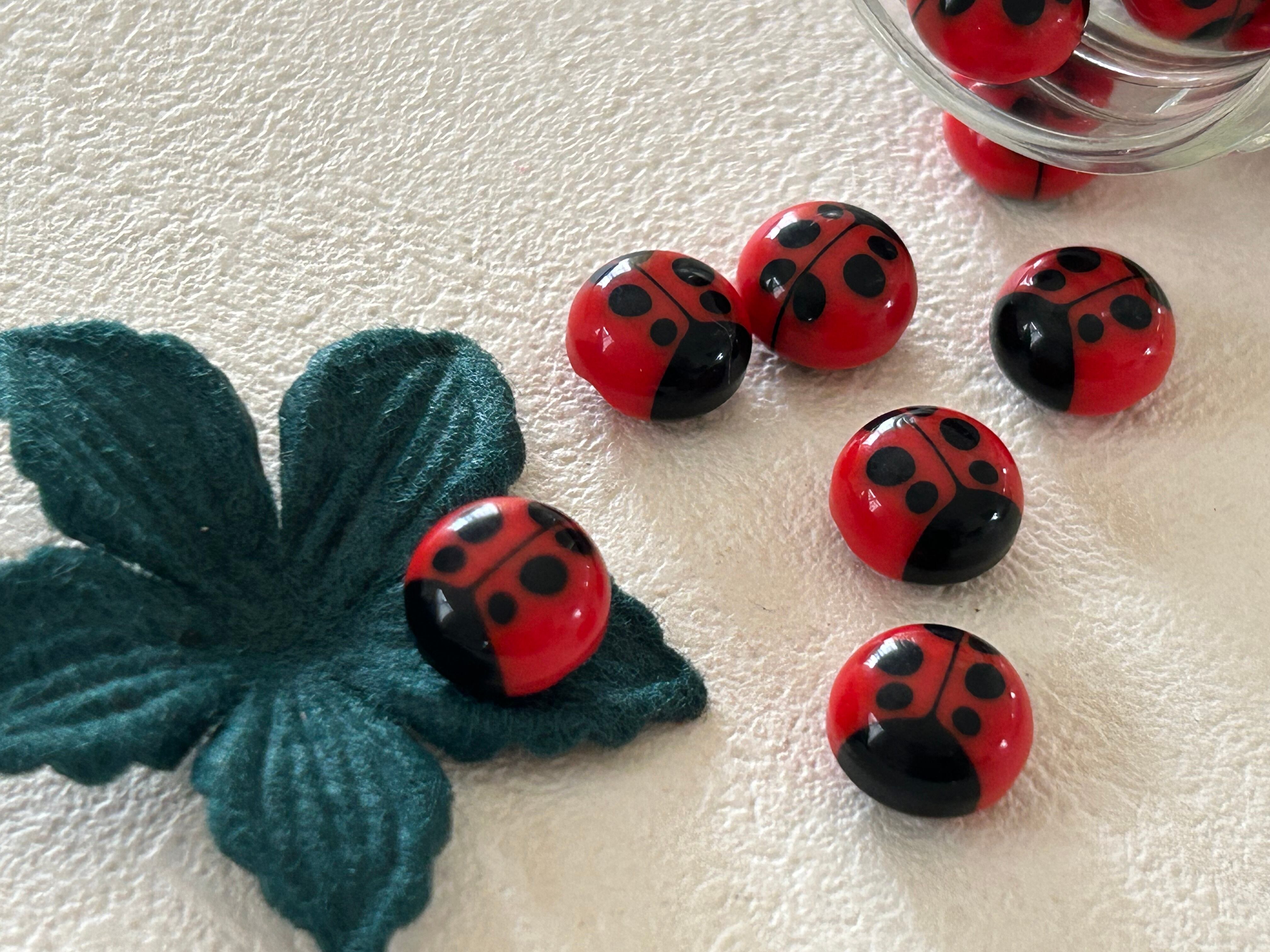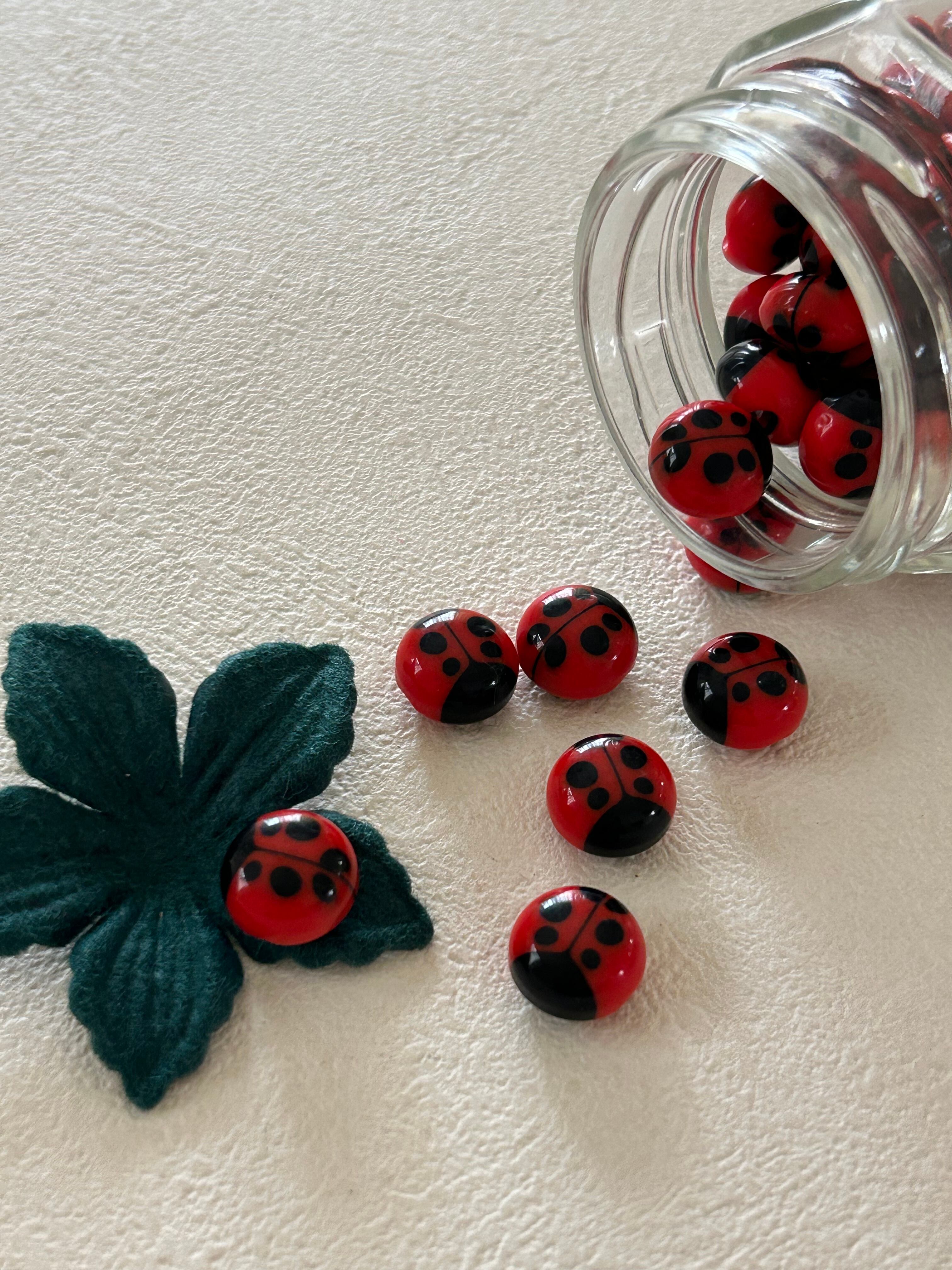 Japanese Vintage ボタン レディバグ てんとう虫 11mm プラスチック 昭和レトロ アクセサリーパーツ 装飾材 カルトナージュ