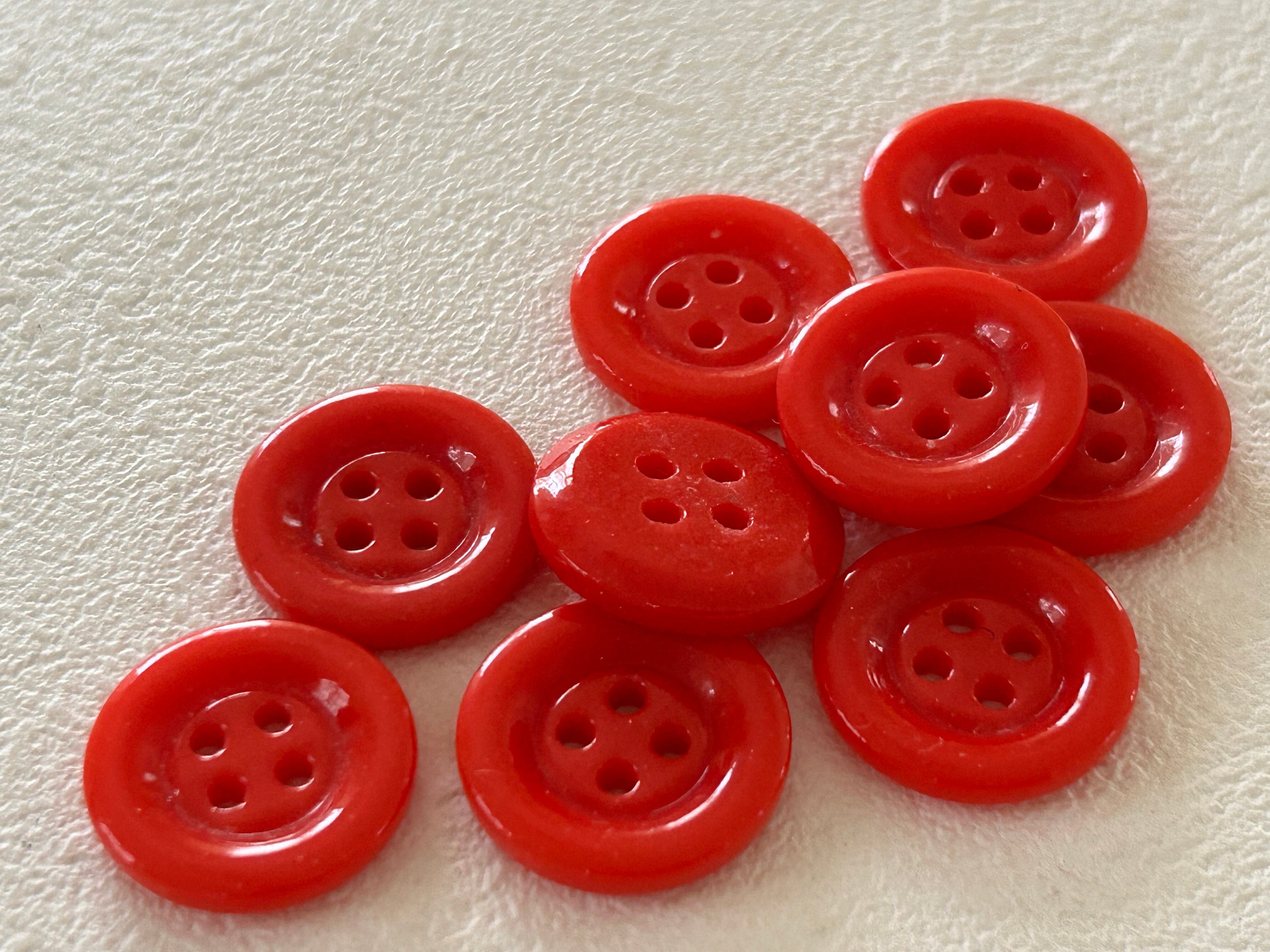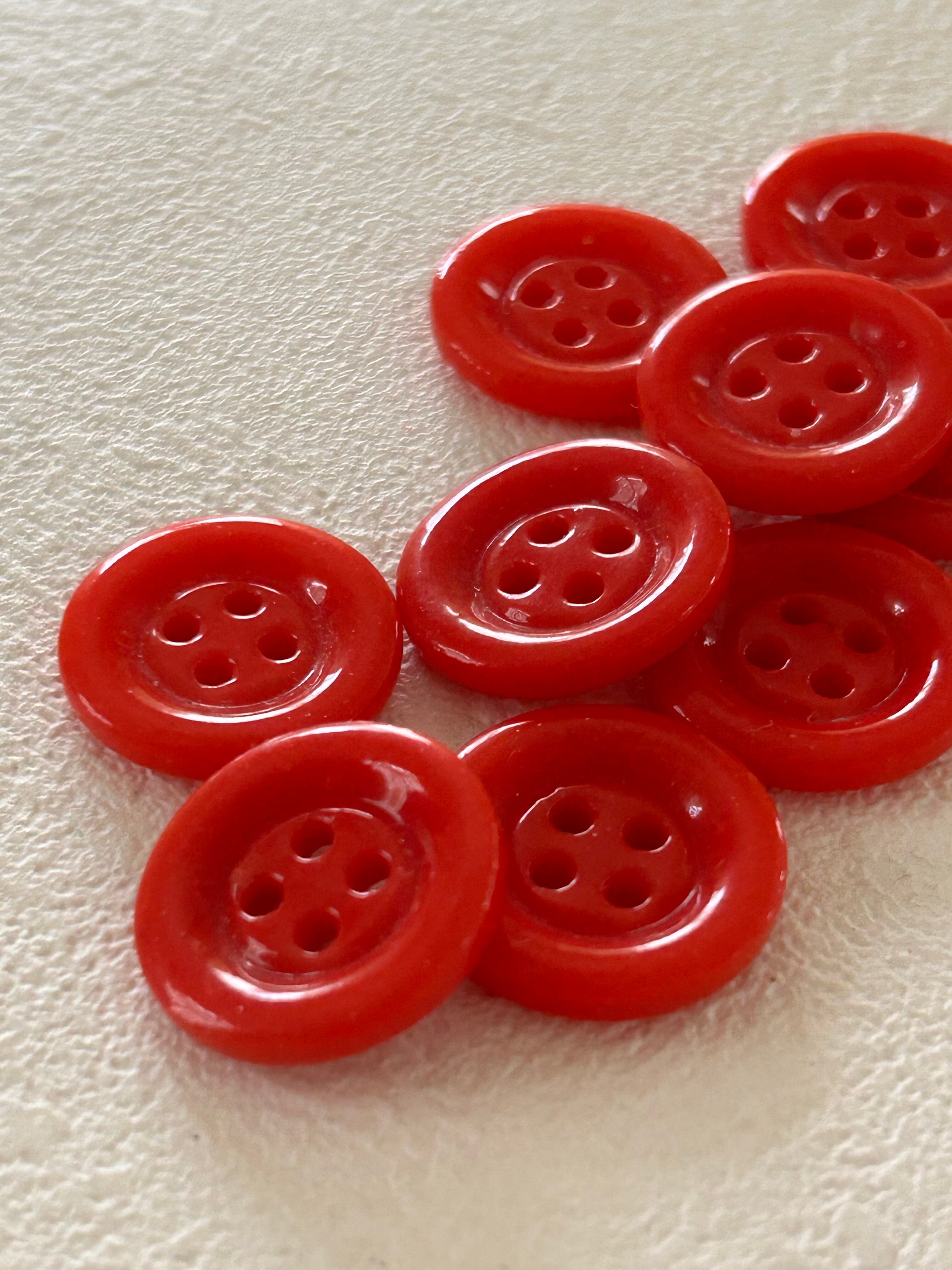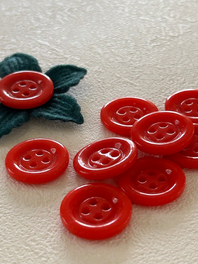 ぽってりとした赤色のシンプルな四つ穴ボタン。