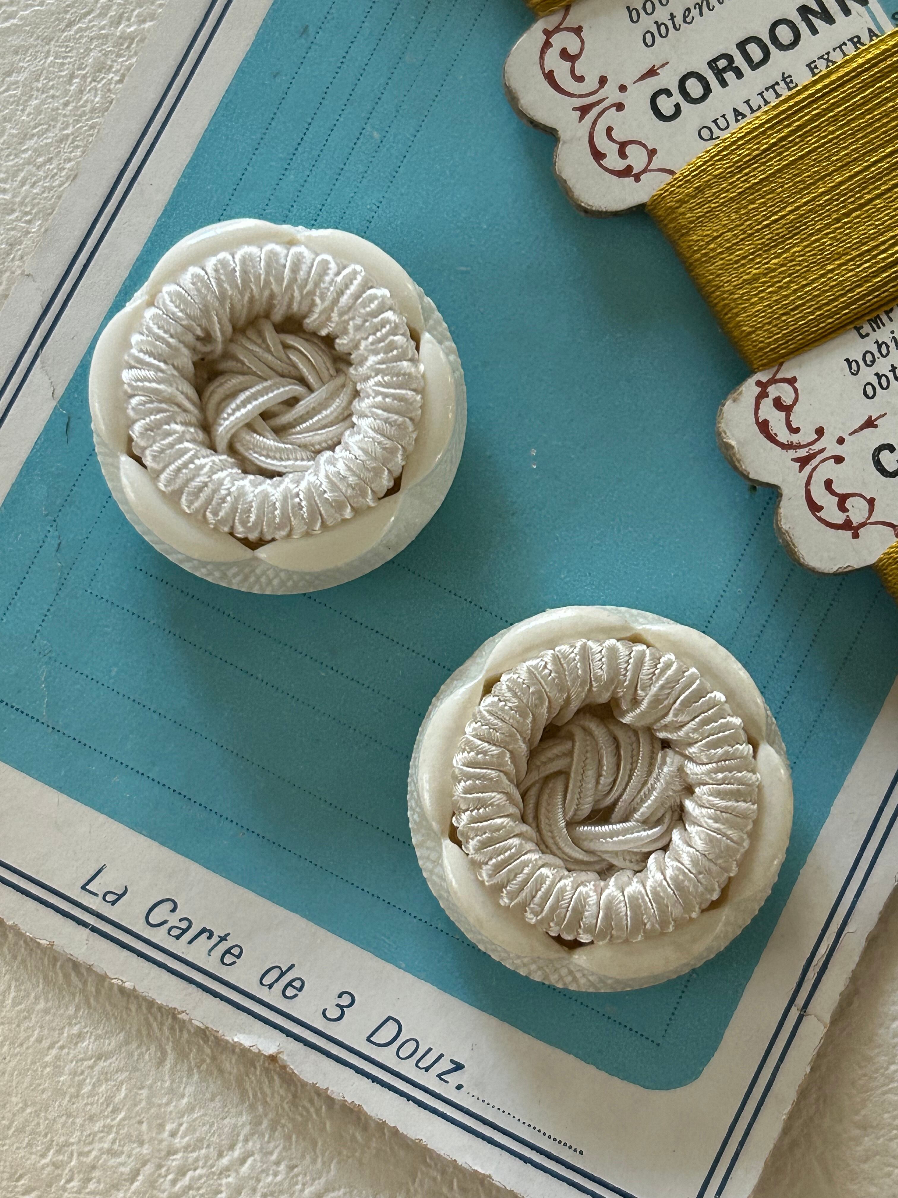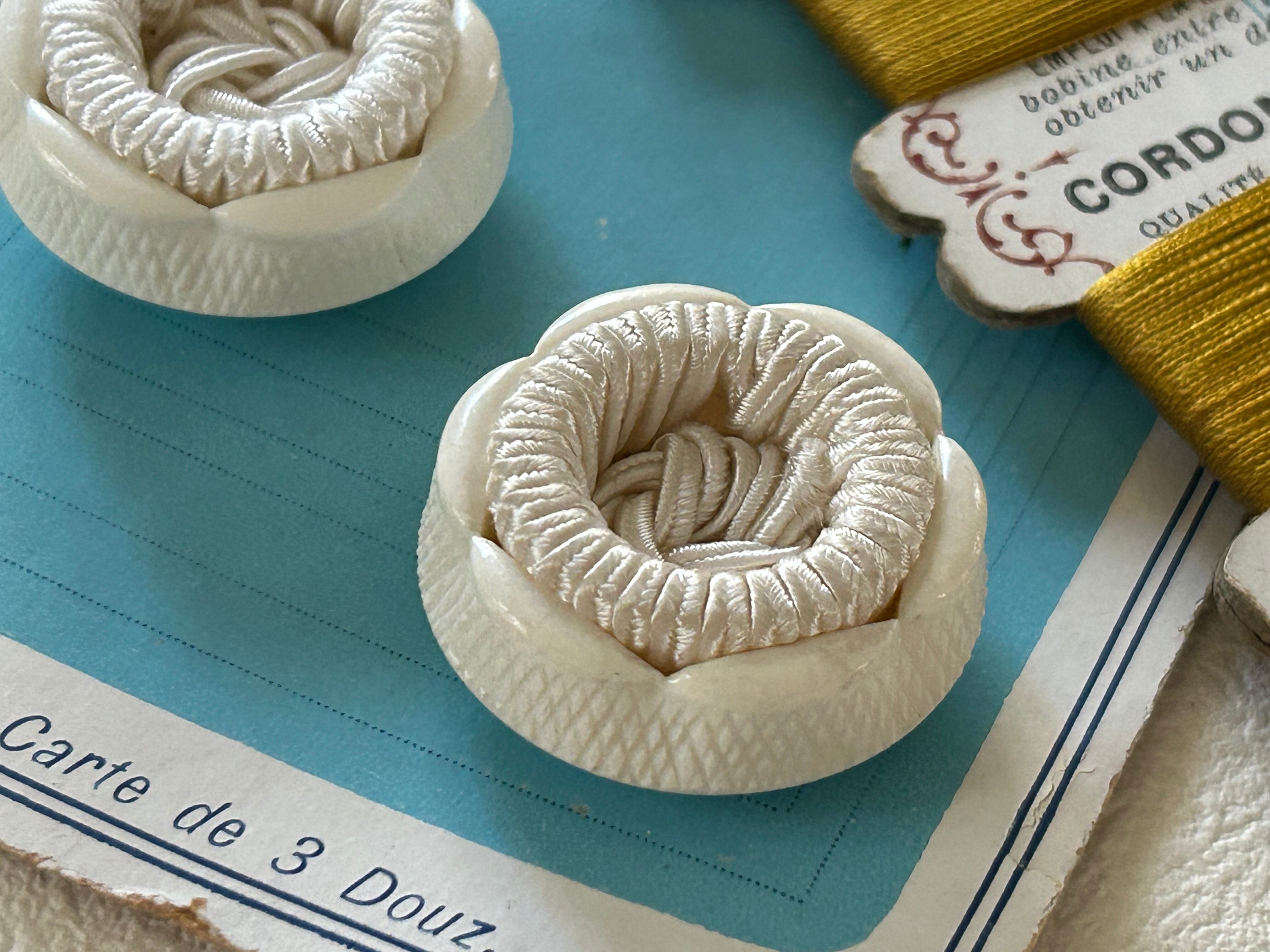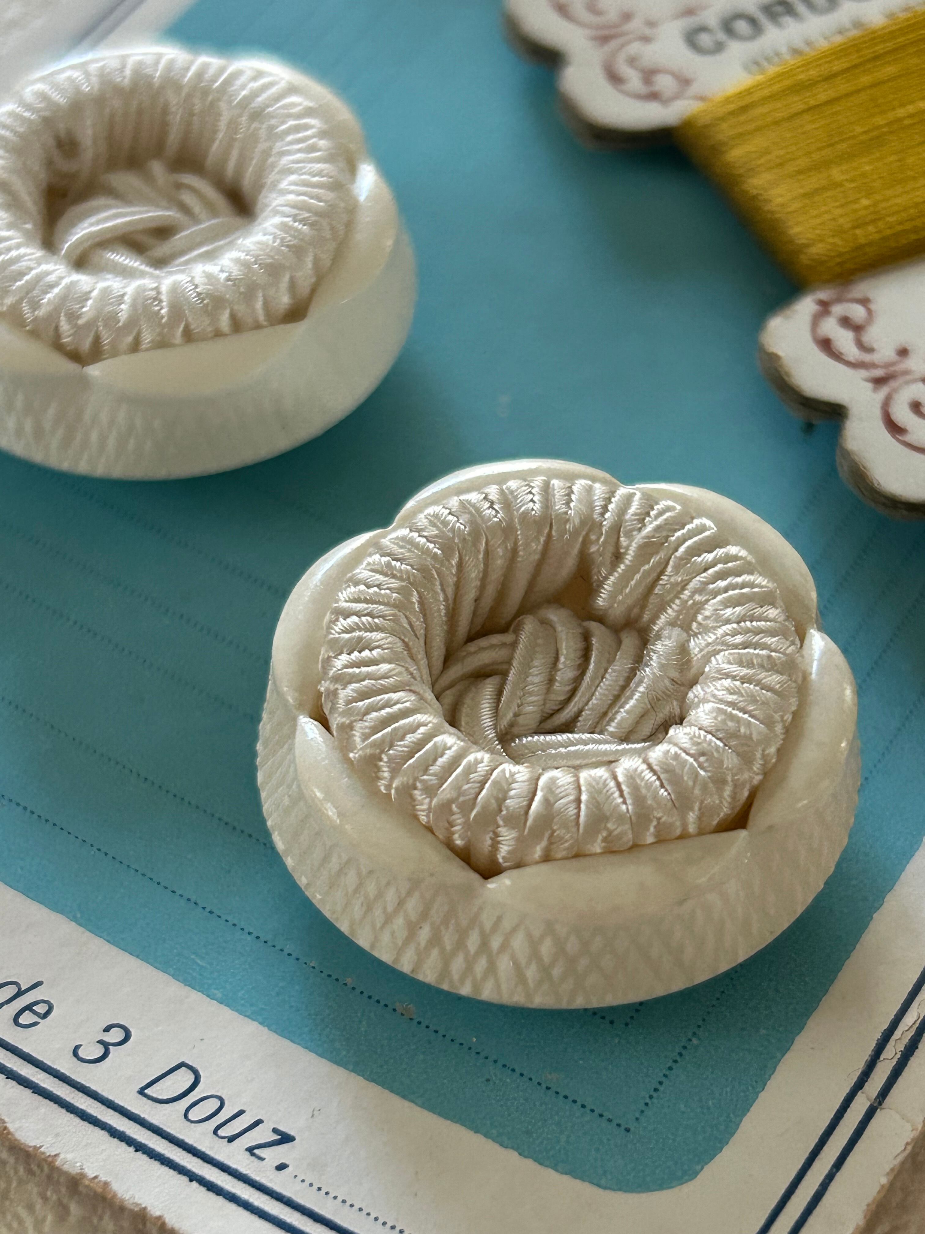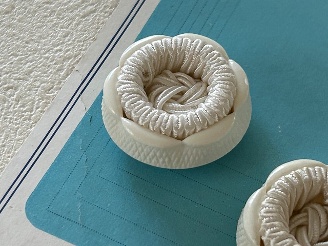 フランスVintage ヴィンテージボタン アイボリー コードボタン コード×プラスチック フラワー 30mm アクセサリーパーツ デコレーション材