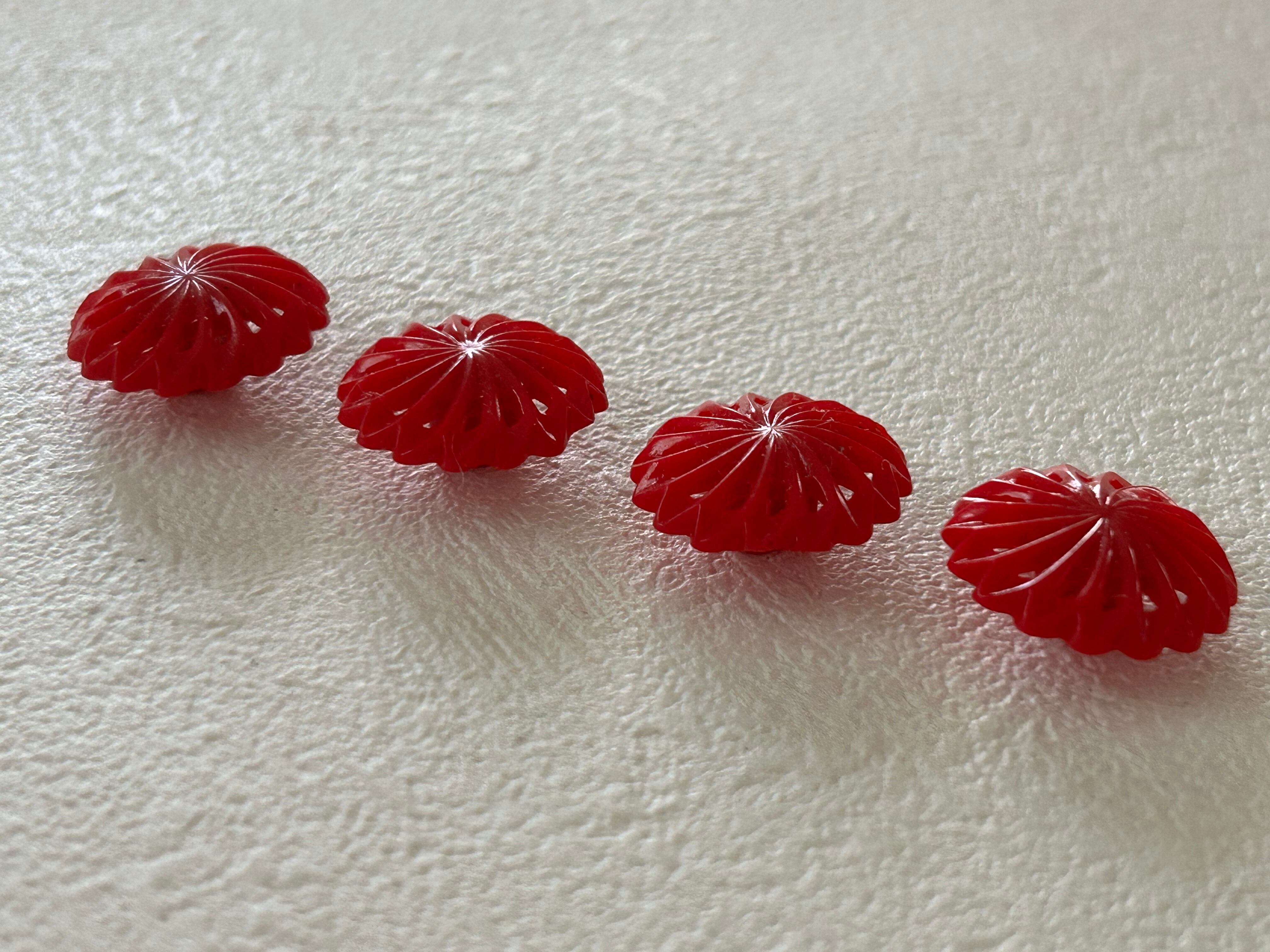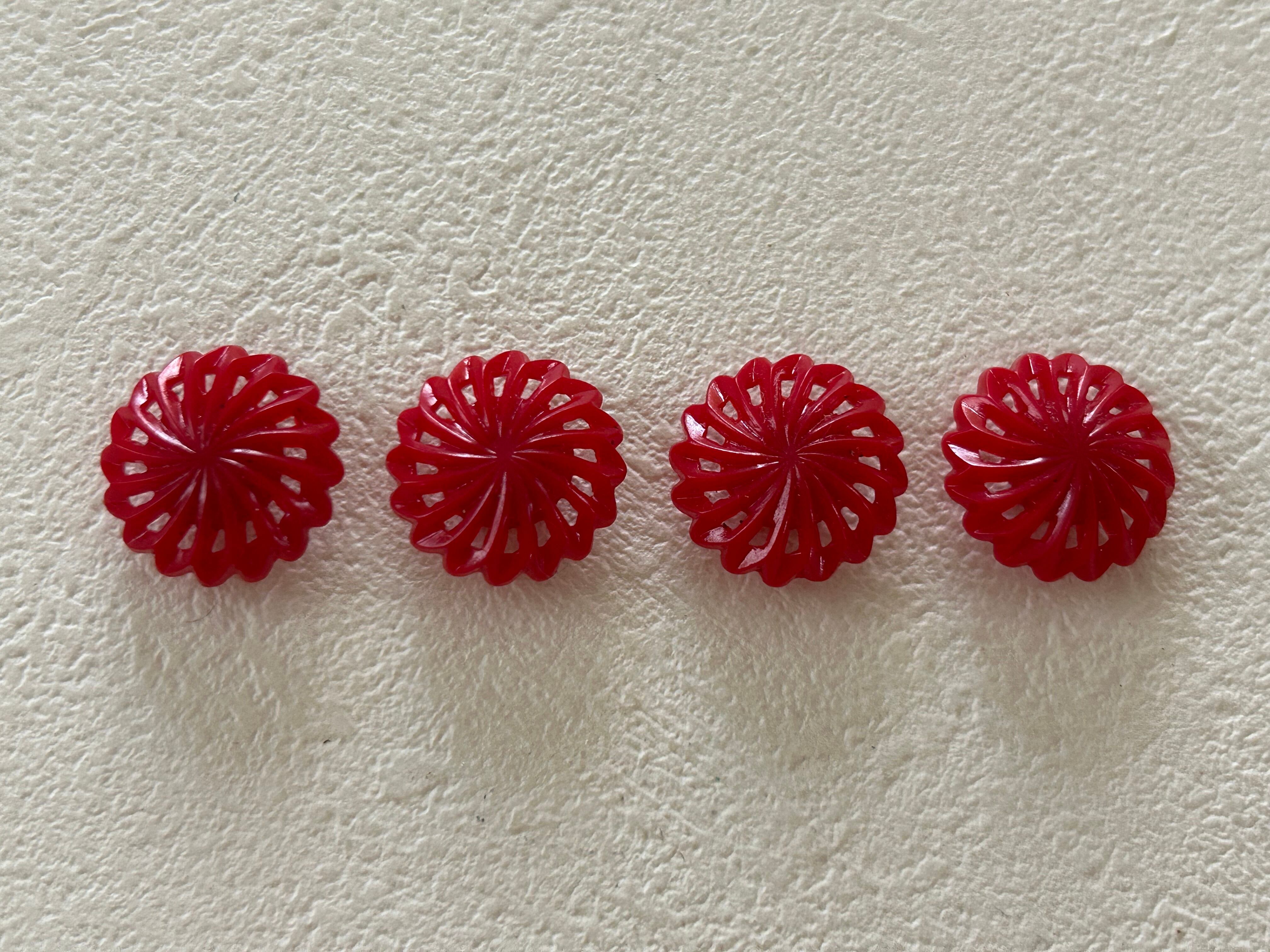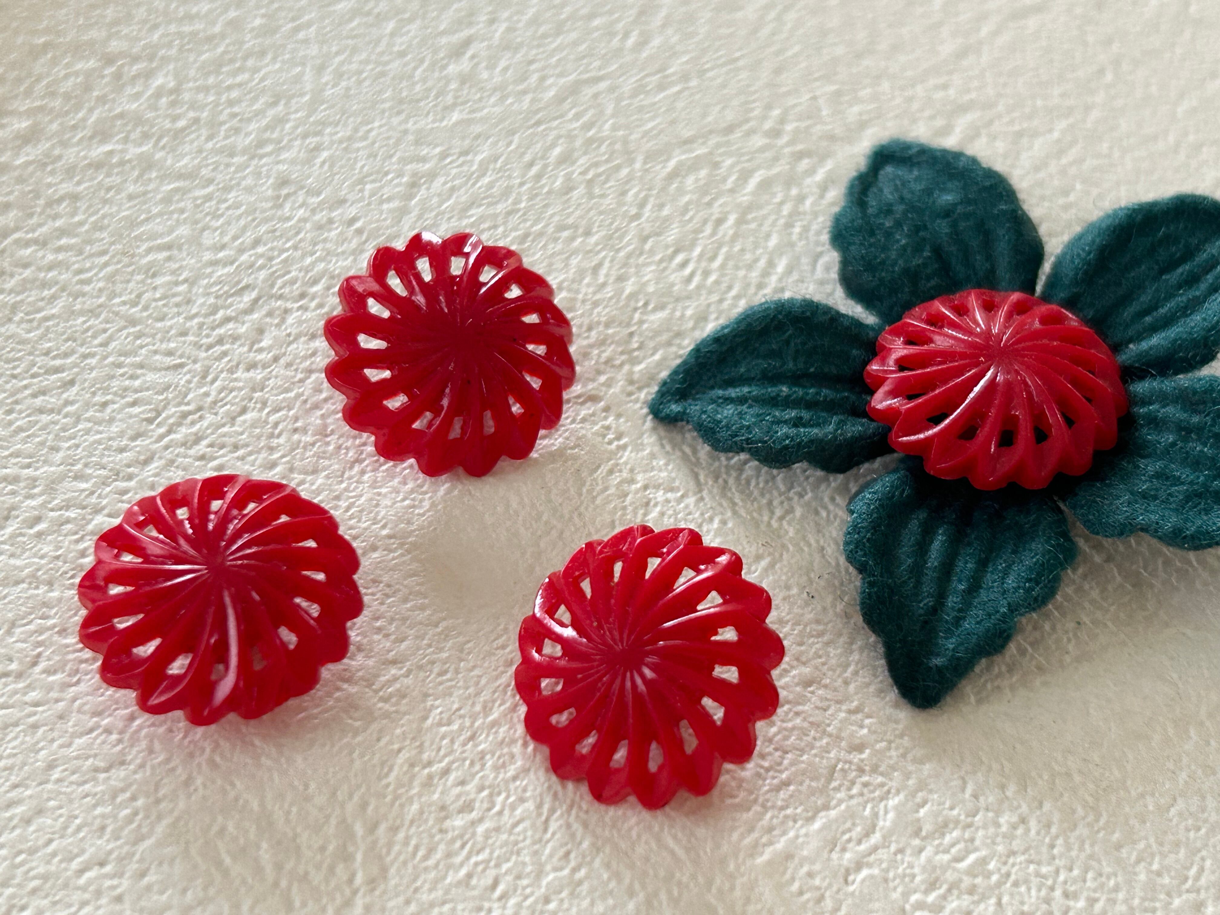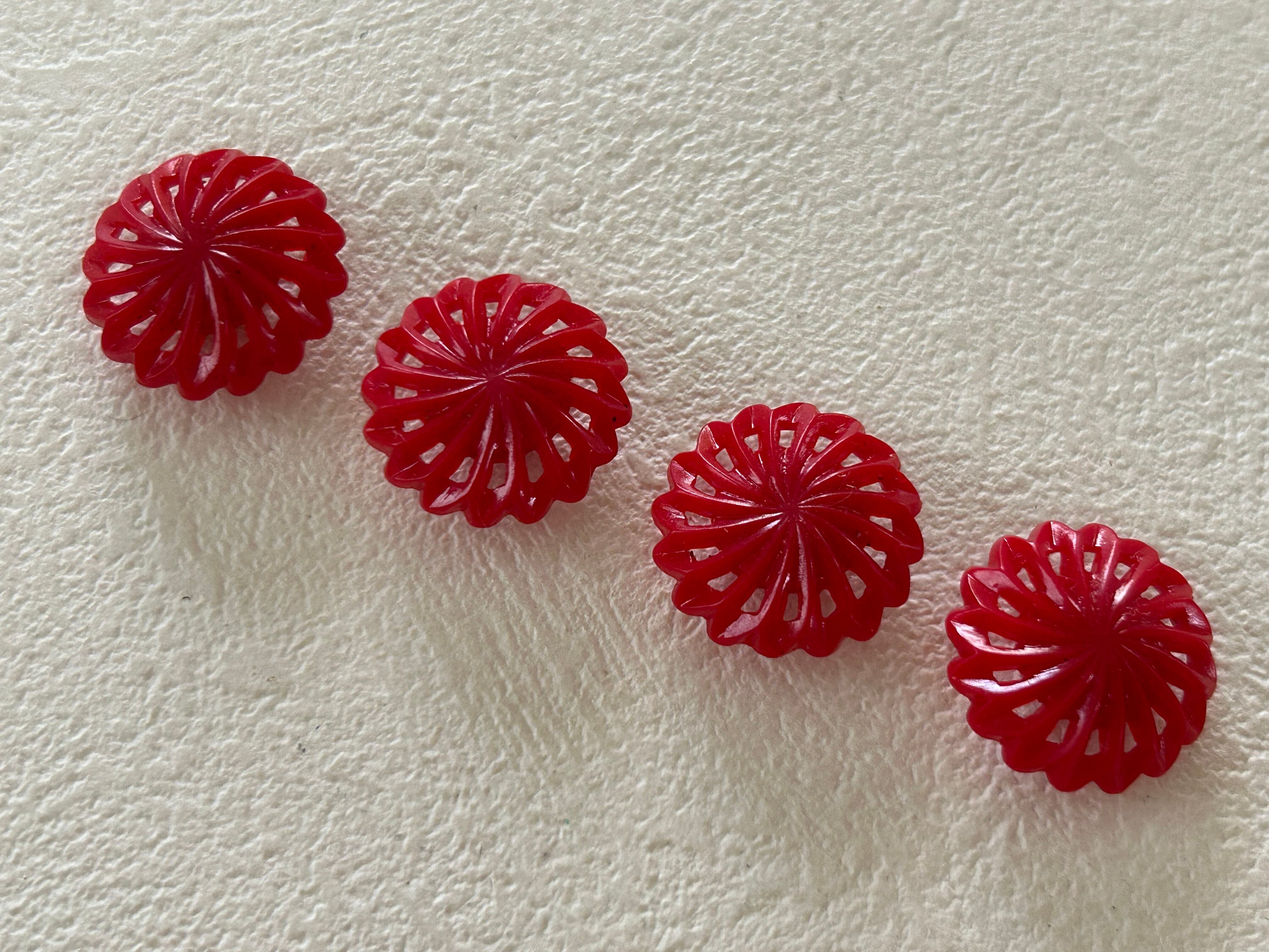 フランス Vintage ヴィンテージボタン 18mm ファン レッド 赤色 アクセサリーパーツ デコレーション材 カルトナージュ