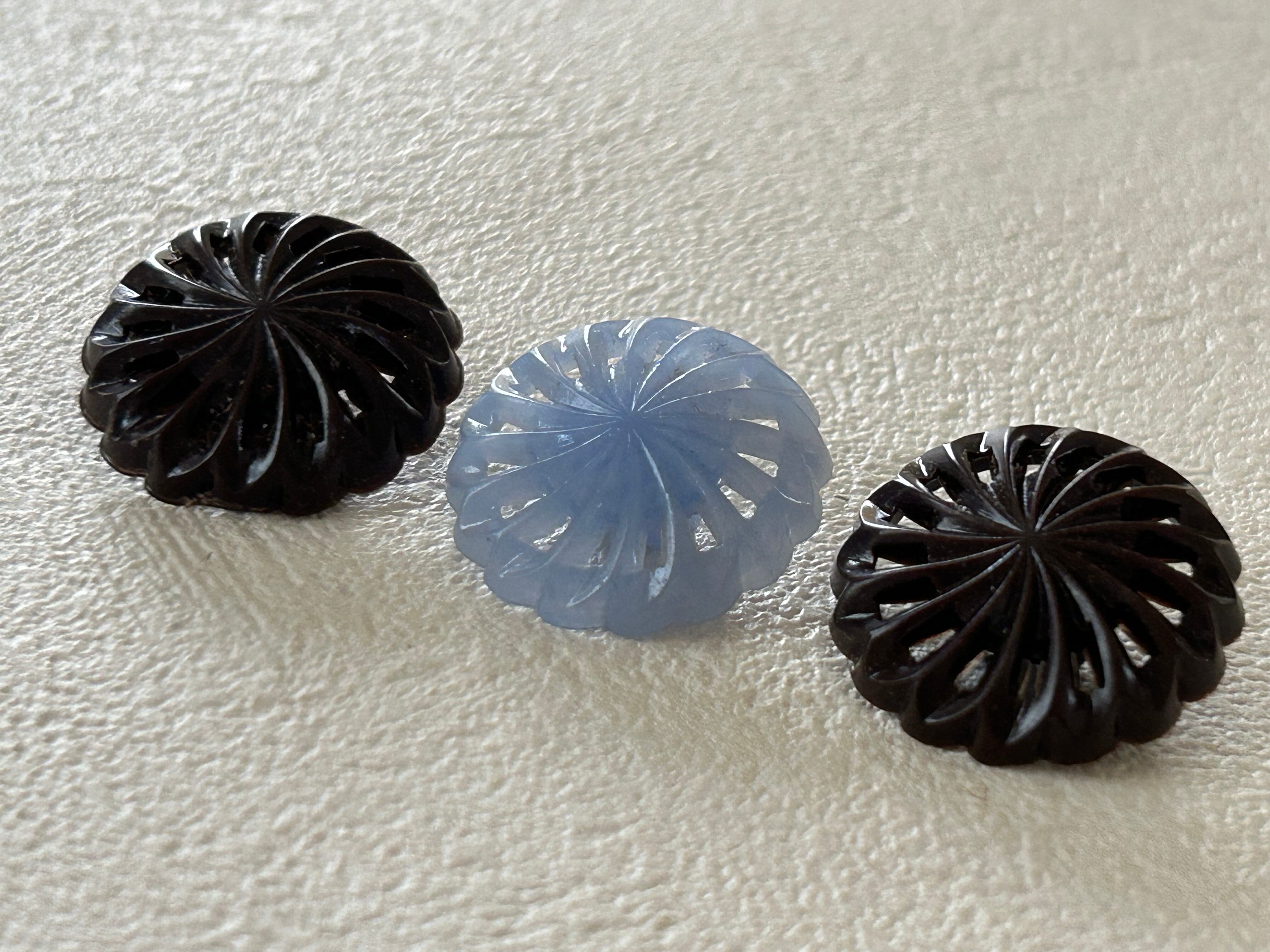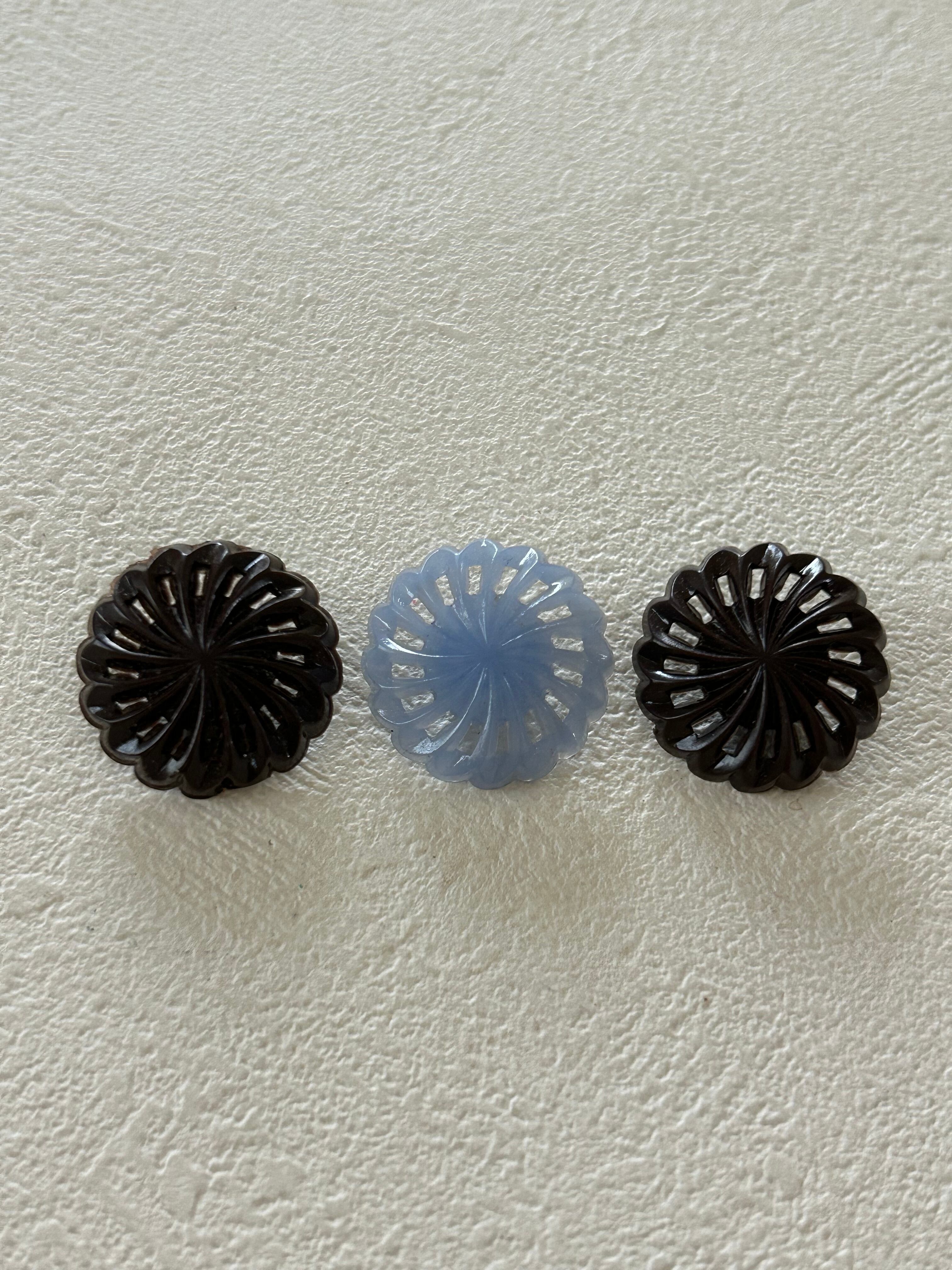 フランス Vintage ヴィンテージボタン 23mm ファン ブラウン/ライトブルー 透かし アクセサリーパーツ デコレーション材 カルトナージュ