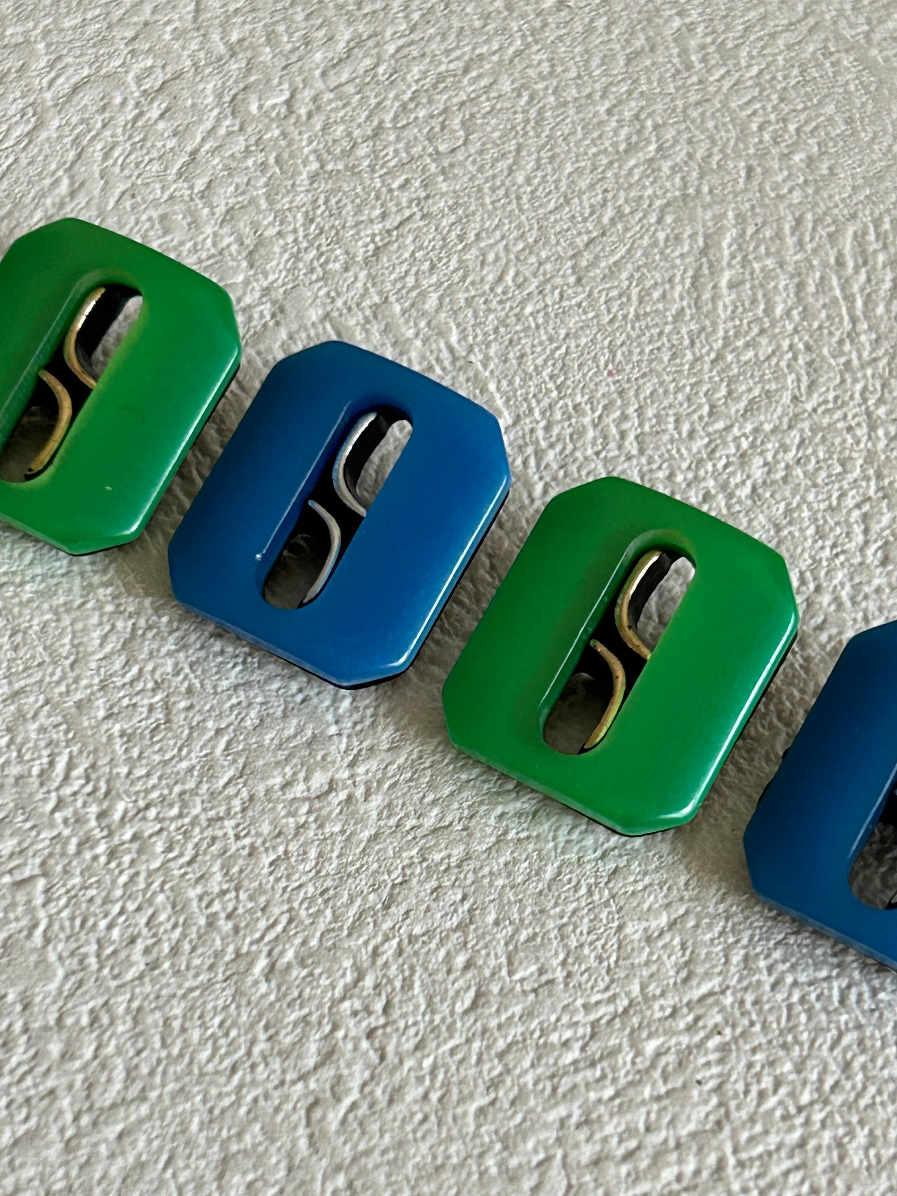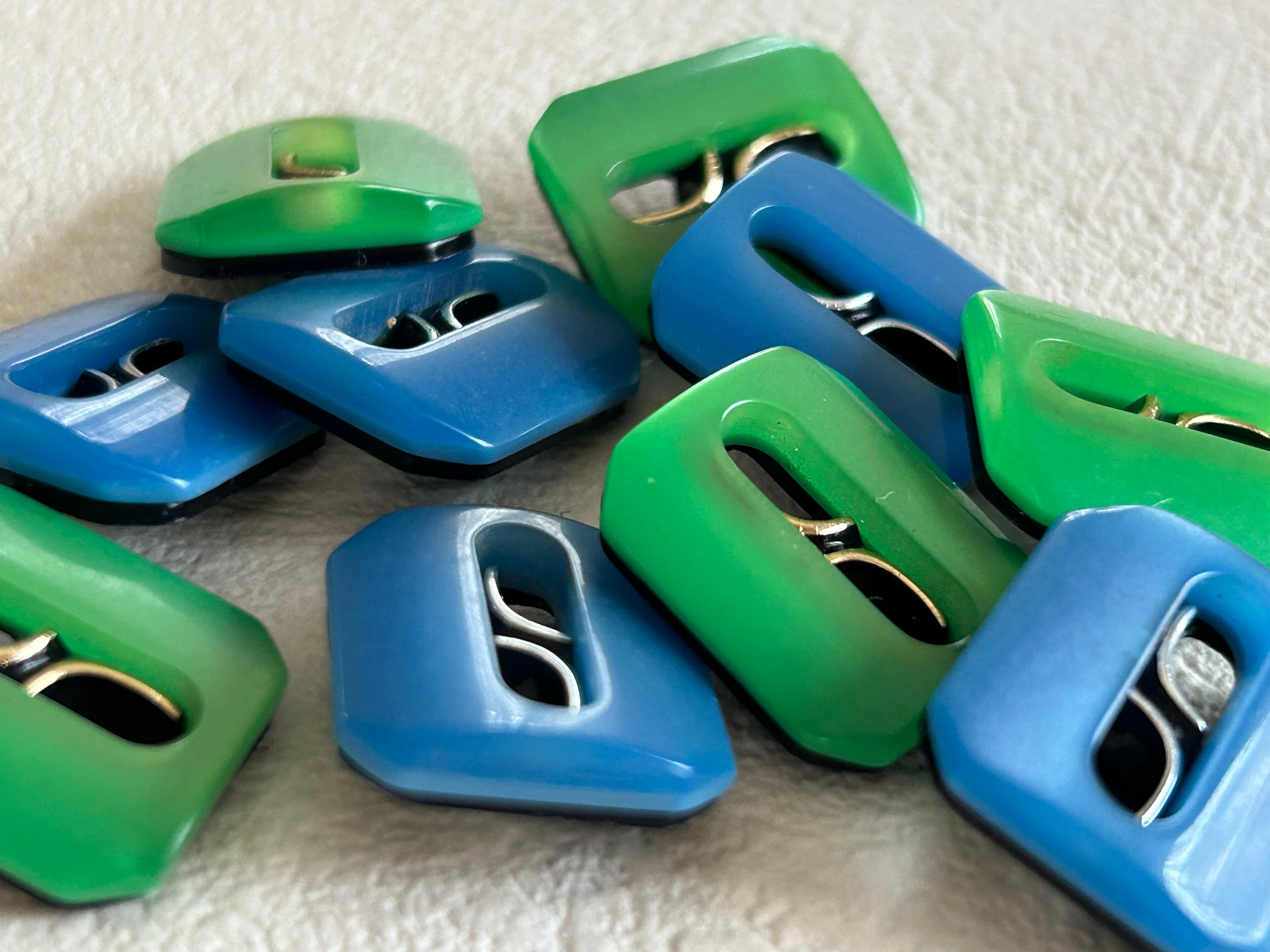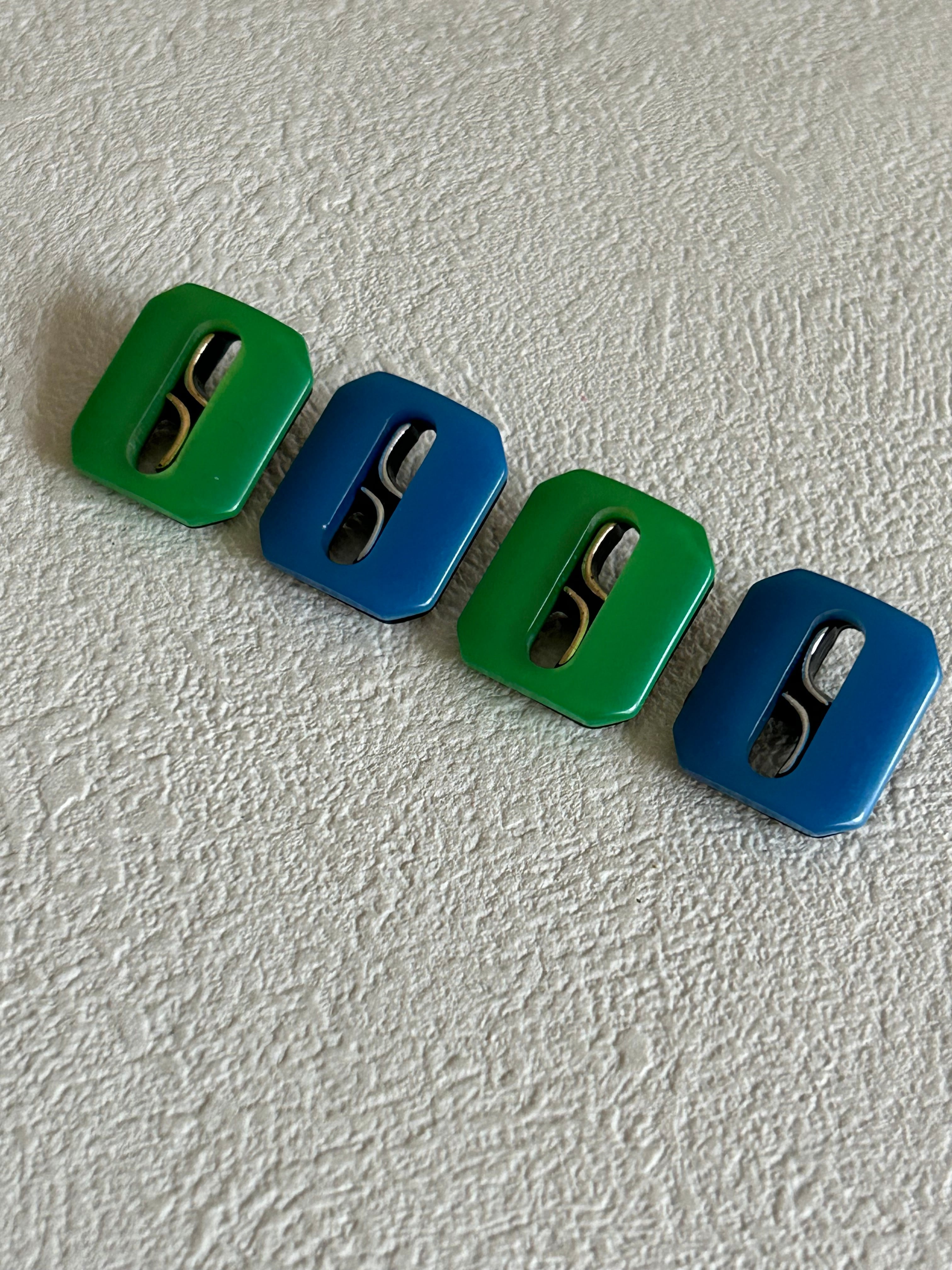 Japanese Vintage ボタン レクタング 15mm×18mm グリーン/ライトブルー 昭和レトロ アクセサリーパーツ 装飾材 カルトナージュ