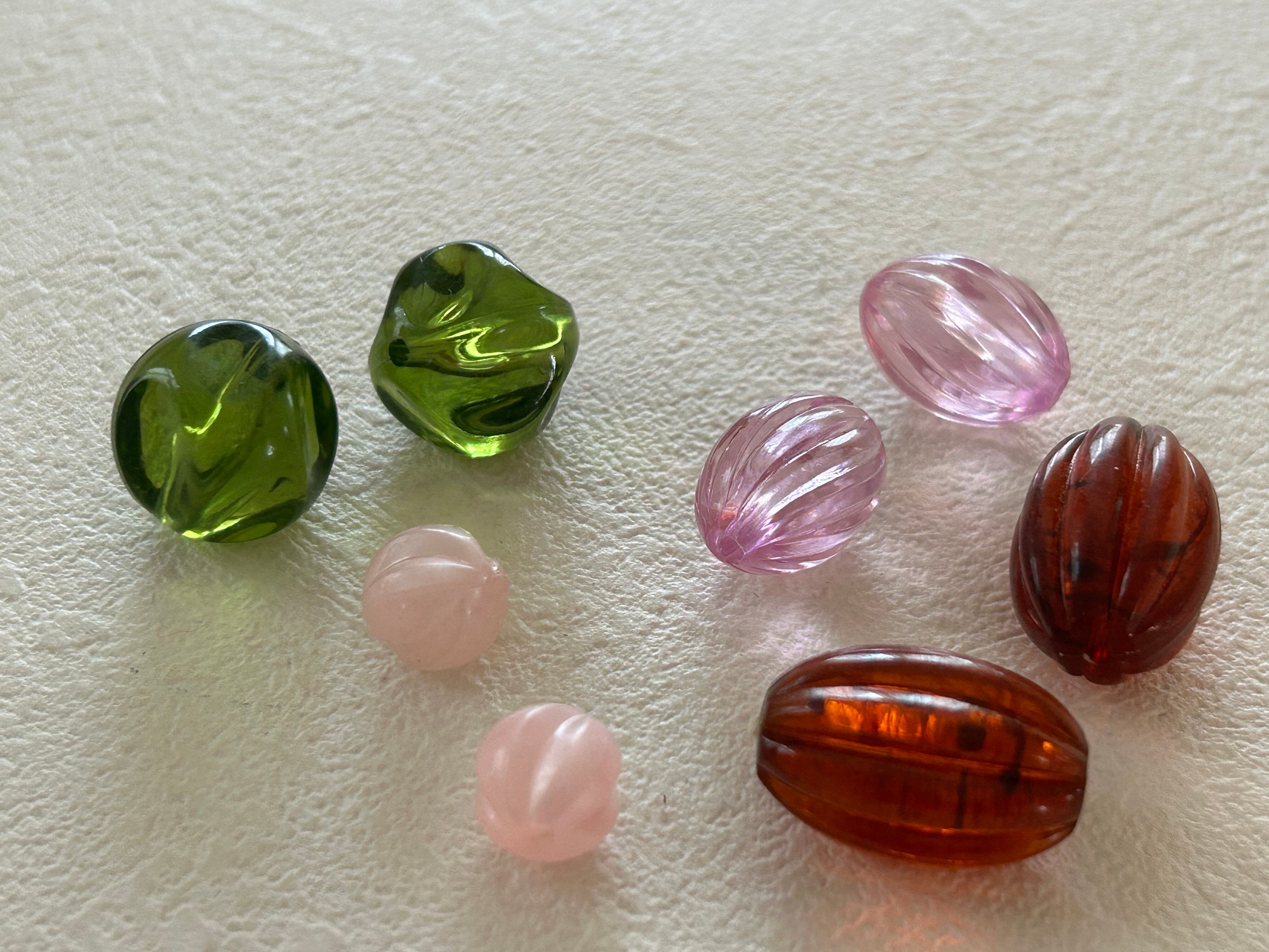 グリーン系の様々なデザイン、サイズのビーズセットです。