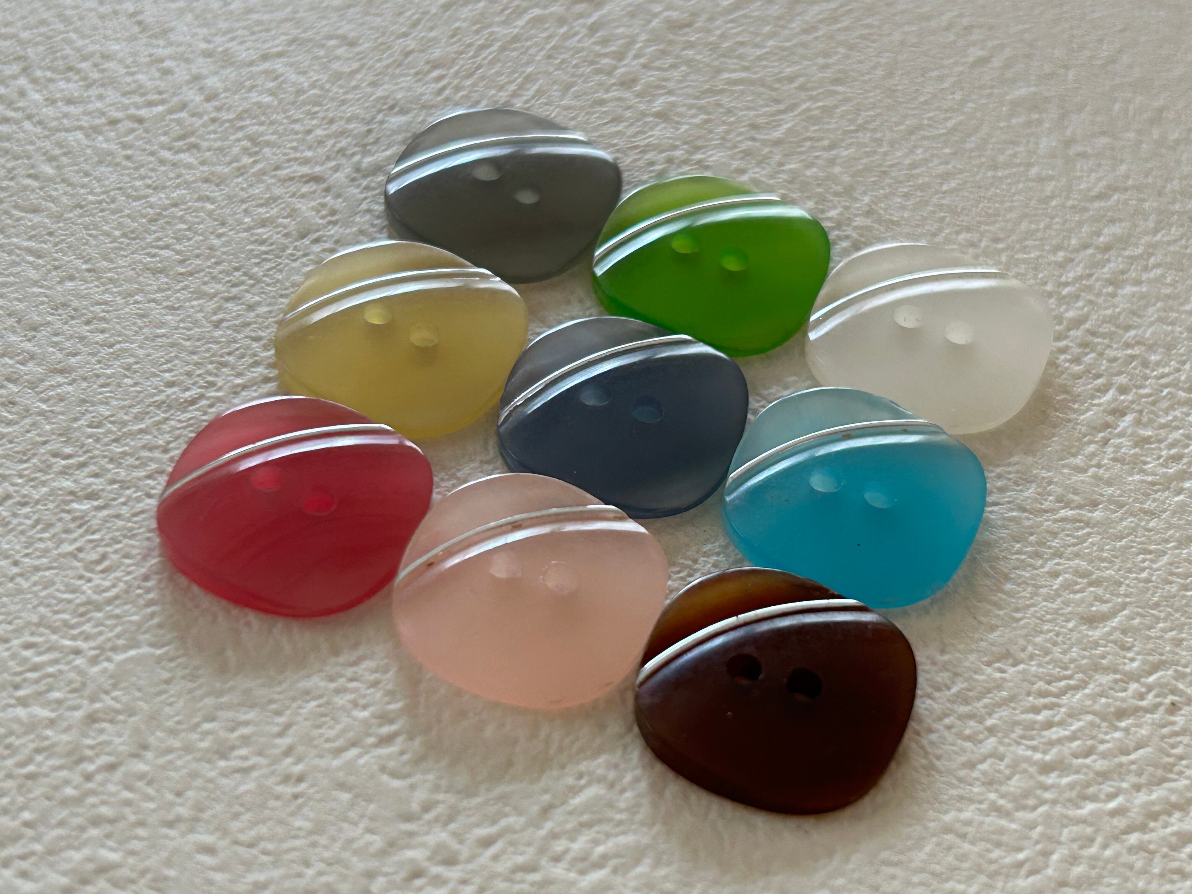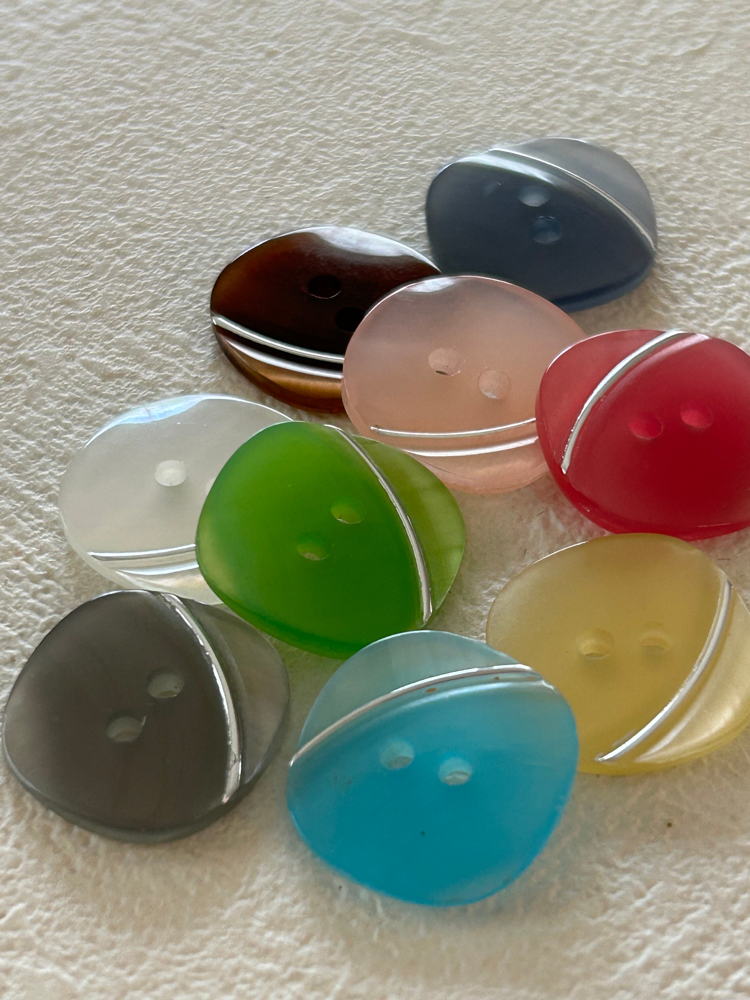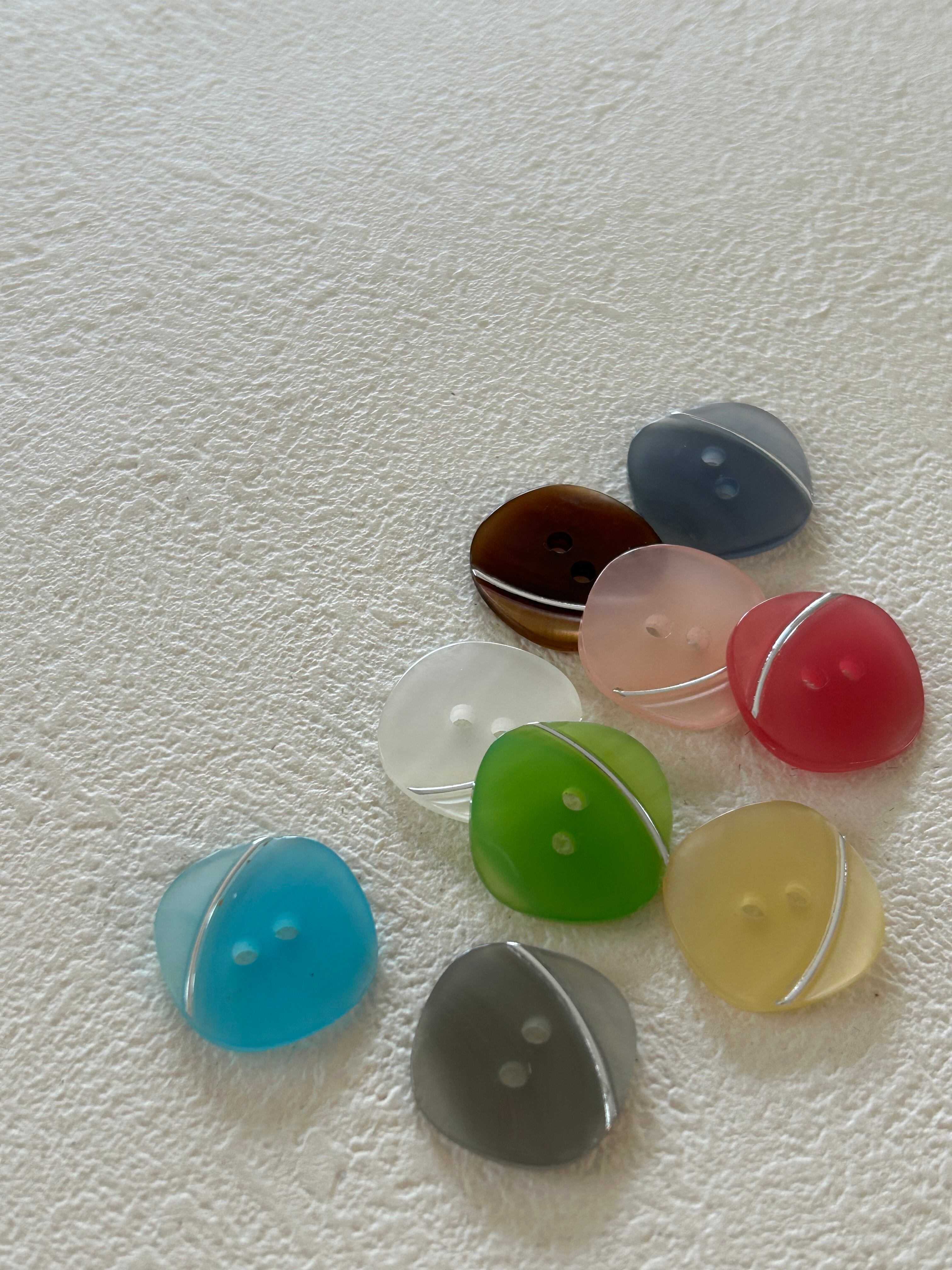 発色の良い艶やかなお色のレトロ可愛いプラスチックボタン。