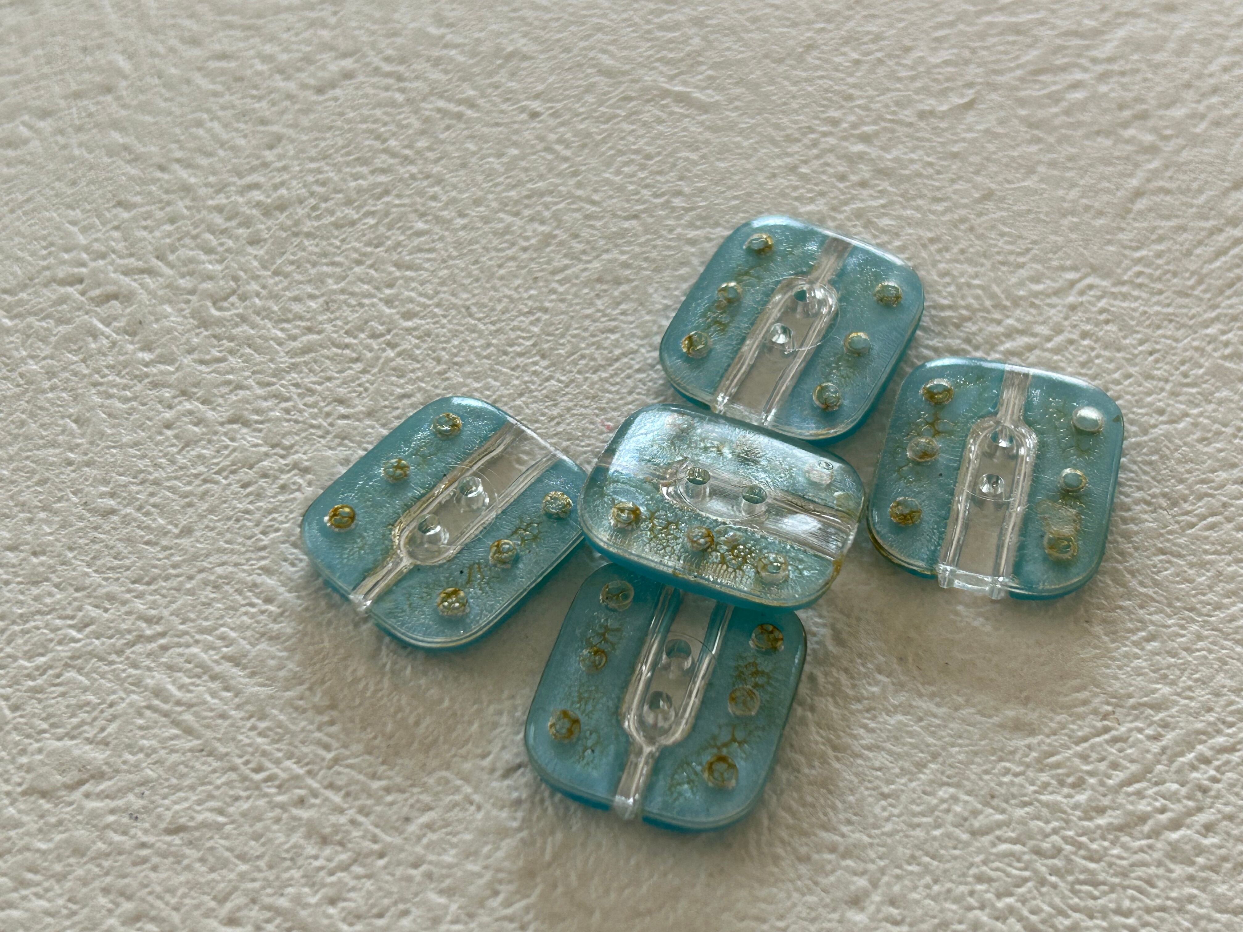 Japanese Vintage ボタン 角なしスクウェア ライトブルー 17mm カボション 木目調 昭和レトロ アクセサリーパーツ 装飾材 カルトナージュ