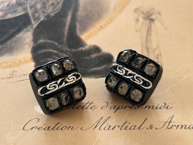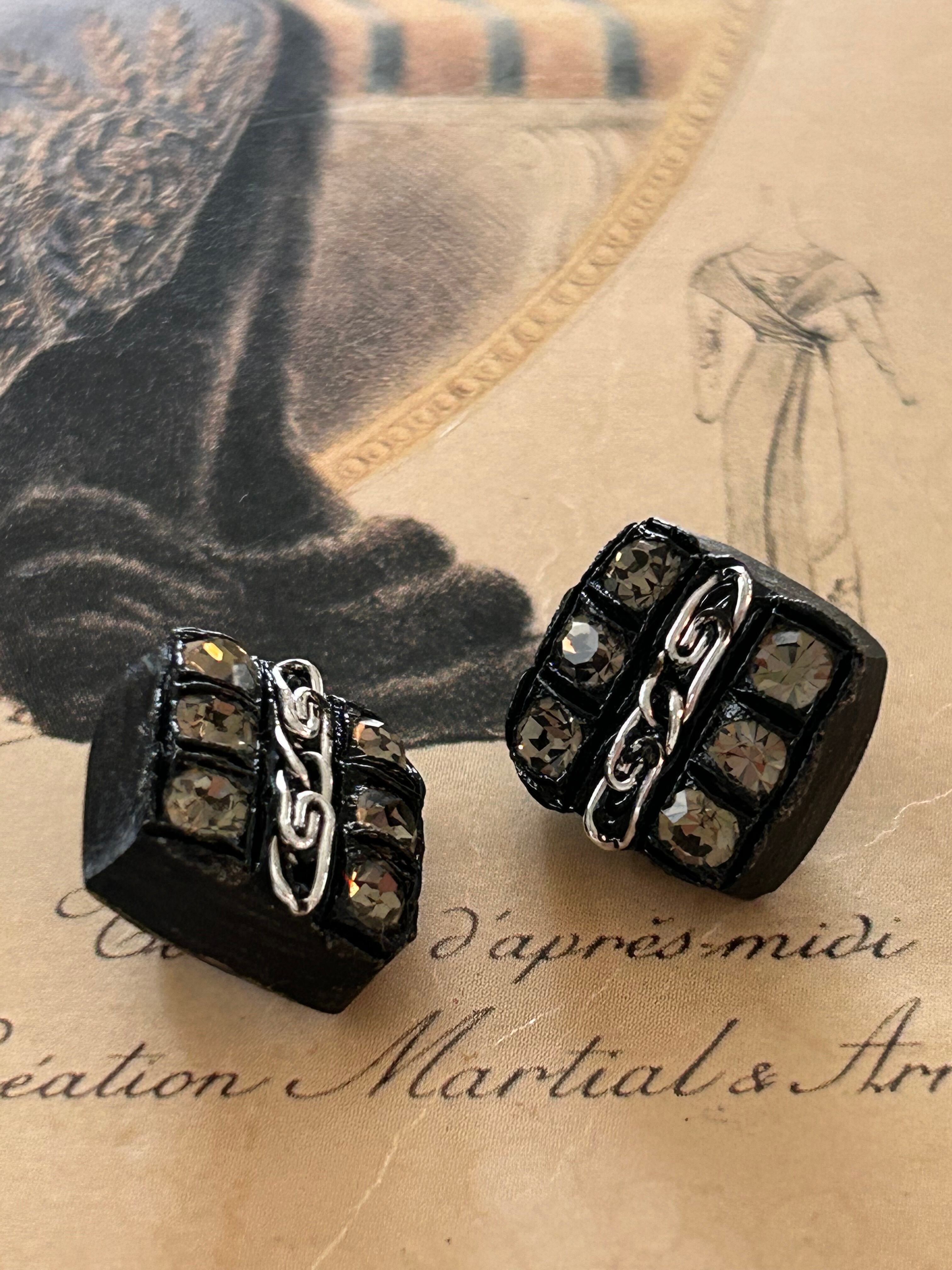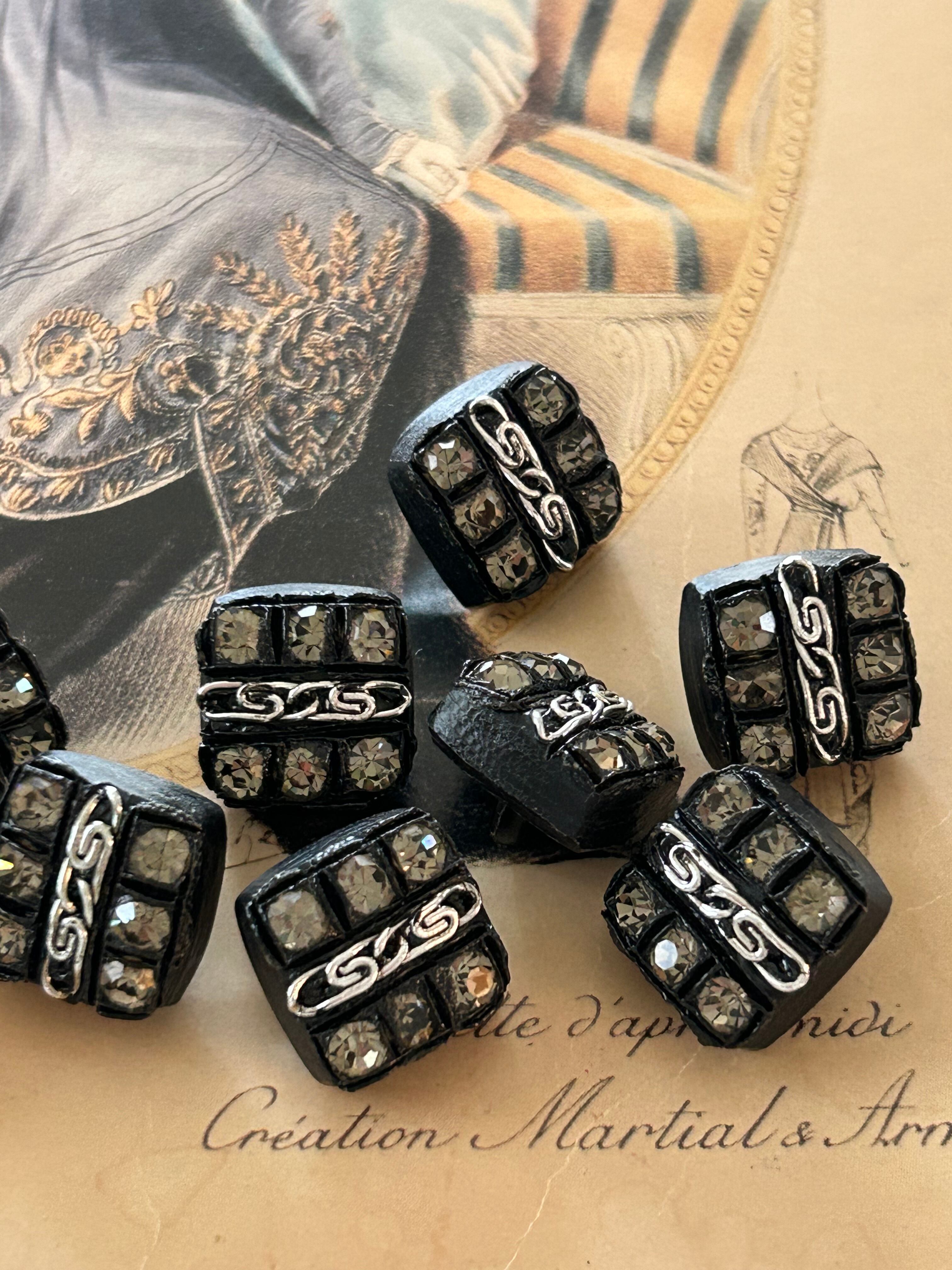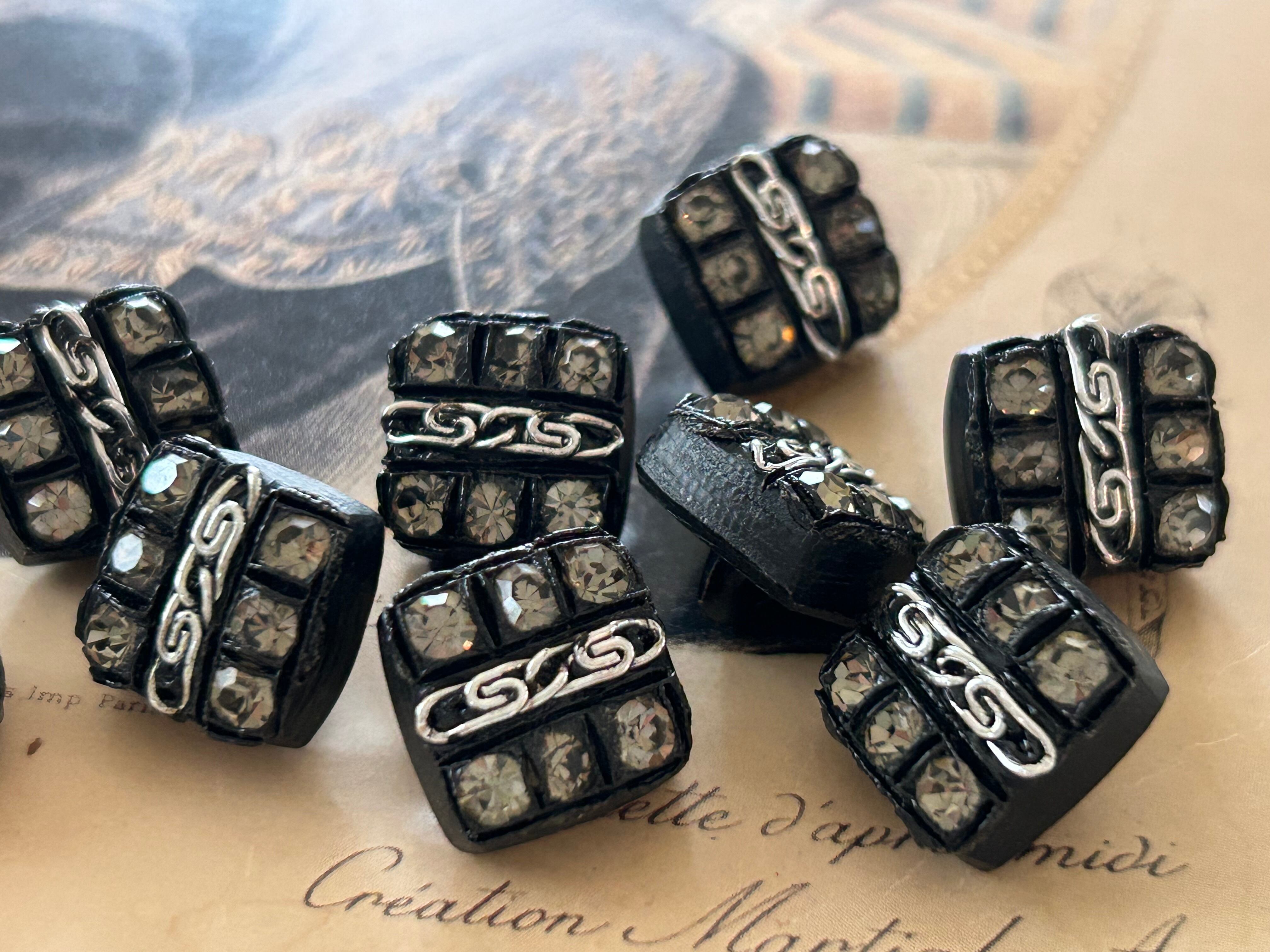 Japanese Vintage ボタン 13mm button ストーン チェーン プラスチックボタン ブラック モノトーン アクセサリーパーツ 装飾材 カルトナージュ
