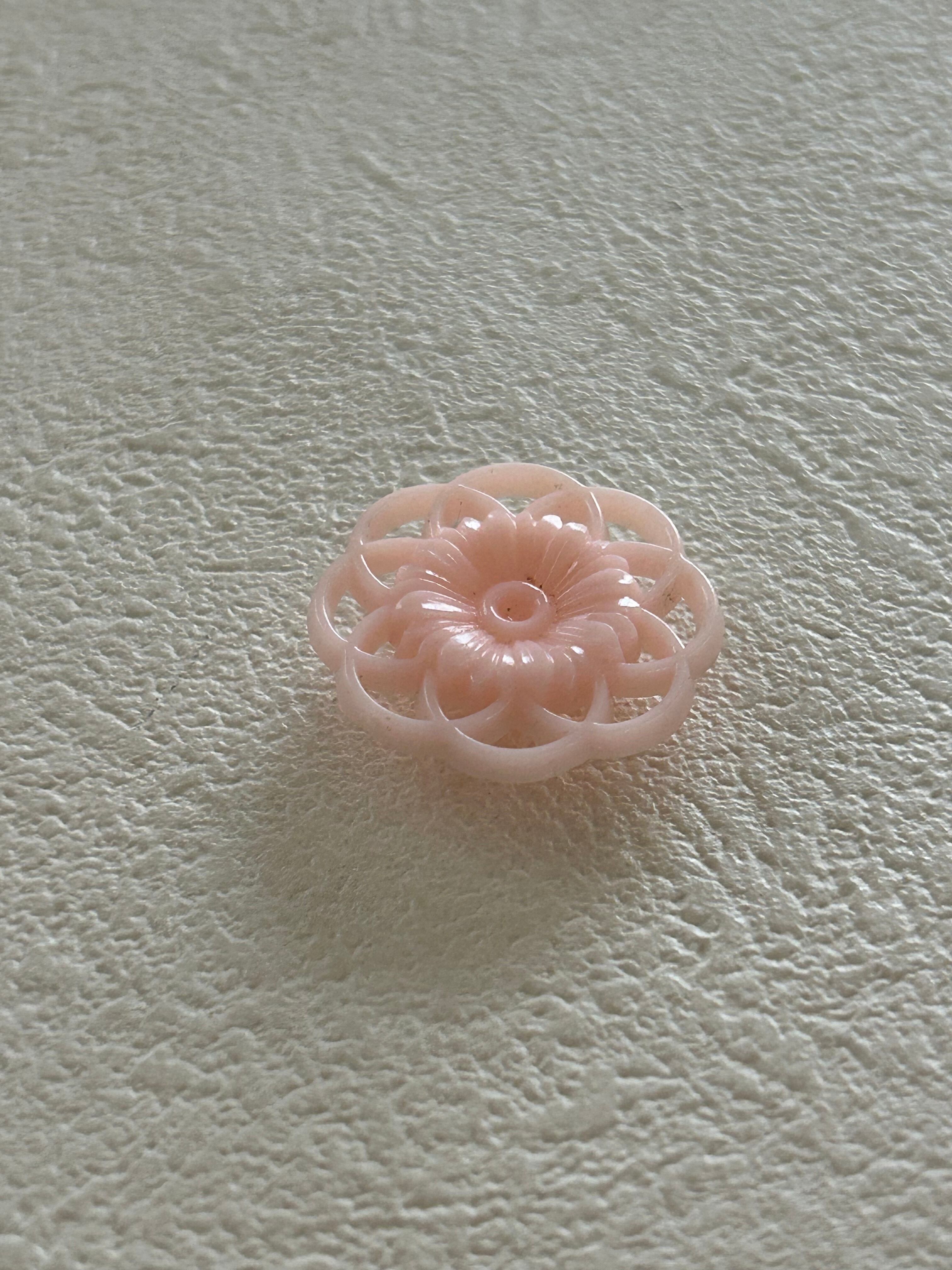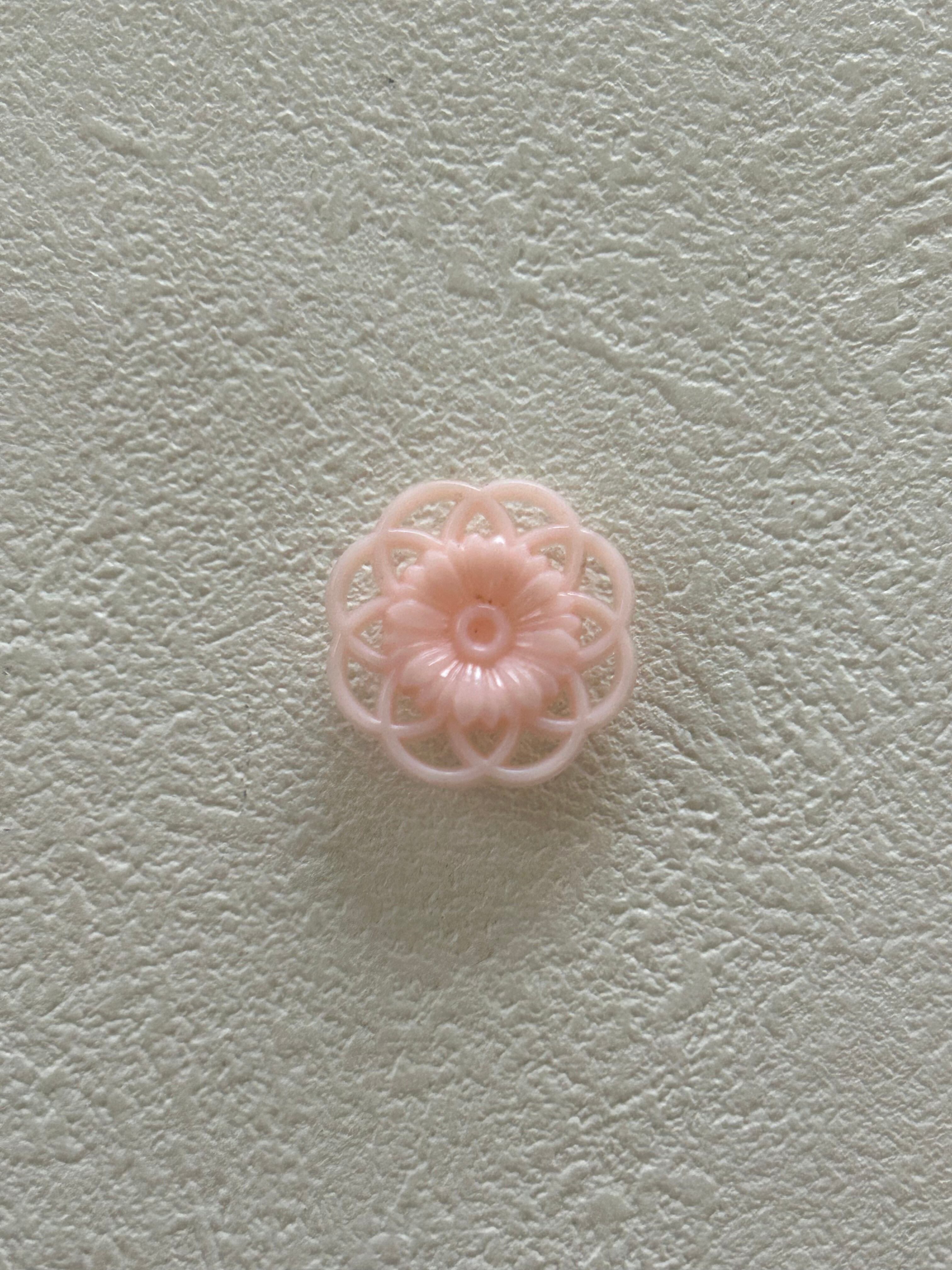 フランス Vintage ヴィンテージボタン 22mmフラワー ベビーピンク 透かし アクセサリーパーツ デコレーション材 カルトナージュ