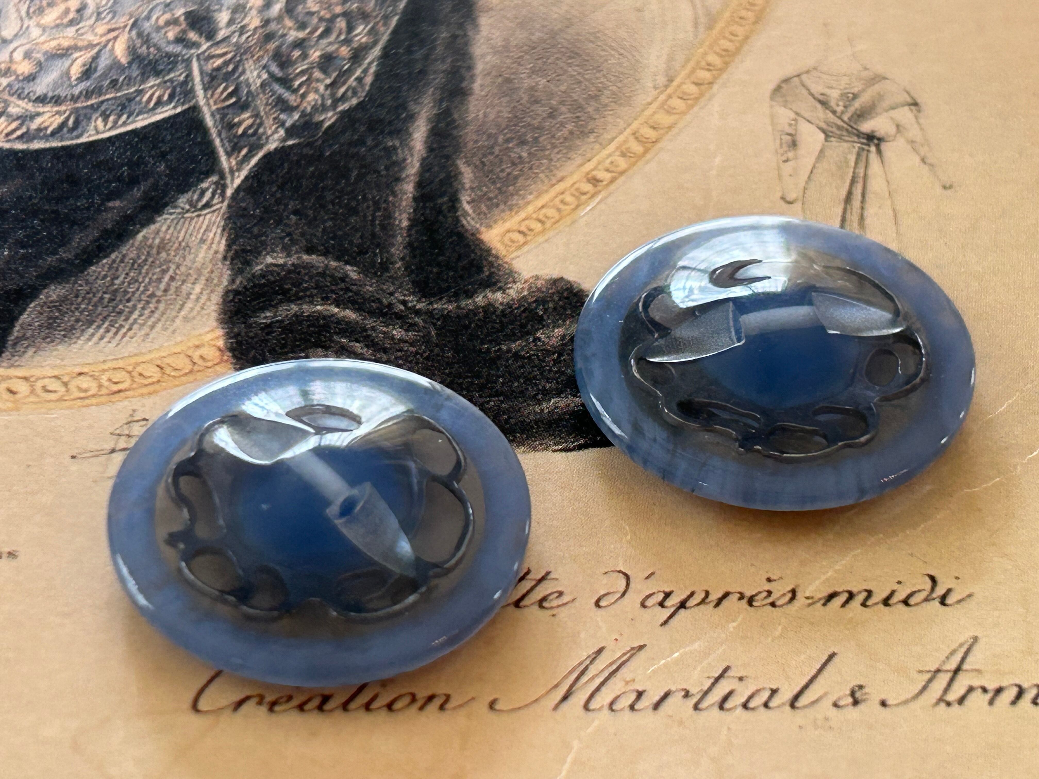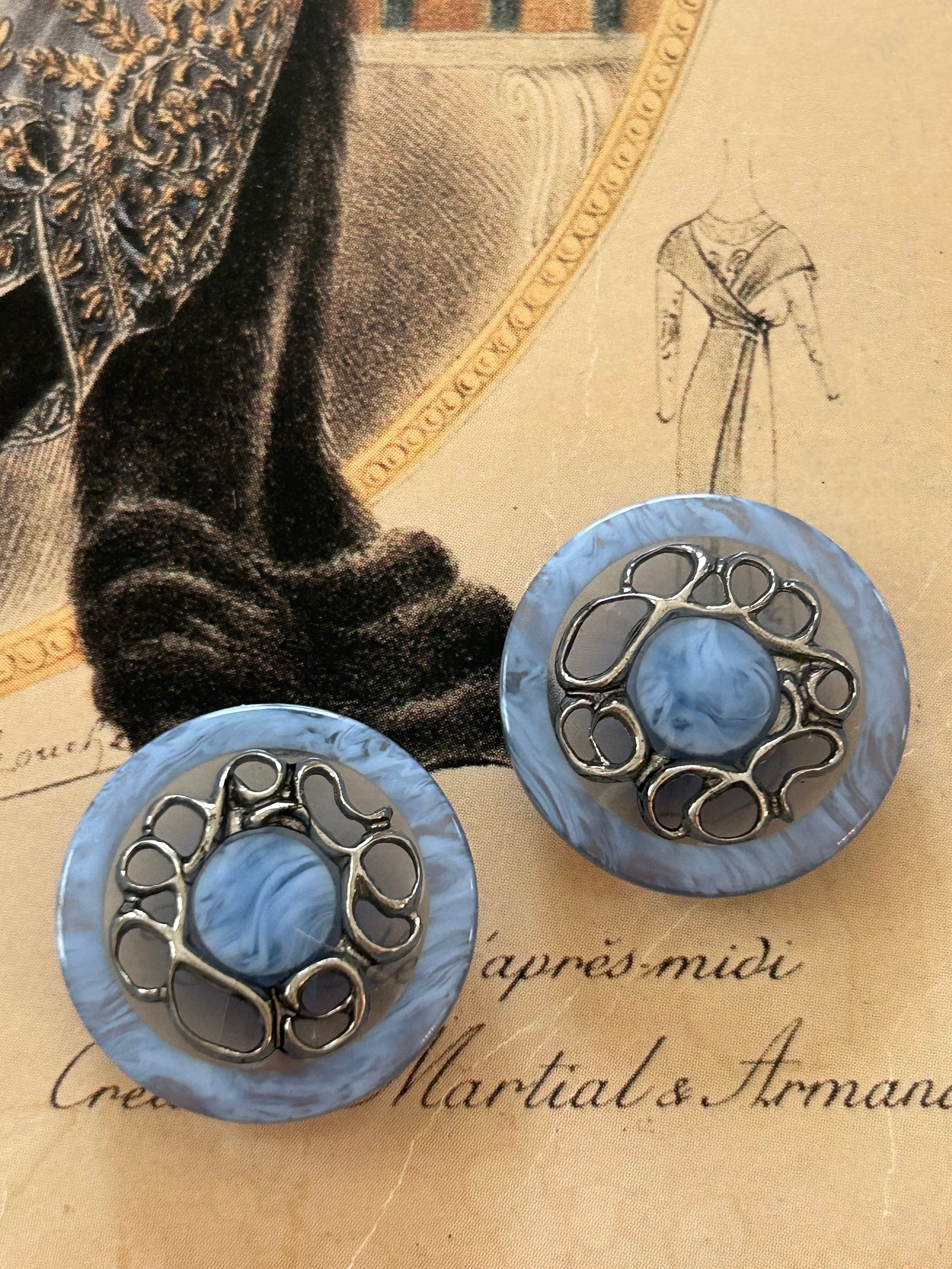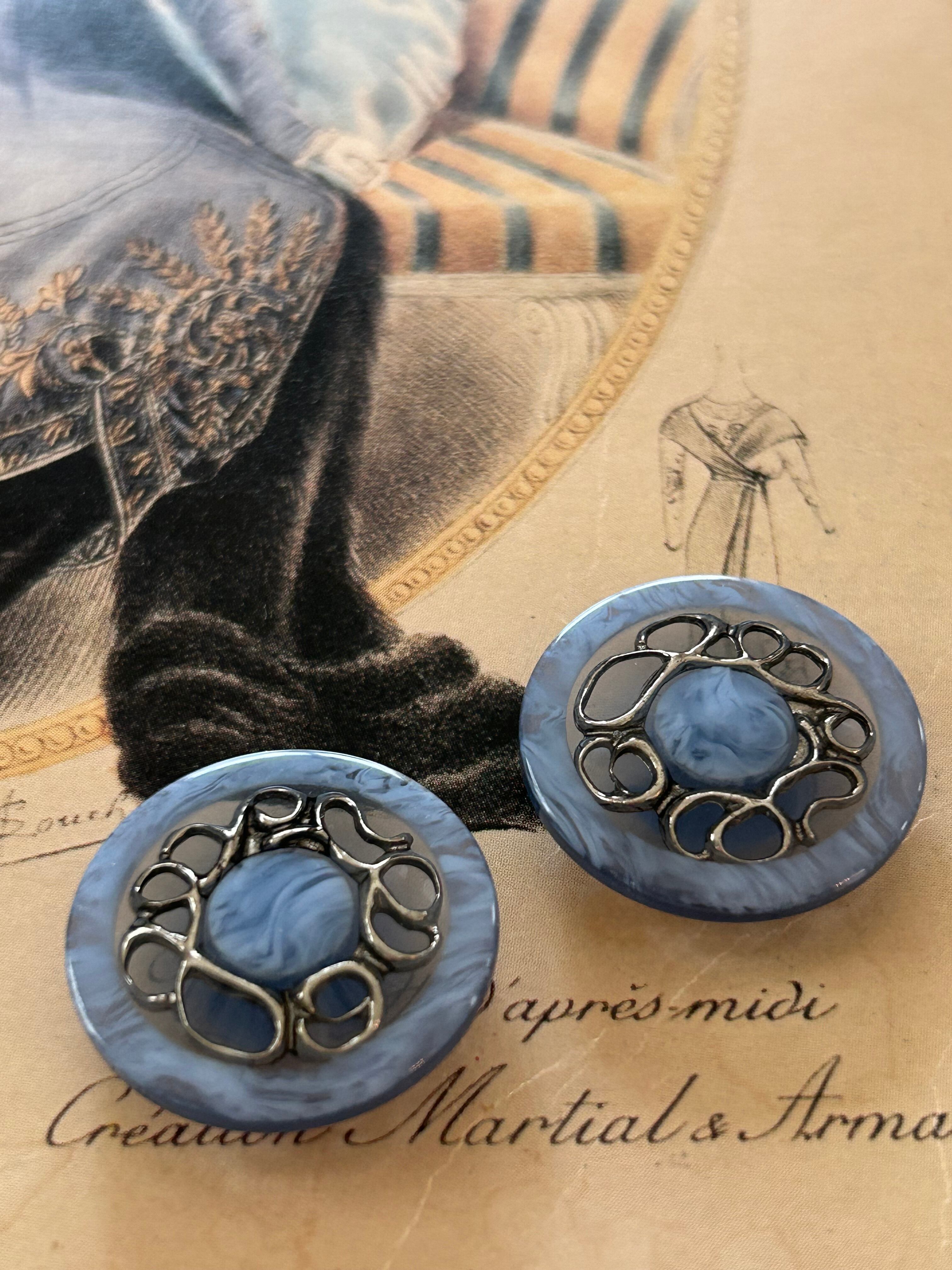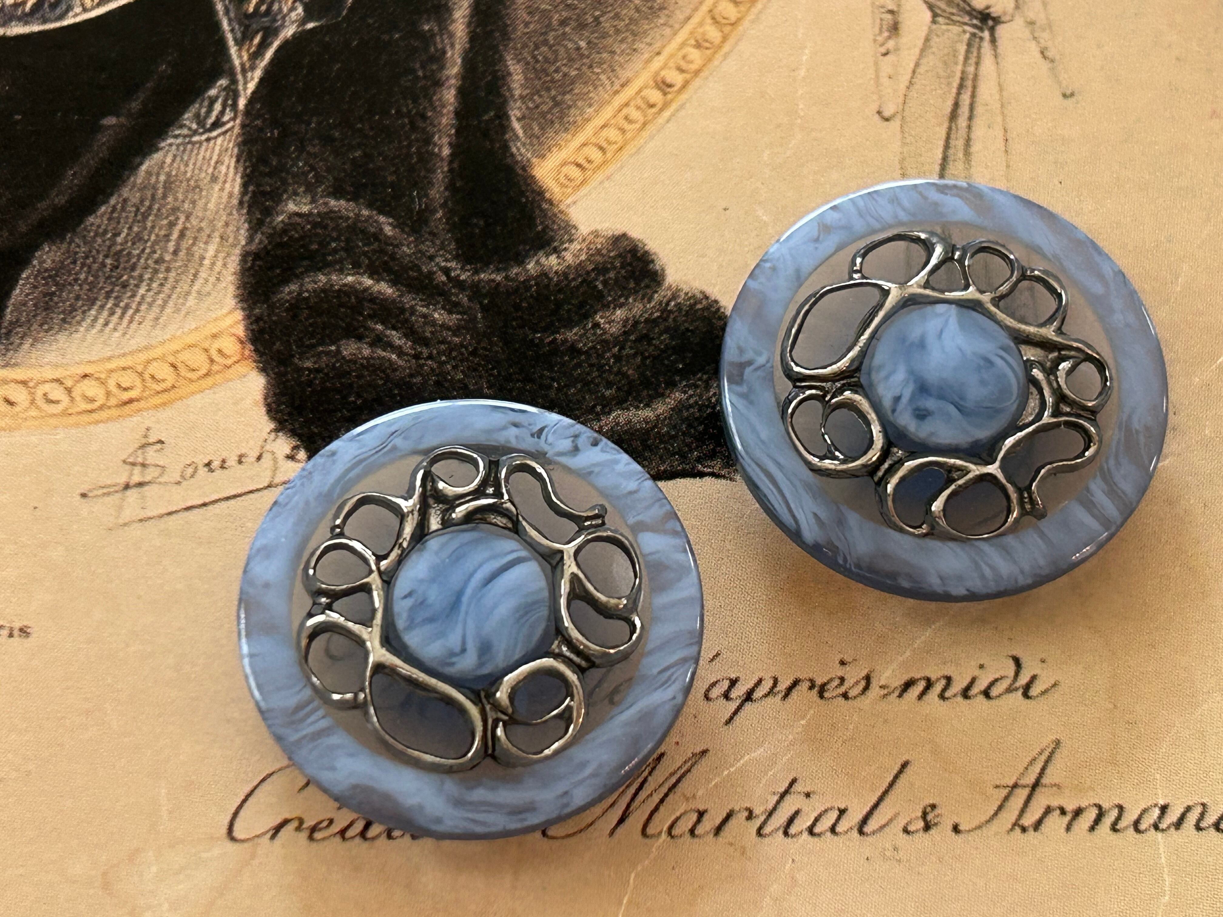 Japanese Vintage ボタン ブルー×シルバー 23mm マーブル調 昭和レトロ アクセサリーパーツ 装飾材 カルトナージュ
