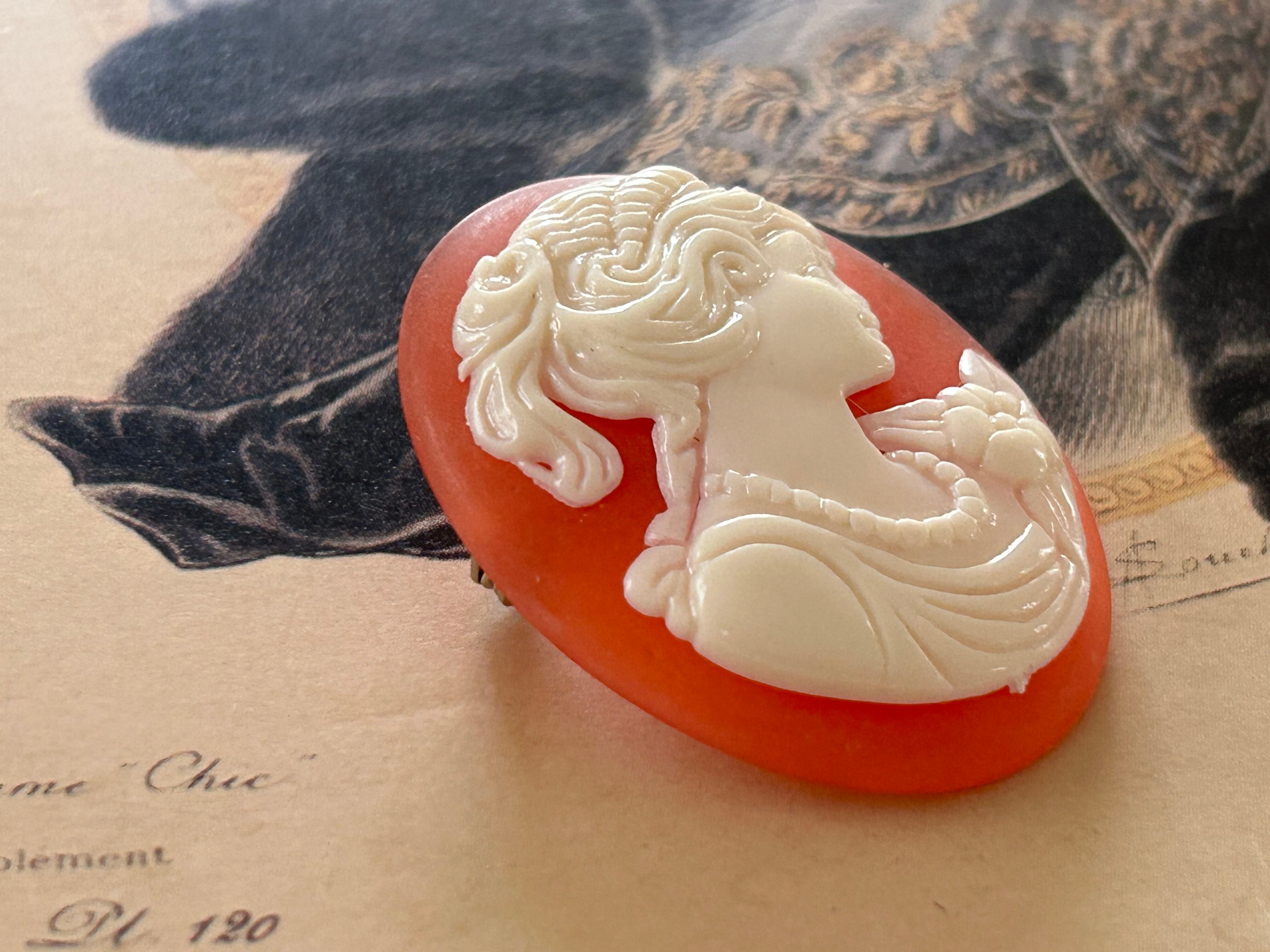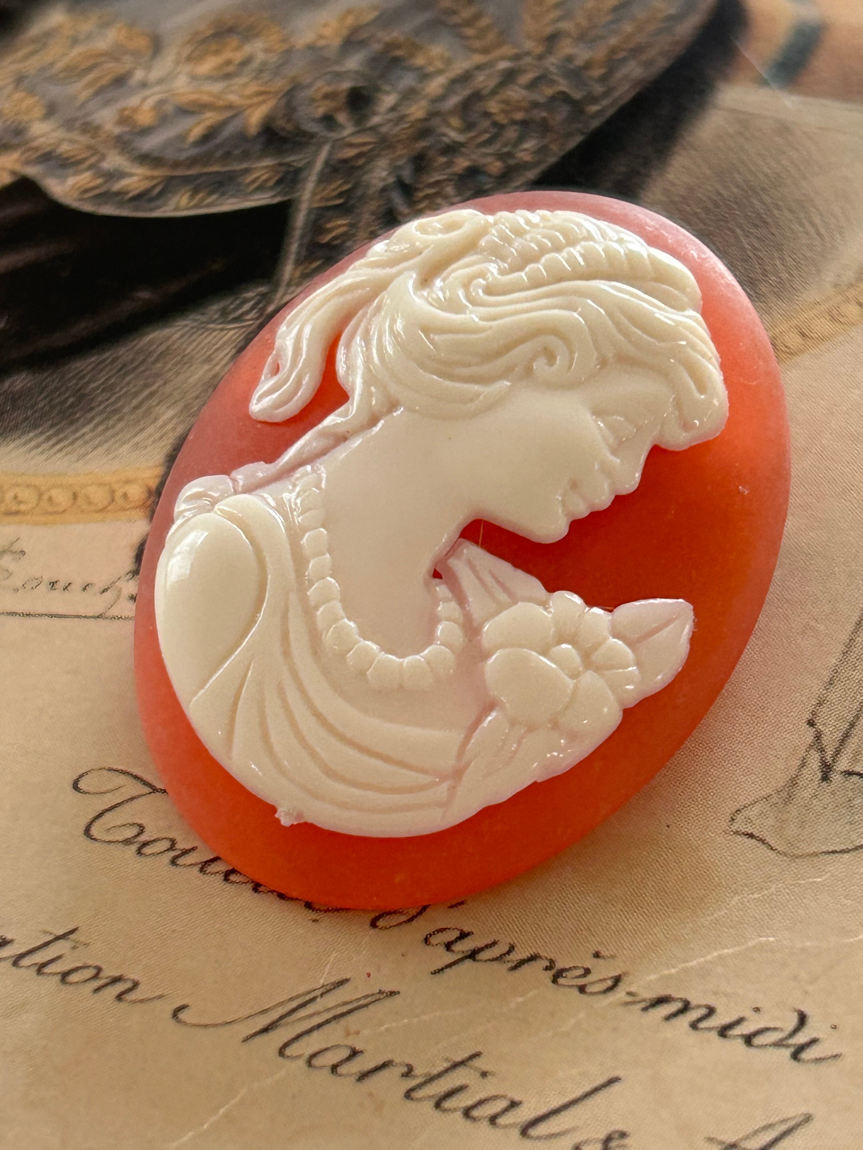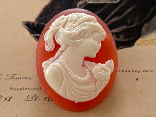 ドイツVintage クラシカルな女性の横顔 カメオブローチ 38mm カルトナージュ アクセサリーパーツ デコレーション材