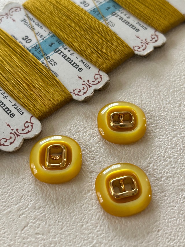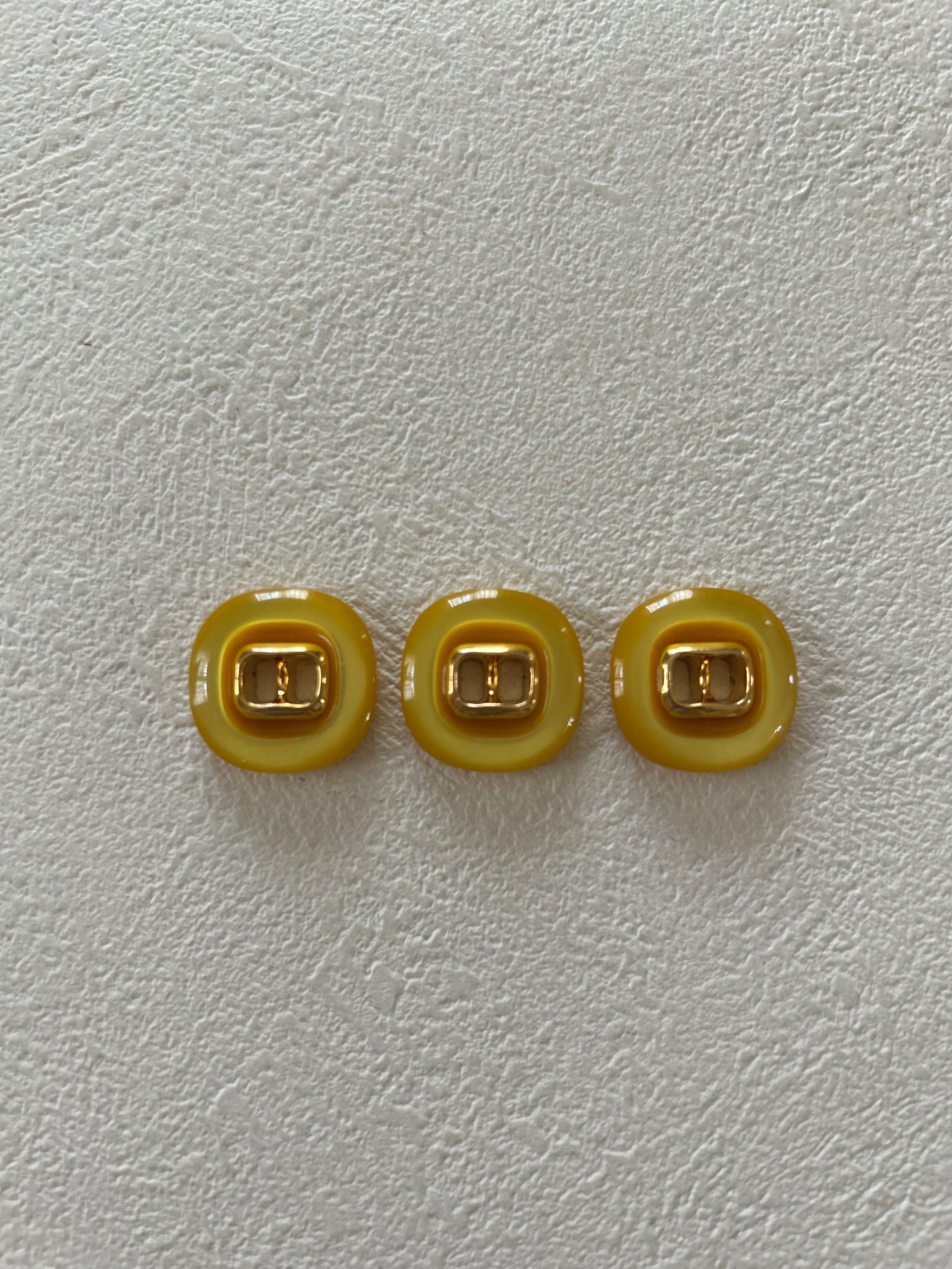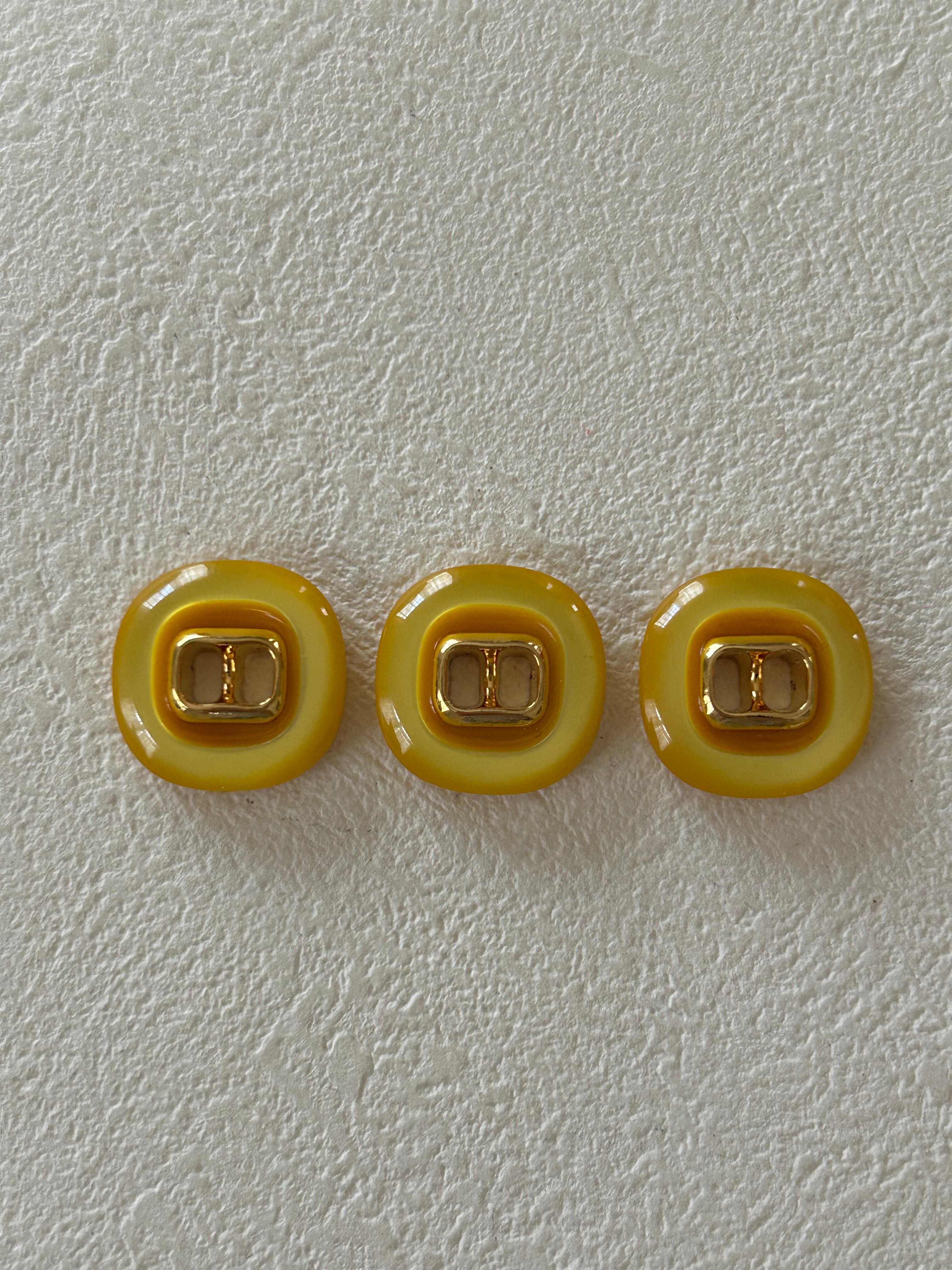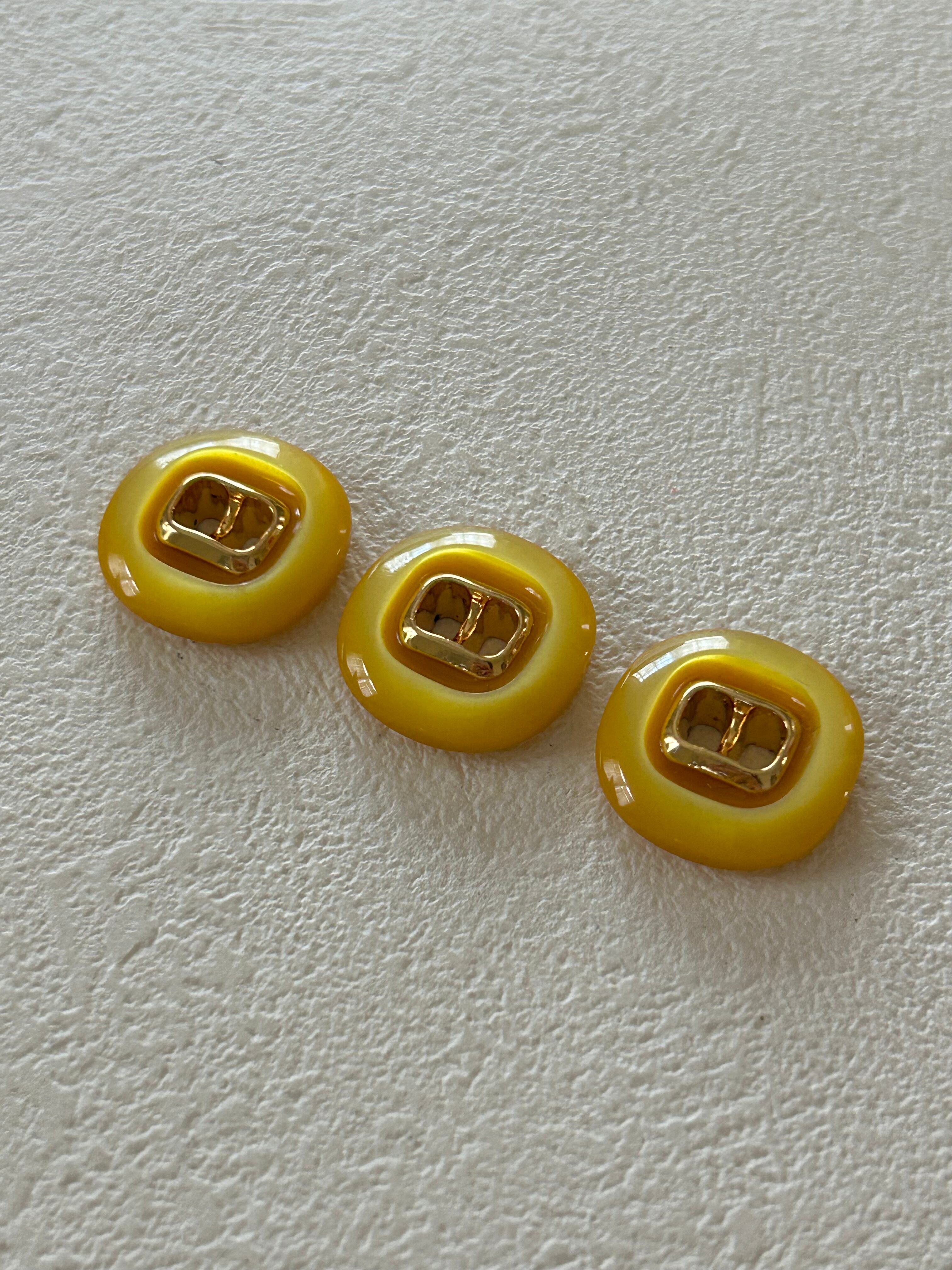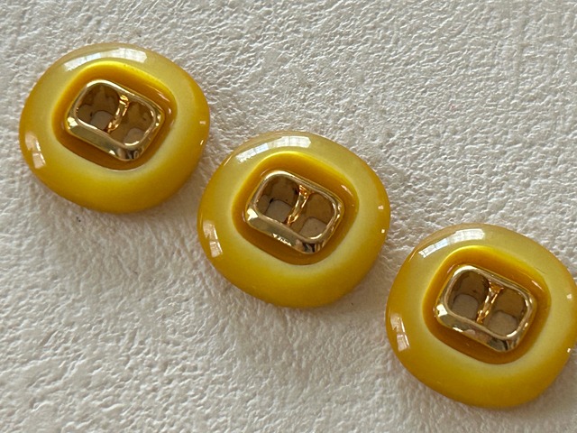 Japanese Vintageボタン レトロボタン イエロー×ゴールド 18mm 二つ穴 アクセサリーパーツ デコレーシ