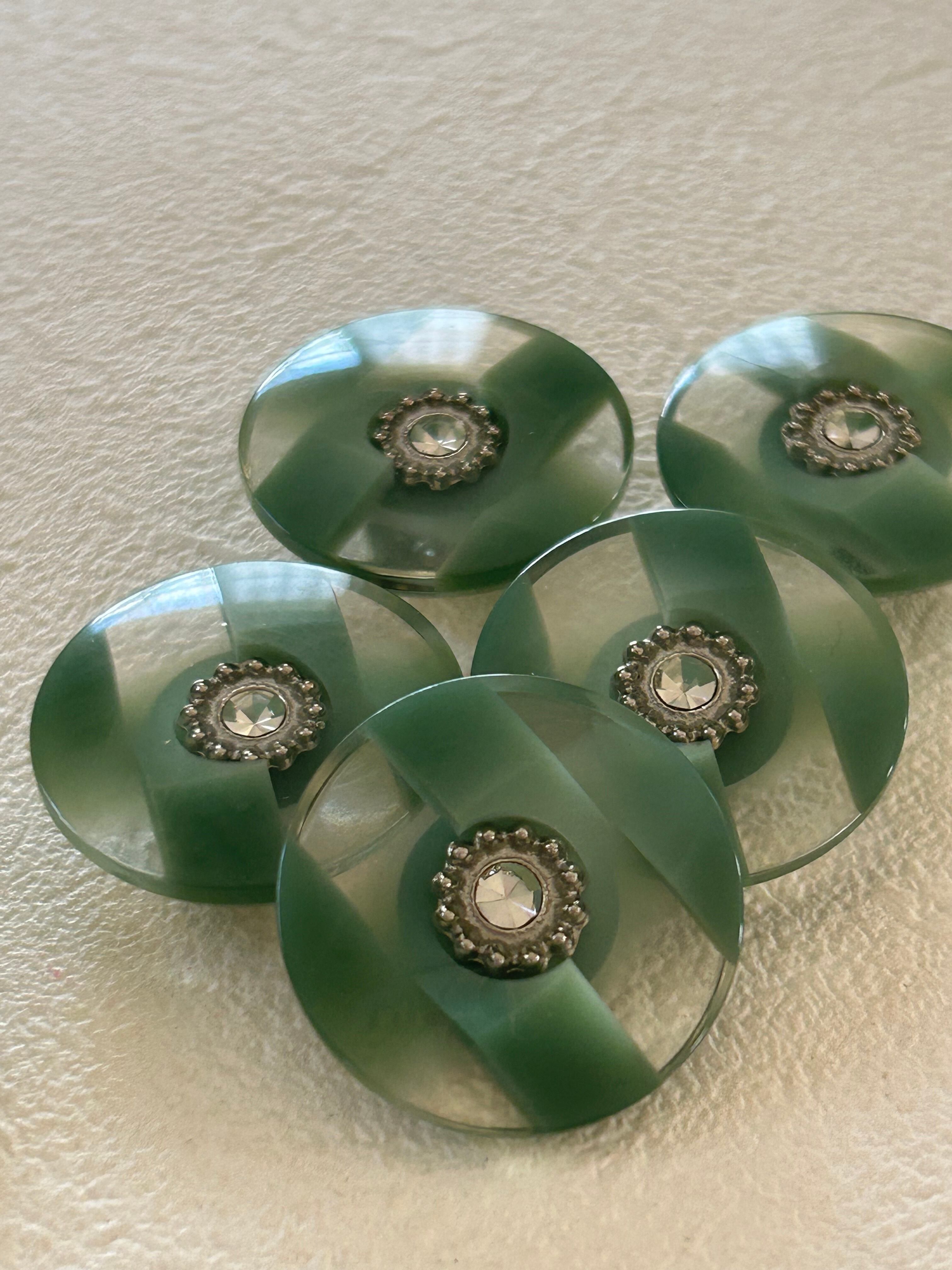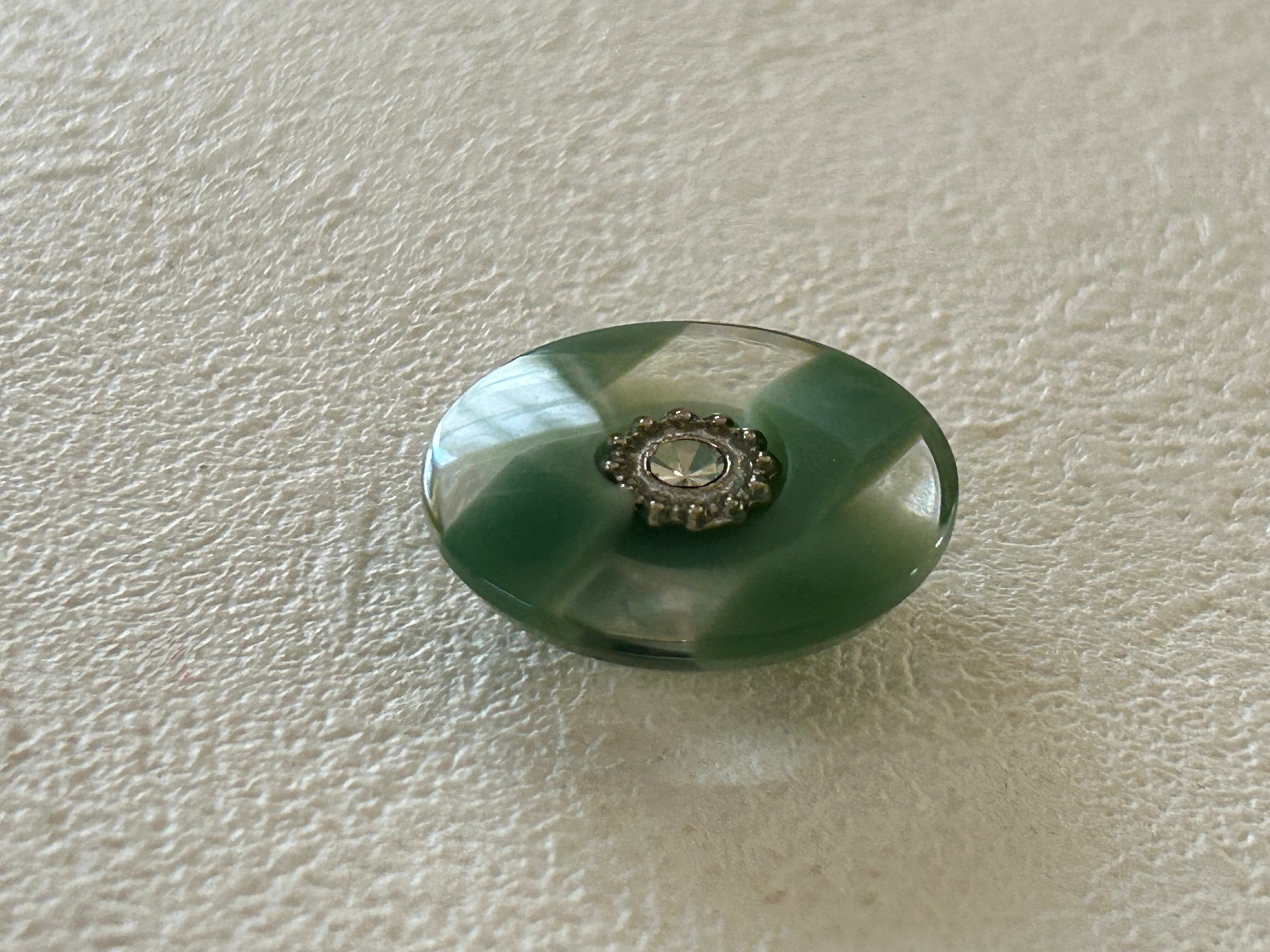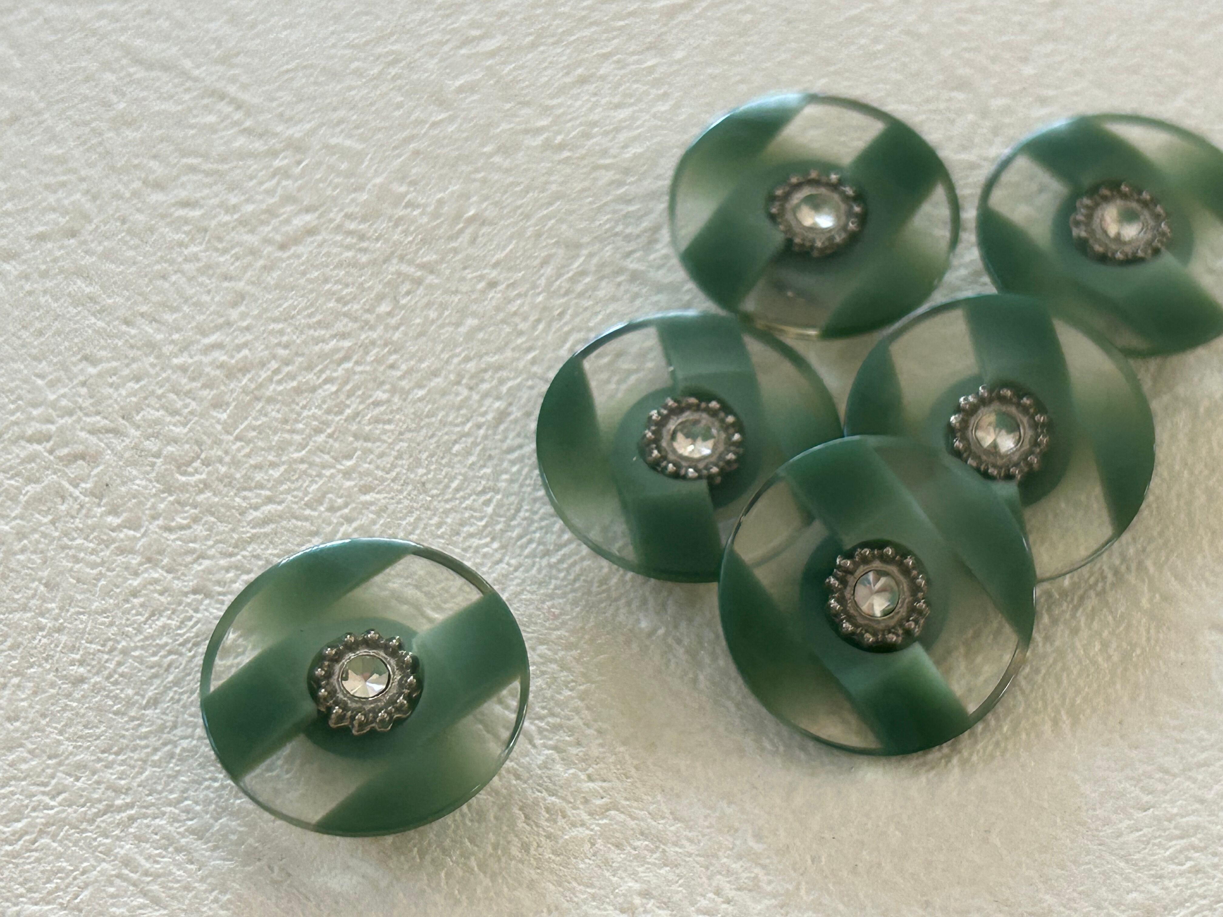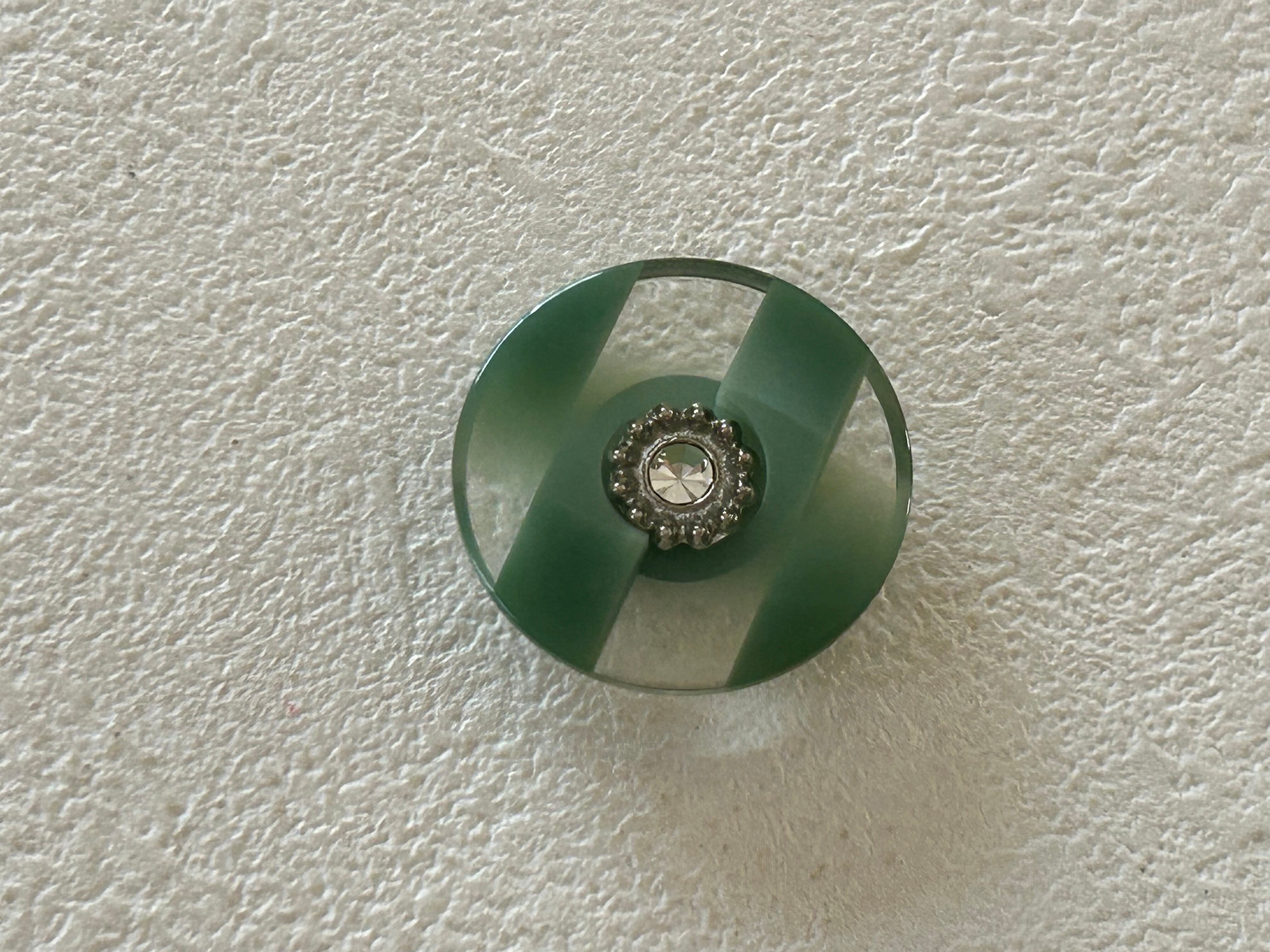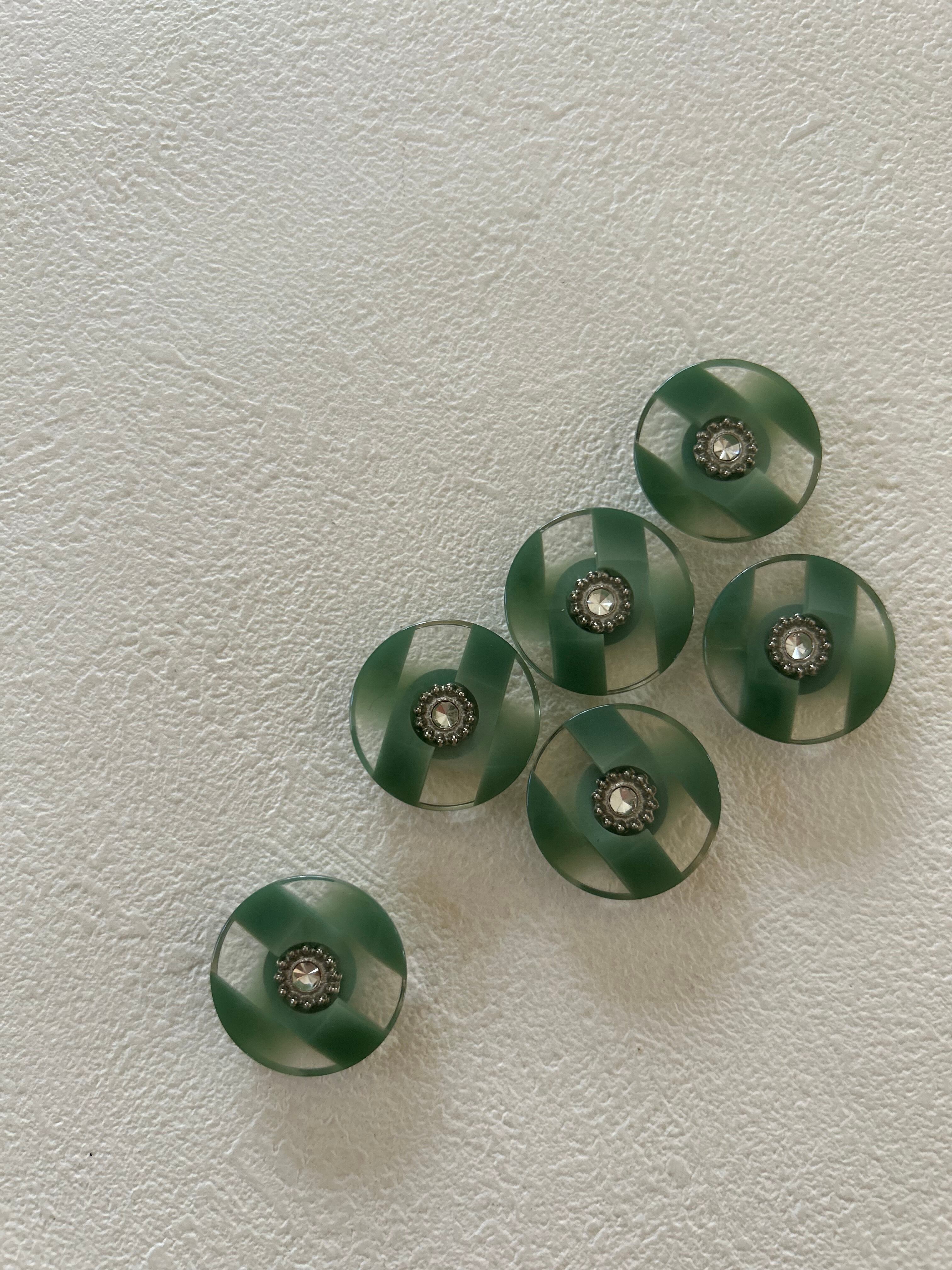 Japanese Vintage ボタン 23mm ストライプ ストーン グリーン プラスチックボタン 昭和レトロ アクセサリーパーツ 装飾材 カルトナージュ