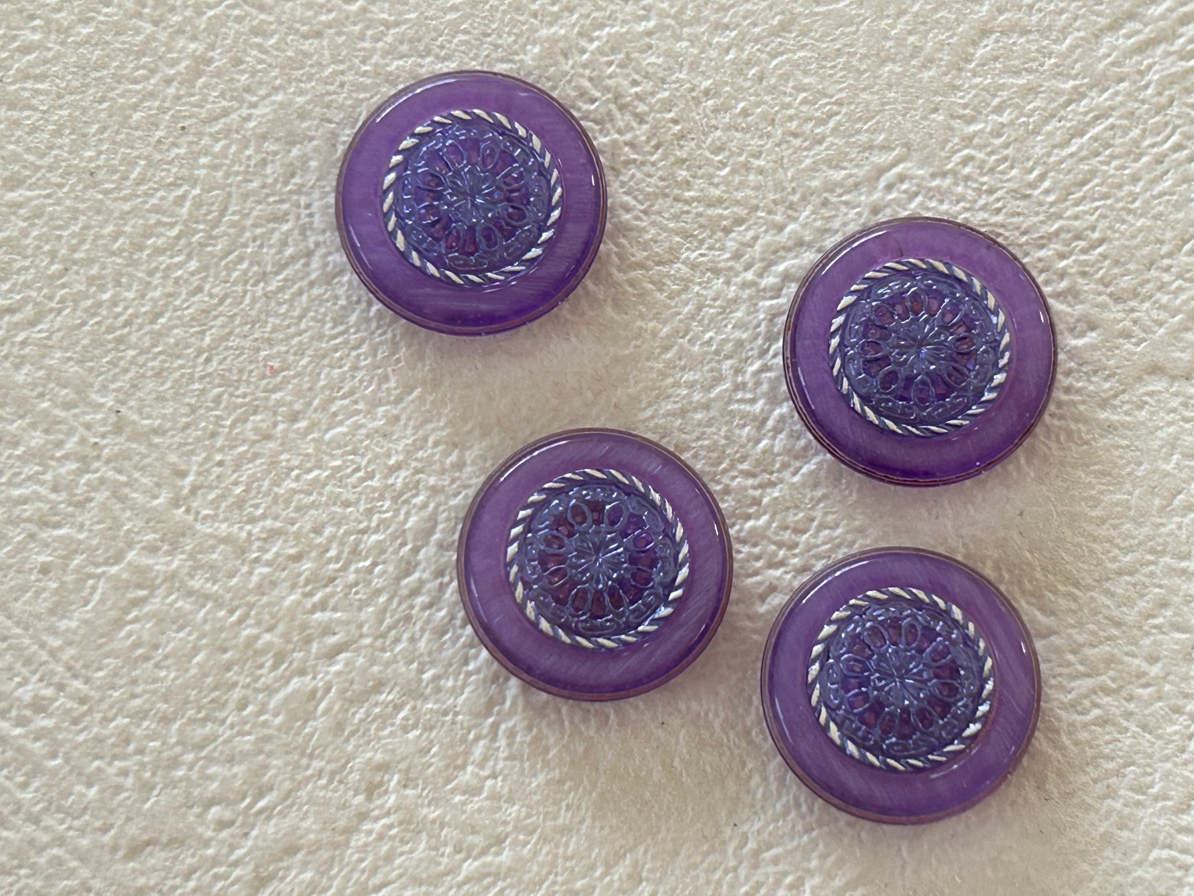 Japanese Vintage ボタン パープル×シルバー 15mm グリッター 昭和レトロ アクセサリーパーツ 装飾材 カルトナージュ