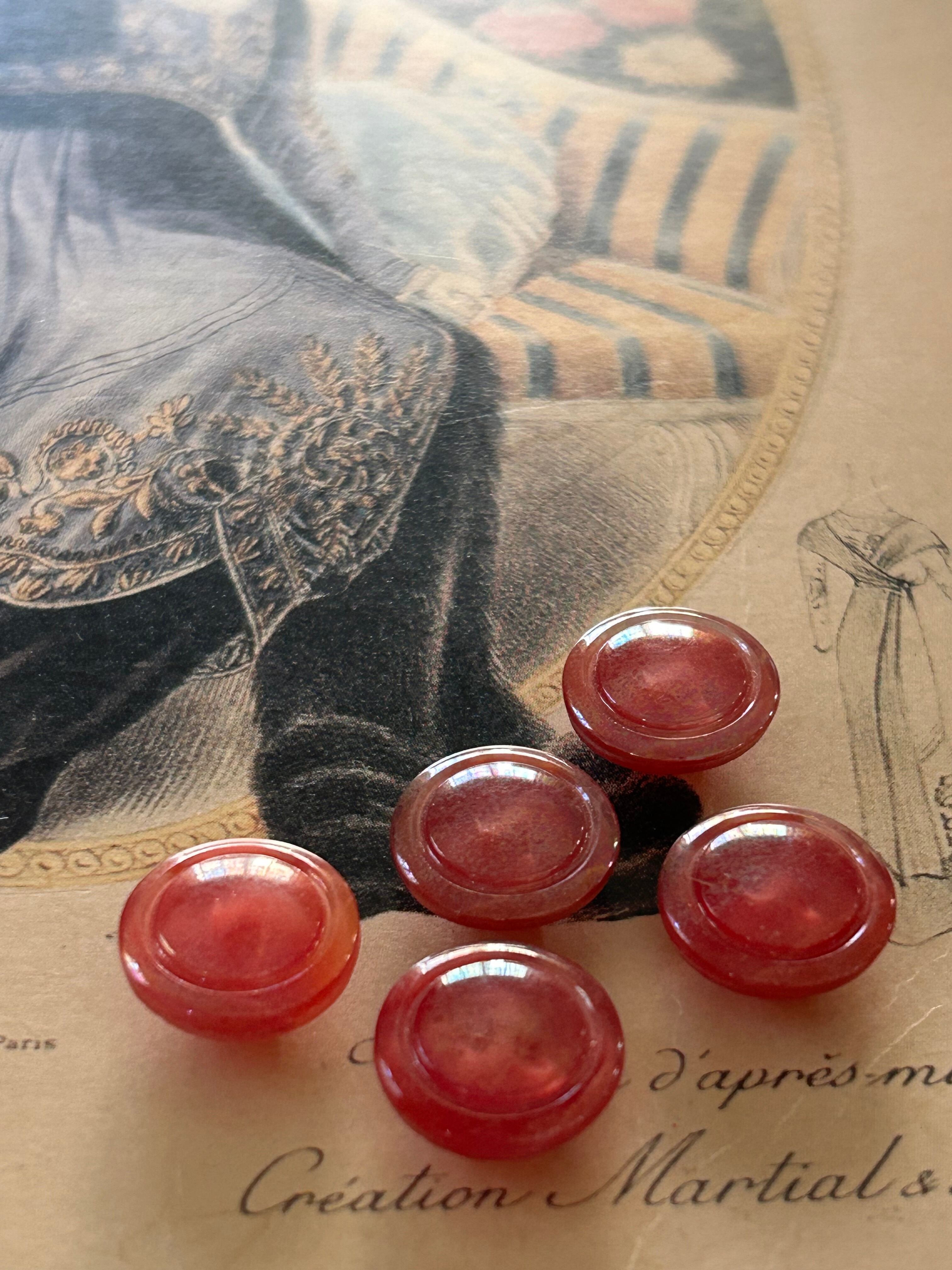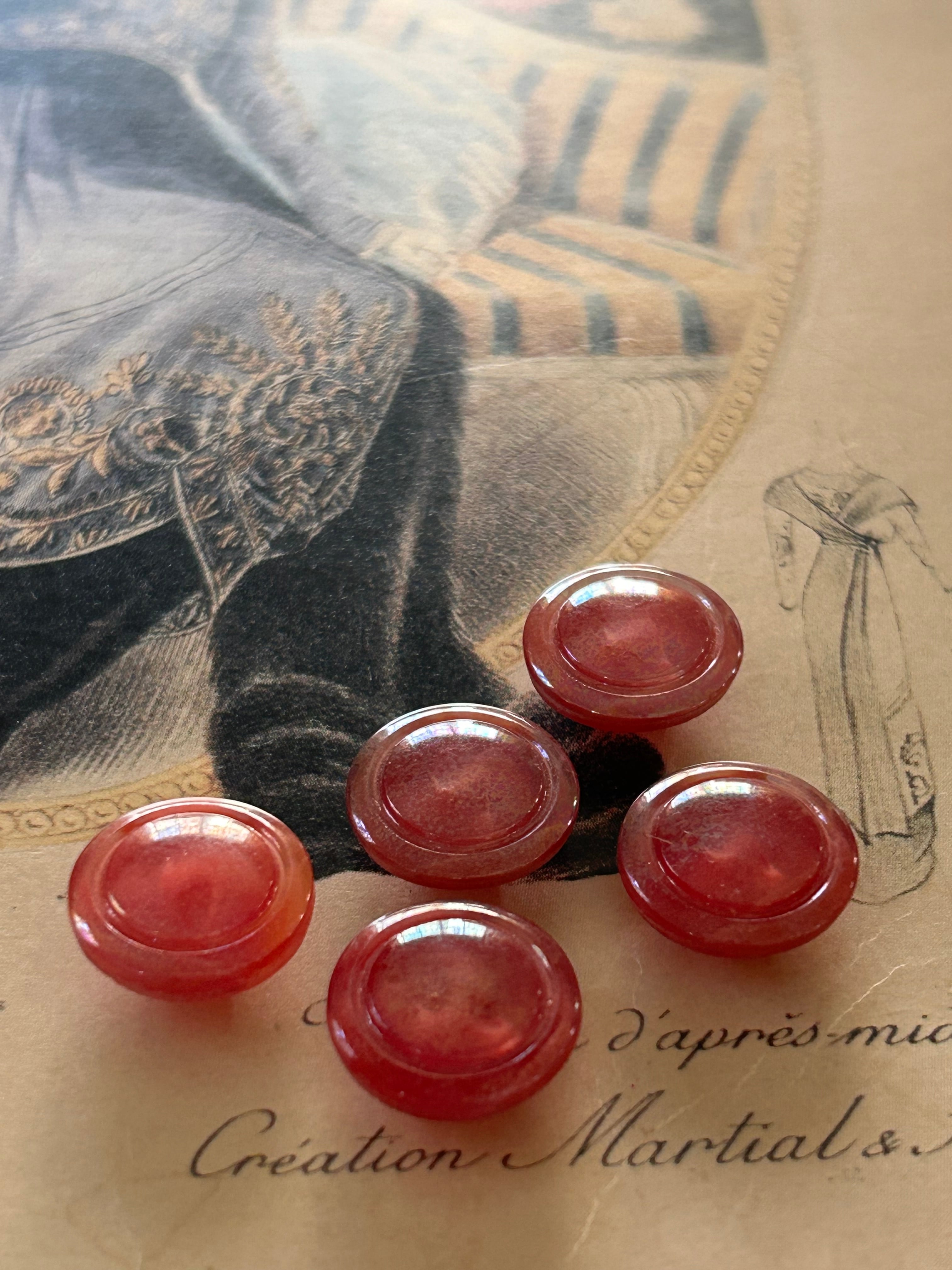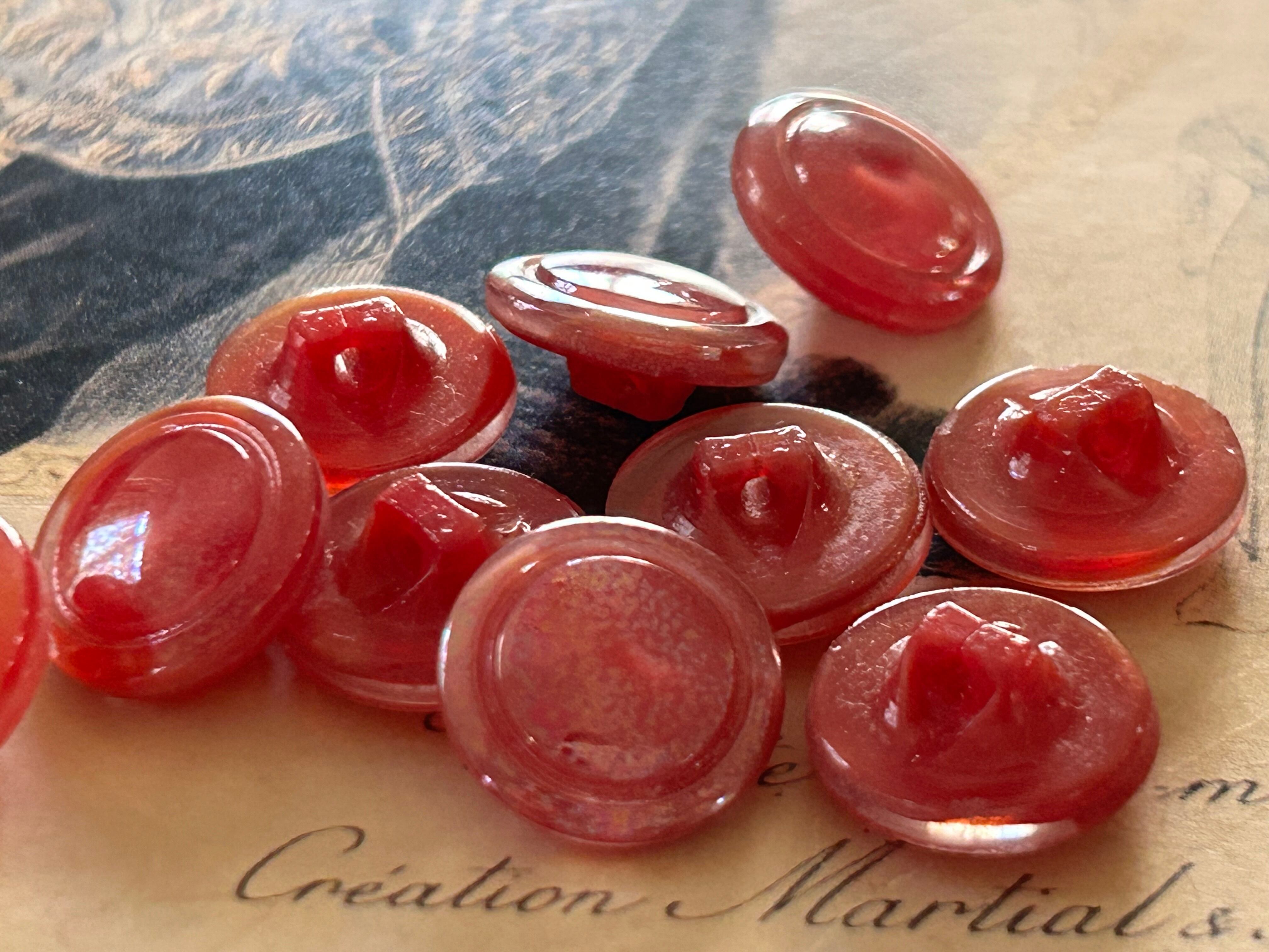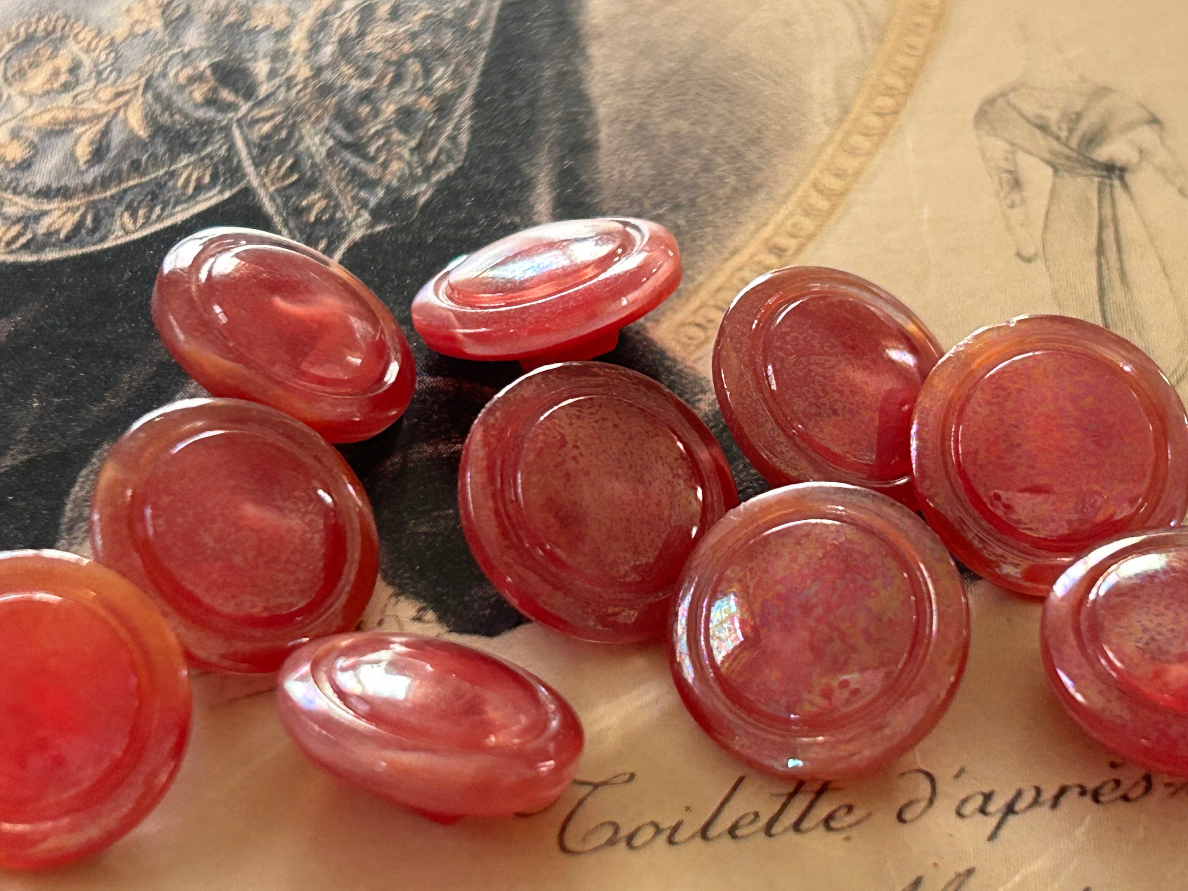フランス アンティークボタン ガラスボタン 13mm レッド オーロラ ハンドメイド 撮影小物 赤色 コレクション