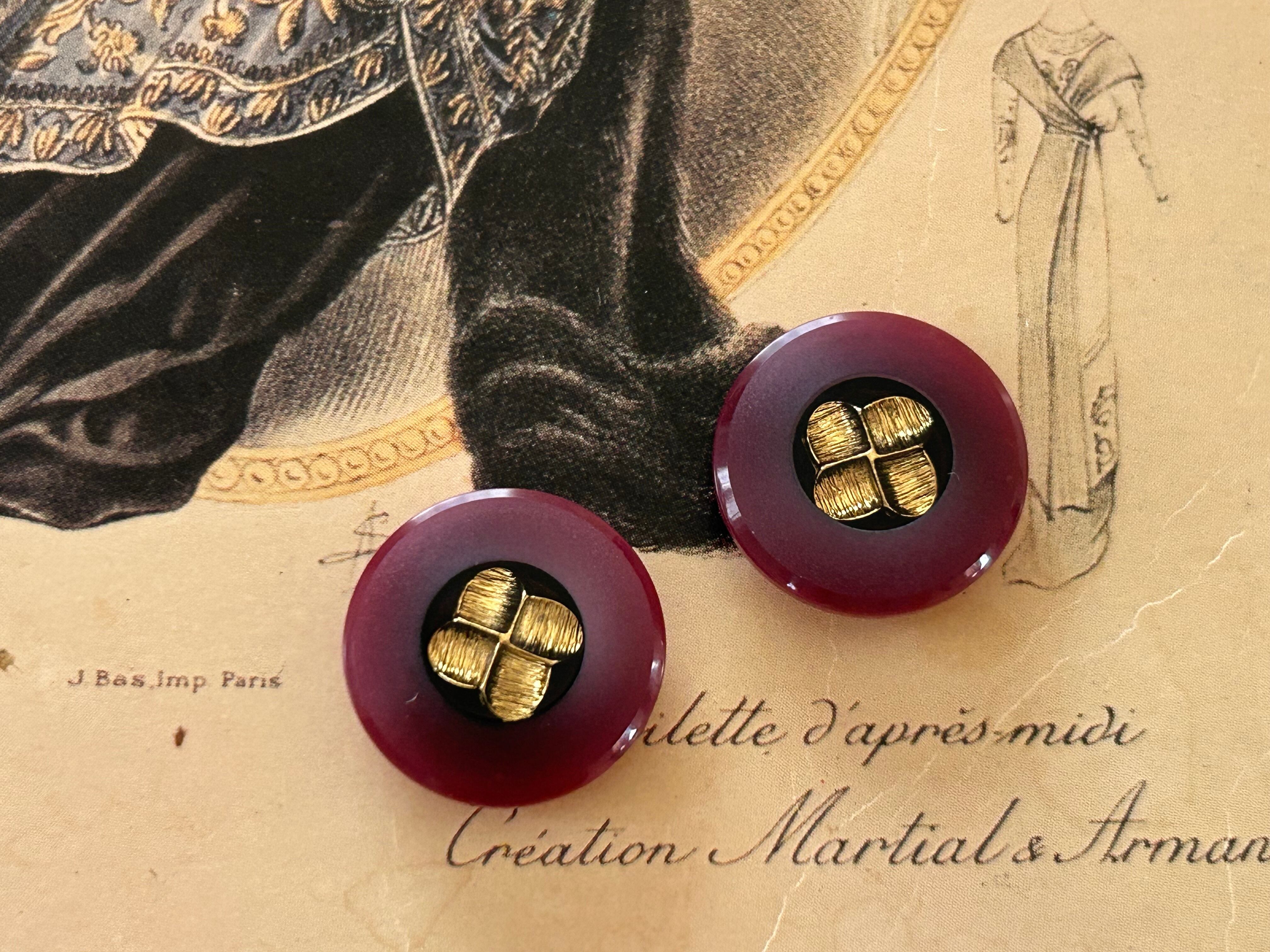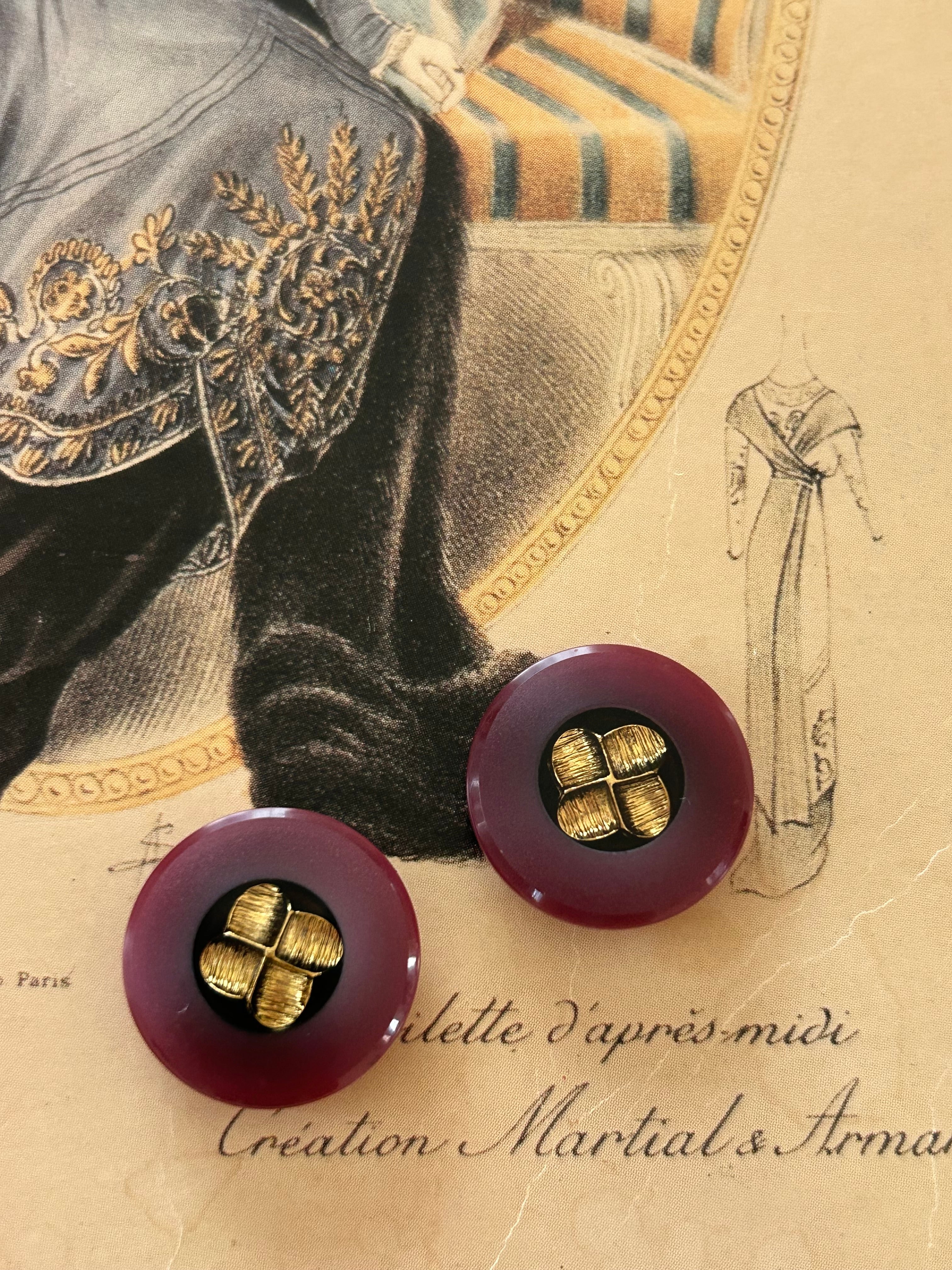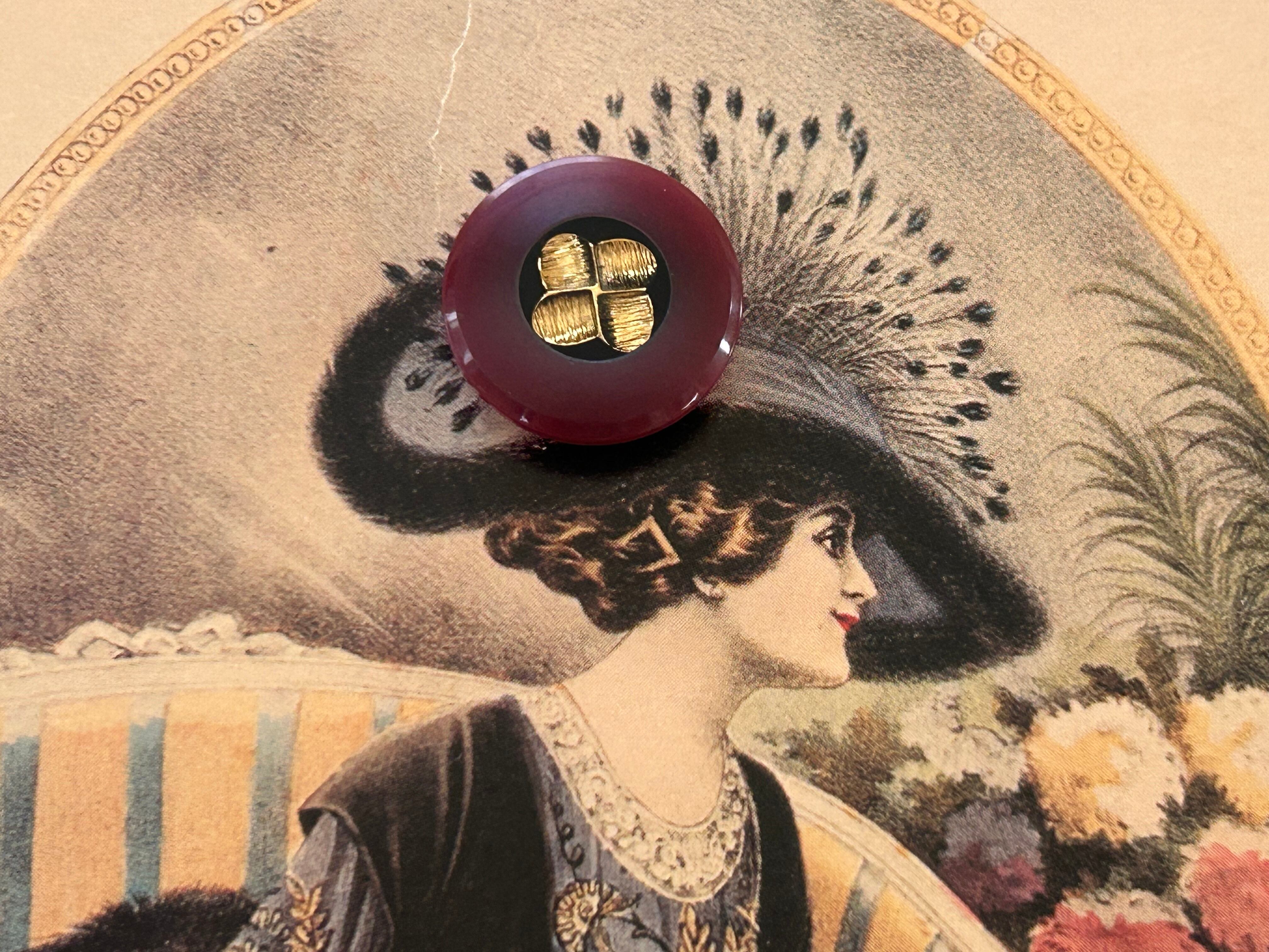 Japanese Vintage ボタン ワインレッド×ゴールド 20mm プラスチックボタン 昭和レトロ アクセサリーパーツ 装飾材 カルトナージュ