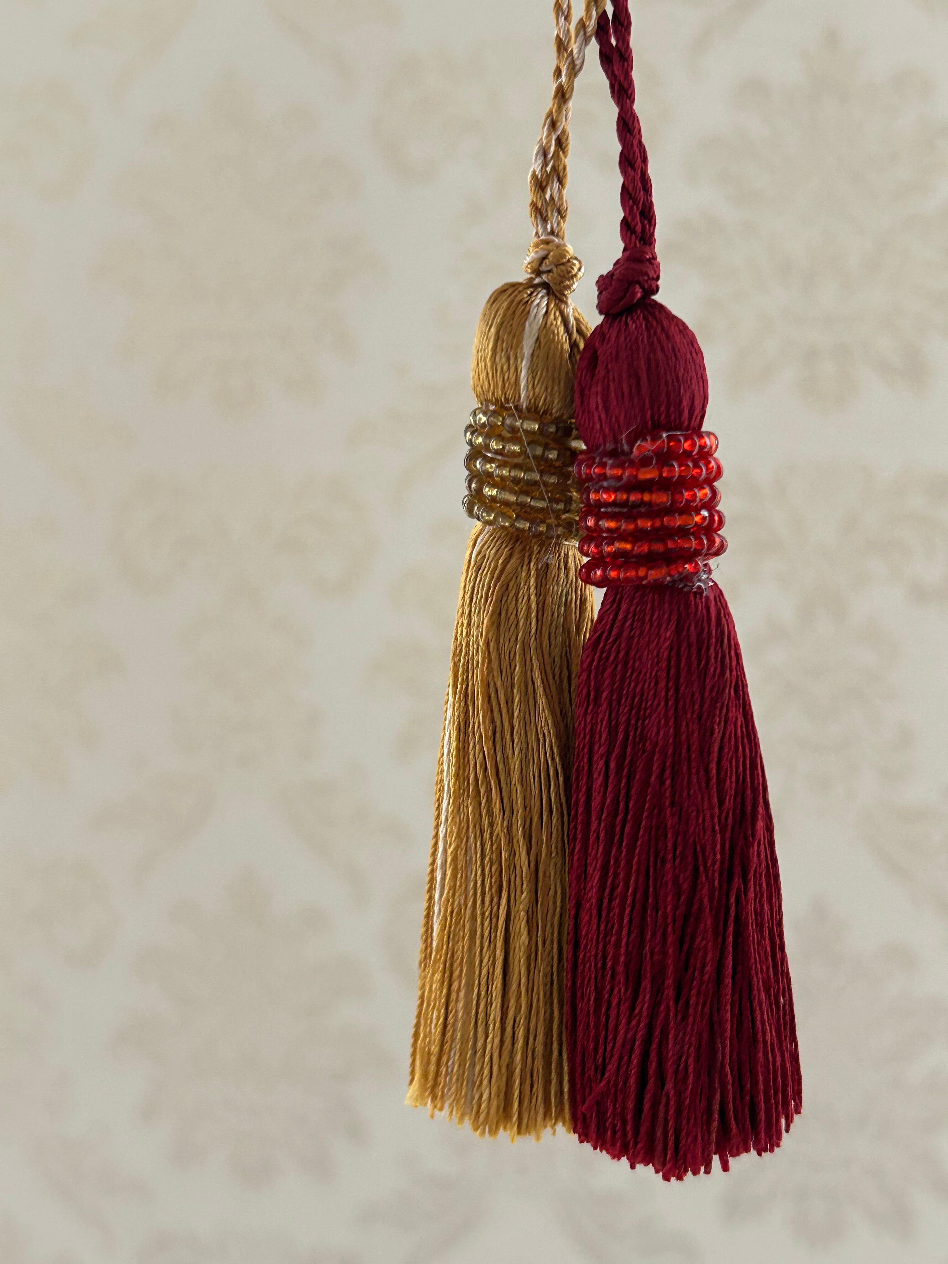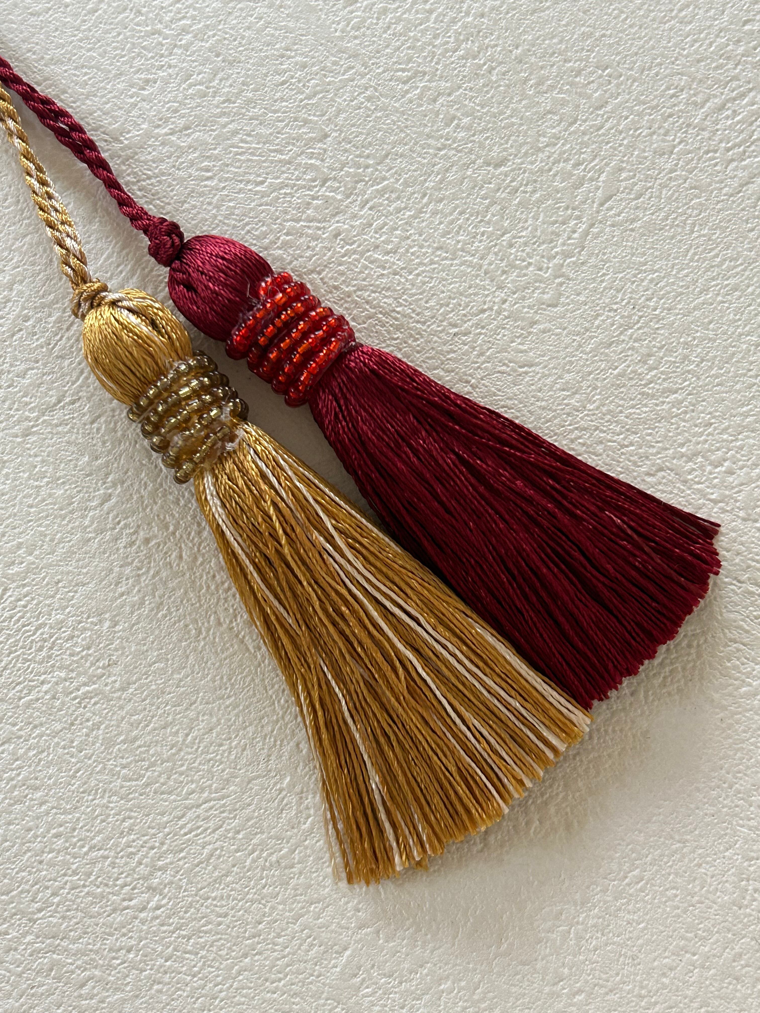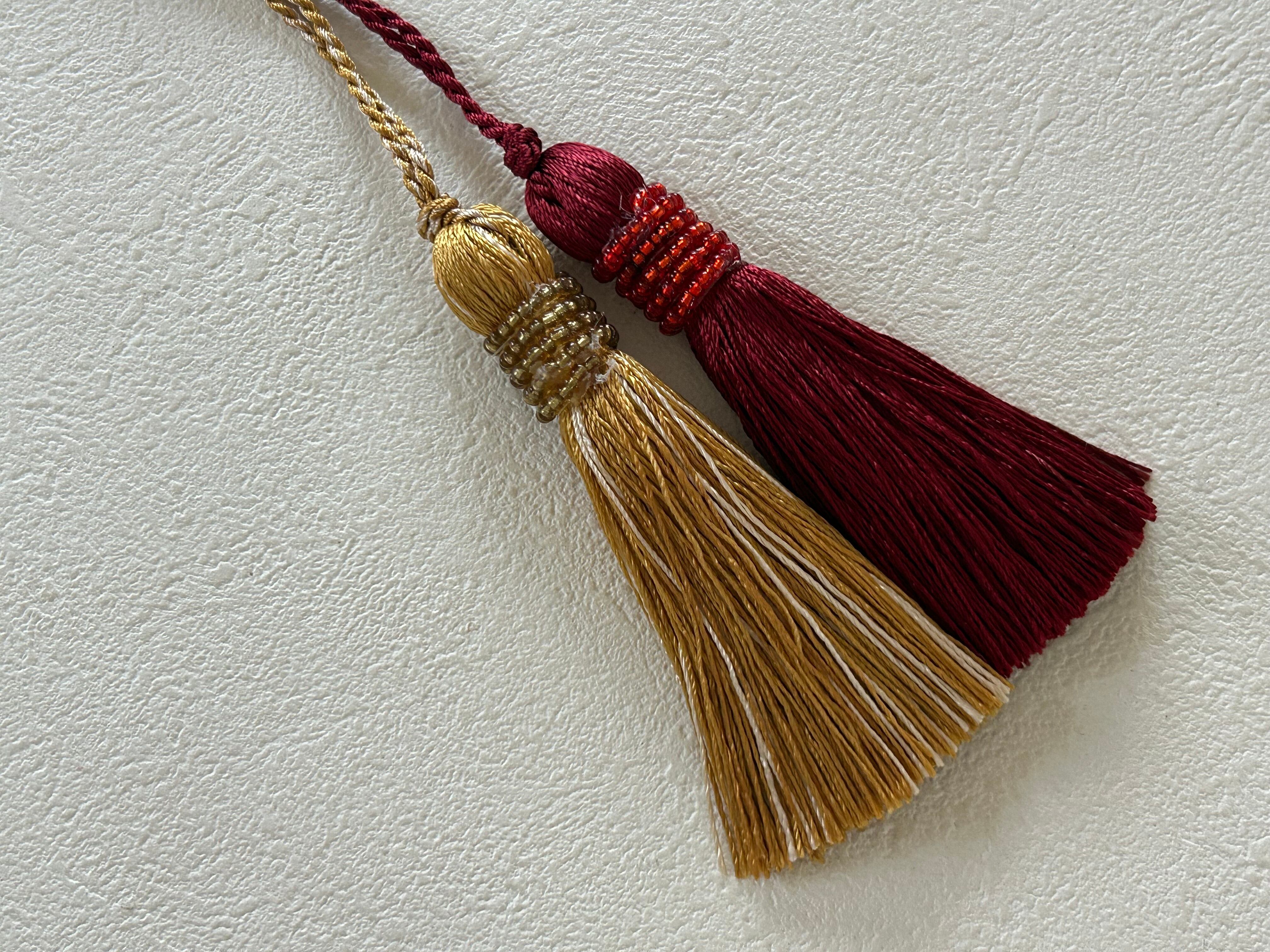 トップにビーズのデコレーションが付いたシンプルで上品なタッセルです。