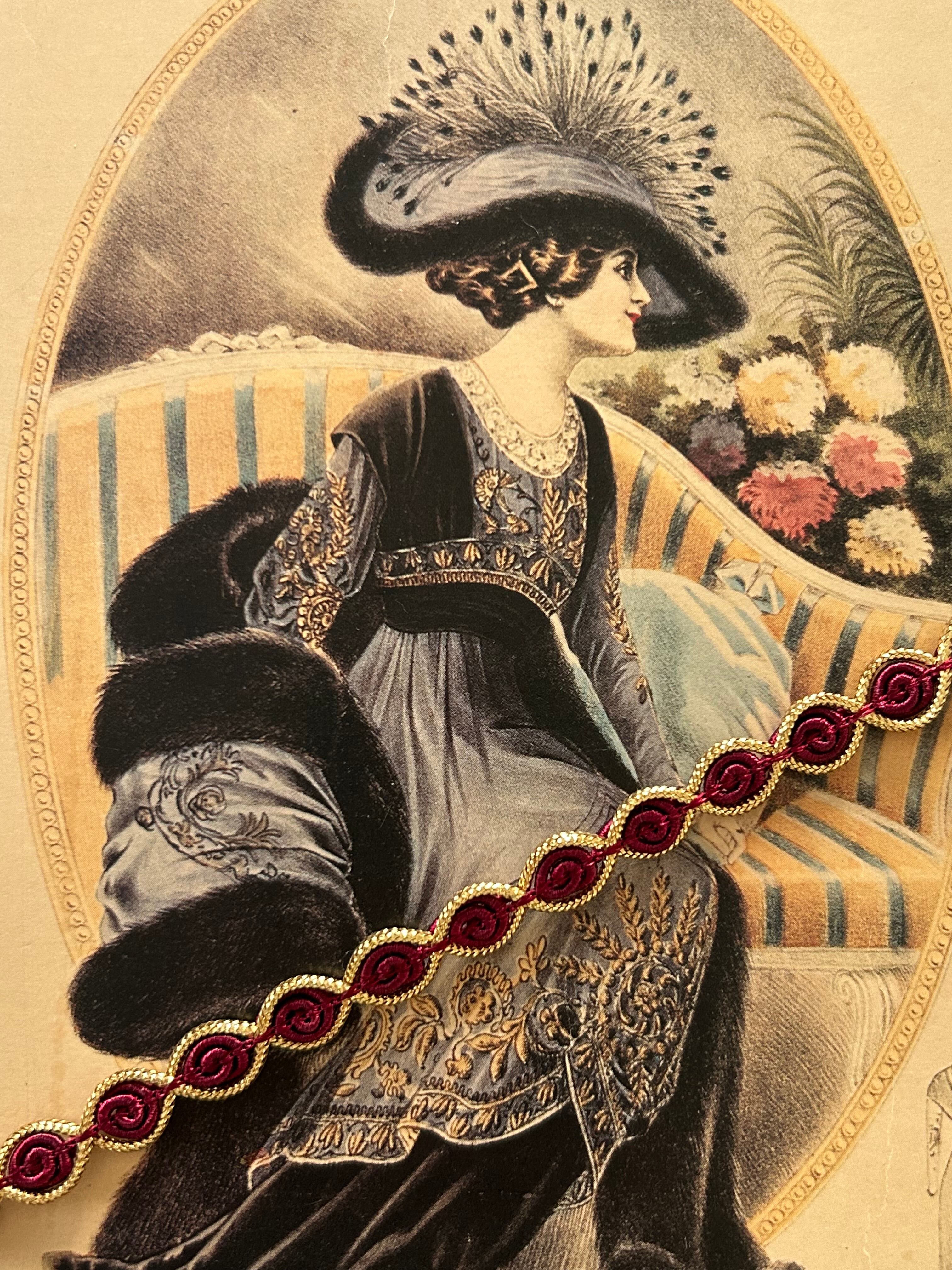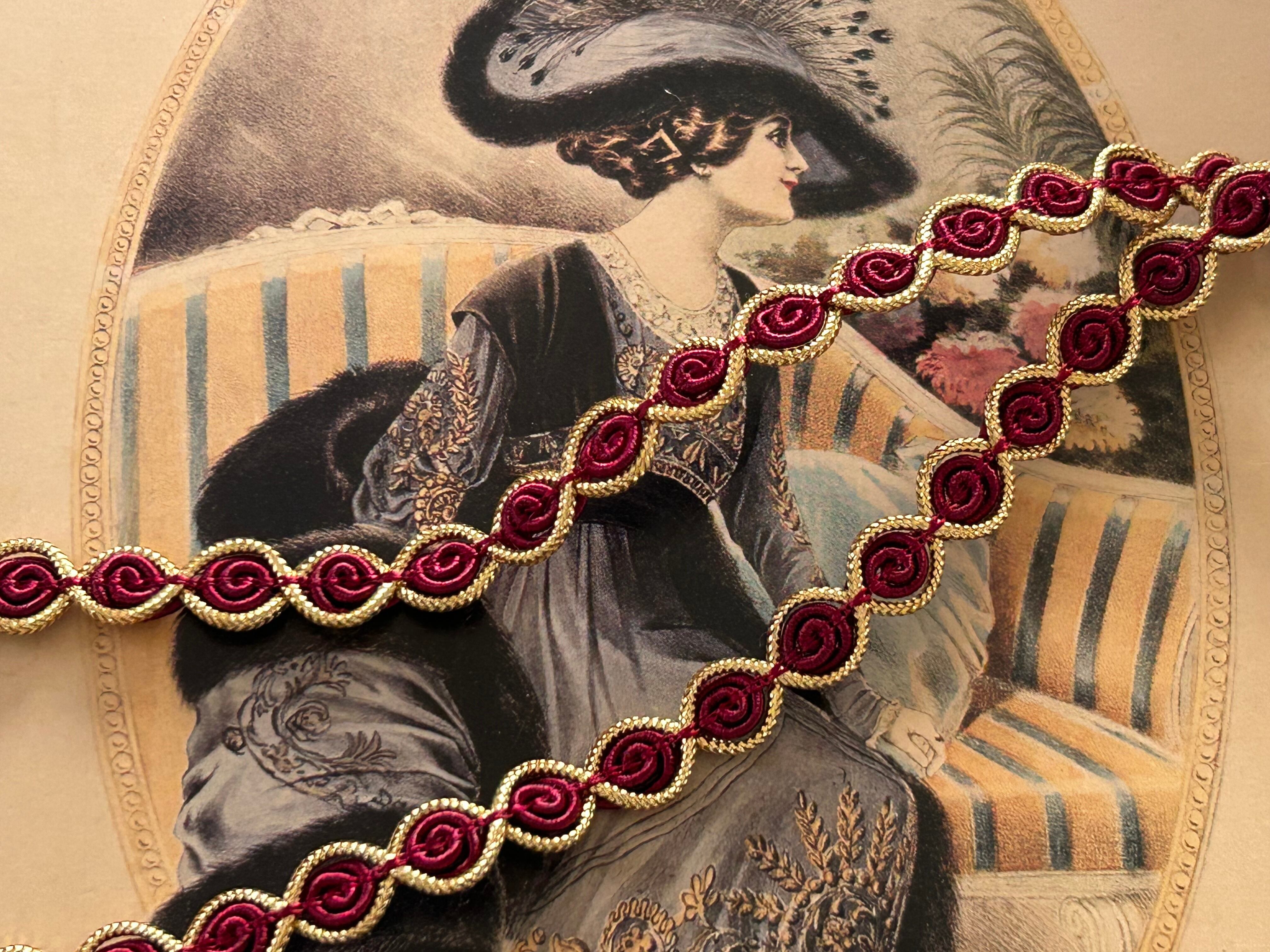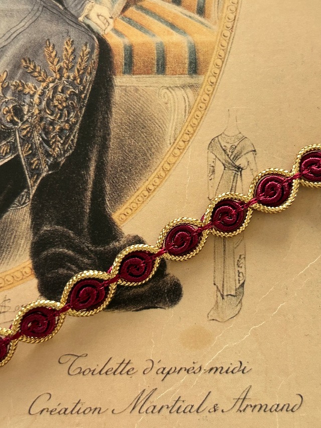 輸入デザインブレード レッド ×ゴールド8mm 100cm /カット チェーンブレード カルトナージュ デコレーション材