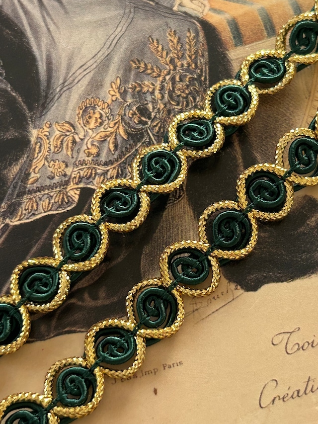 輸入デザインブレード グリーン×ゴールド 10mm 100cm /カット カルトナージュ デコレーション材