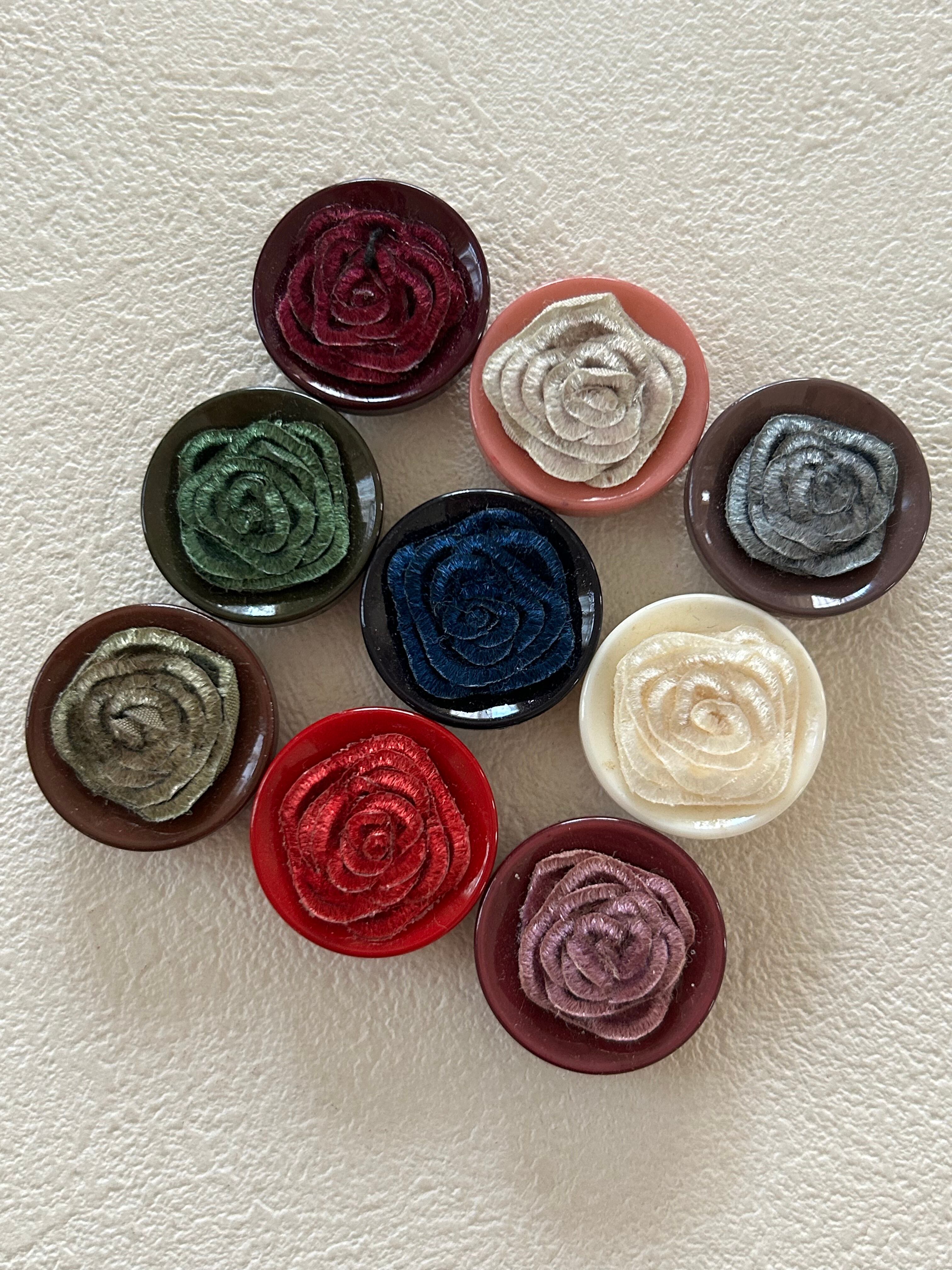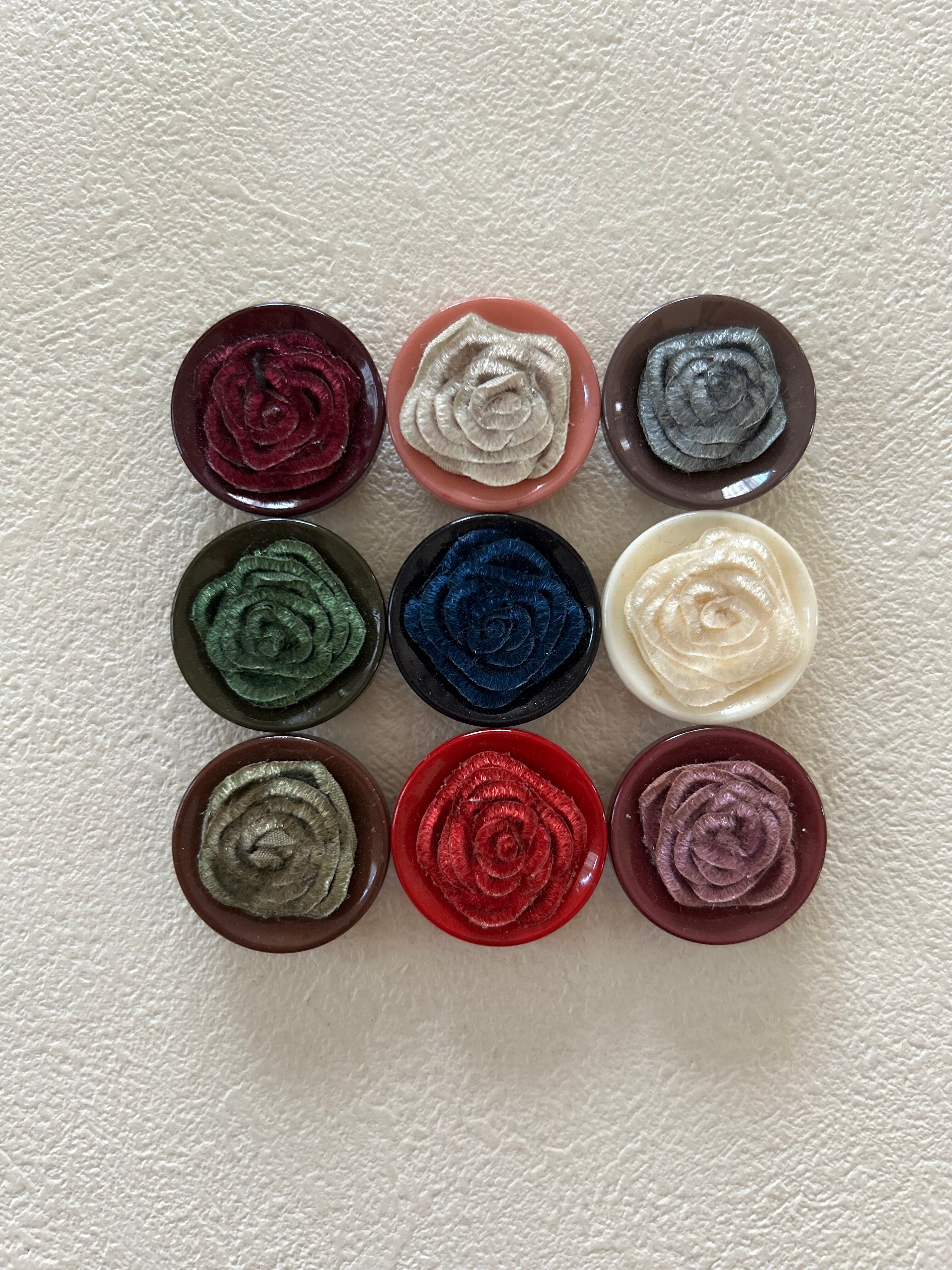 お洋服のボタンの付け替えには勿論のことアクセサリーパーツとして、カルトナージュのデコレーション材になど様々な用途でお役立て下さいませ。