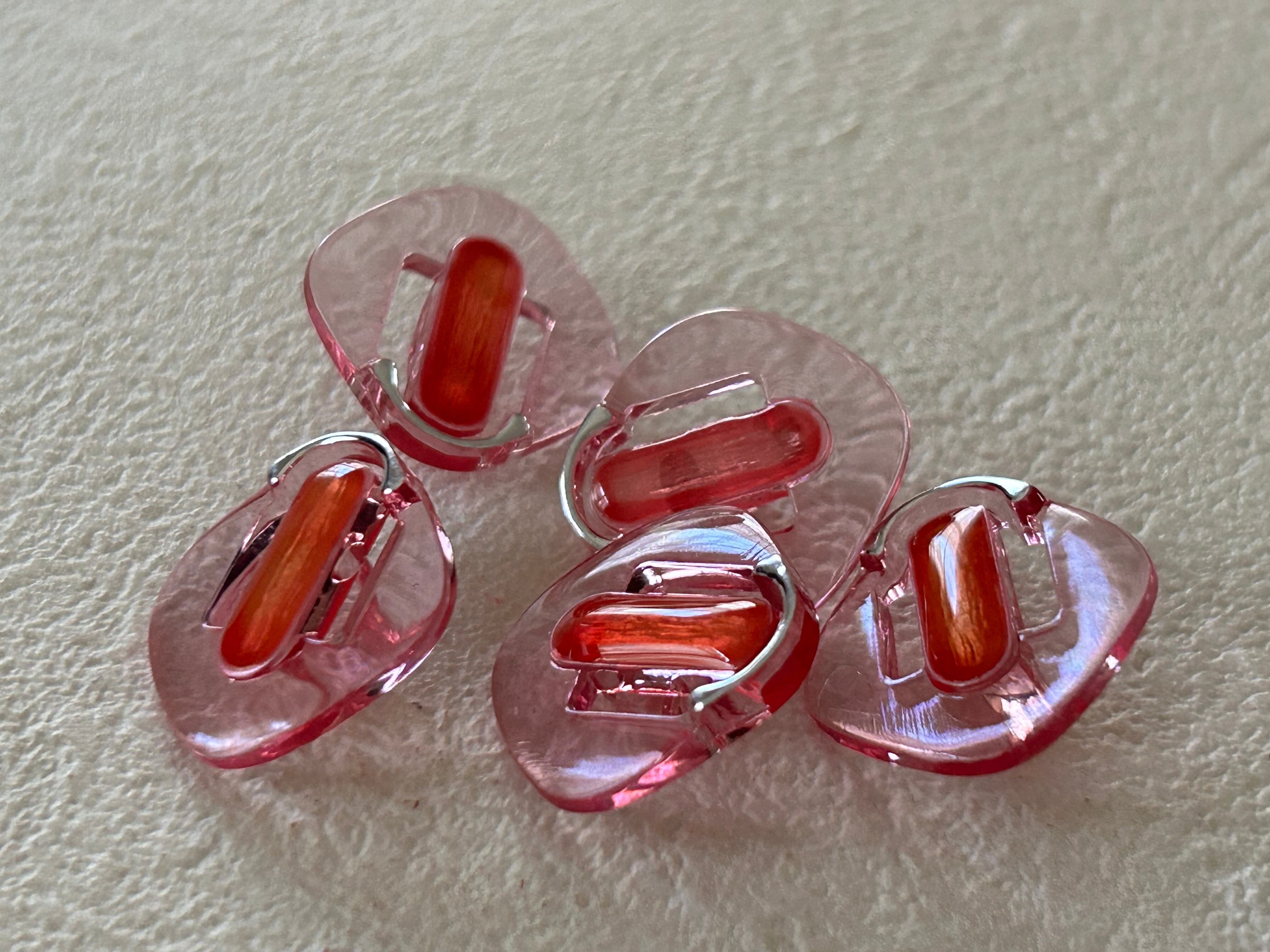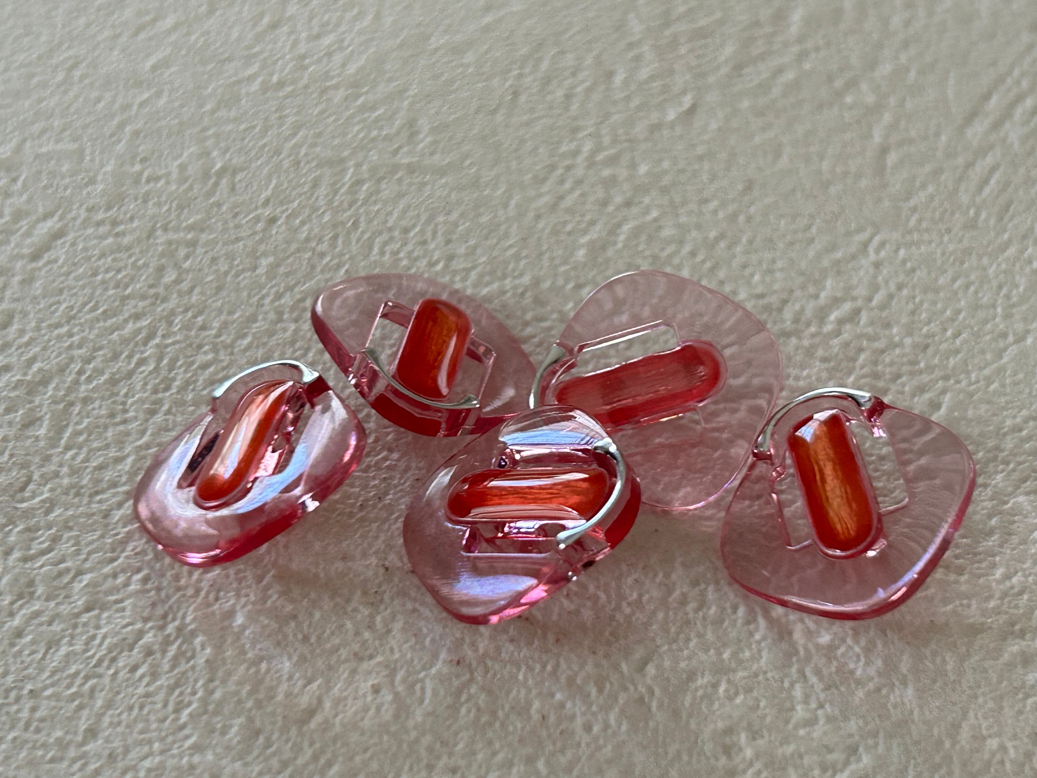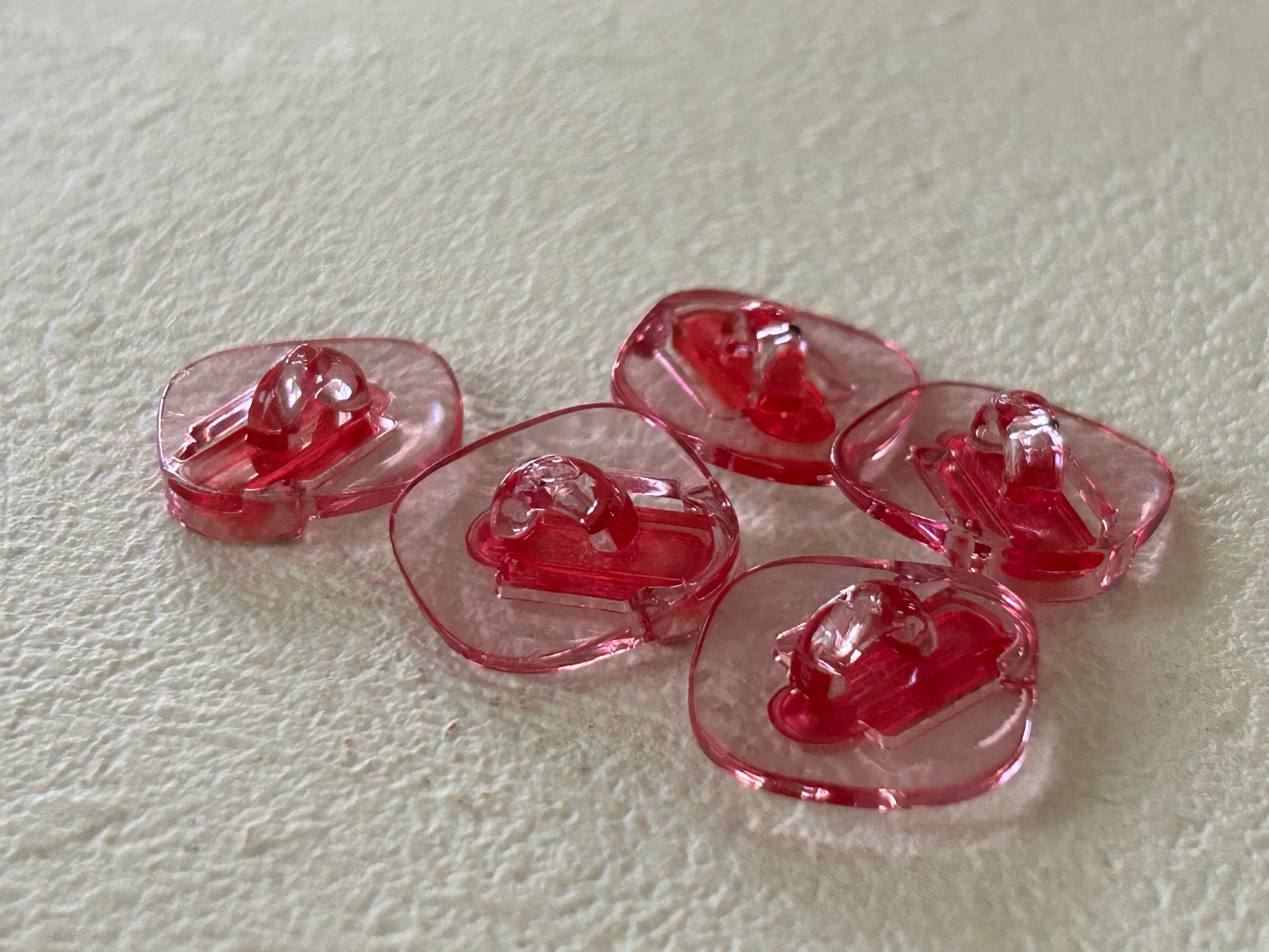 Japanese Vintage ボタン 角なしスクウェア レッド系 15mm クリア 透かし カボション 昭和レトロ アクセサリーパーツ 装飾材 カルトナージュ
