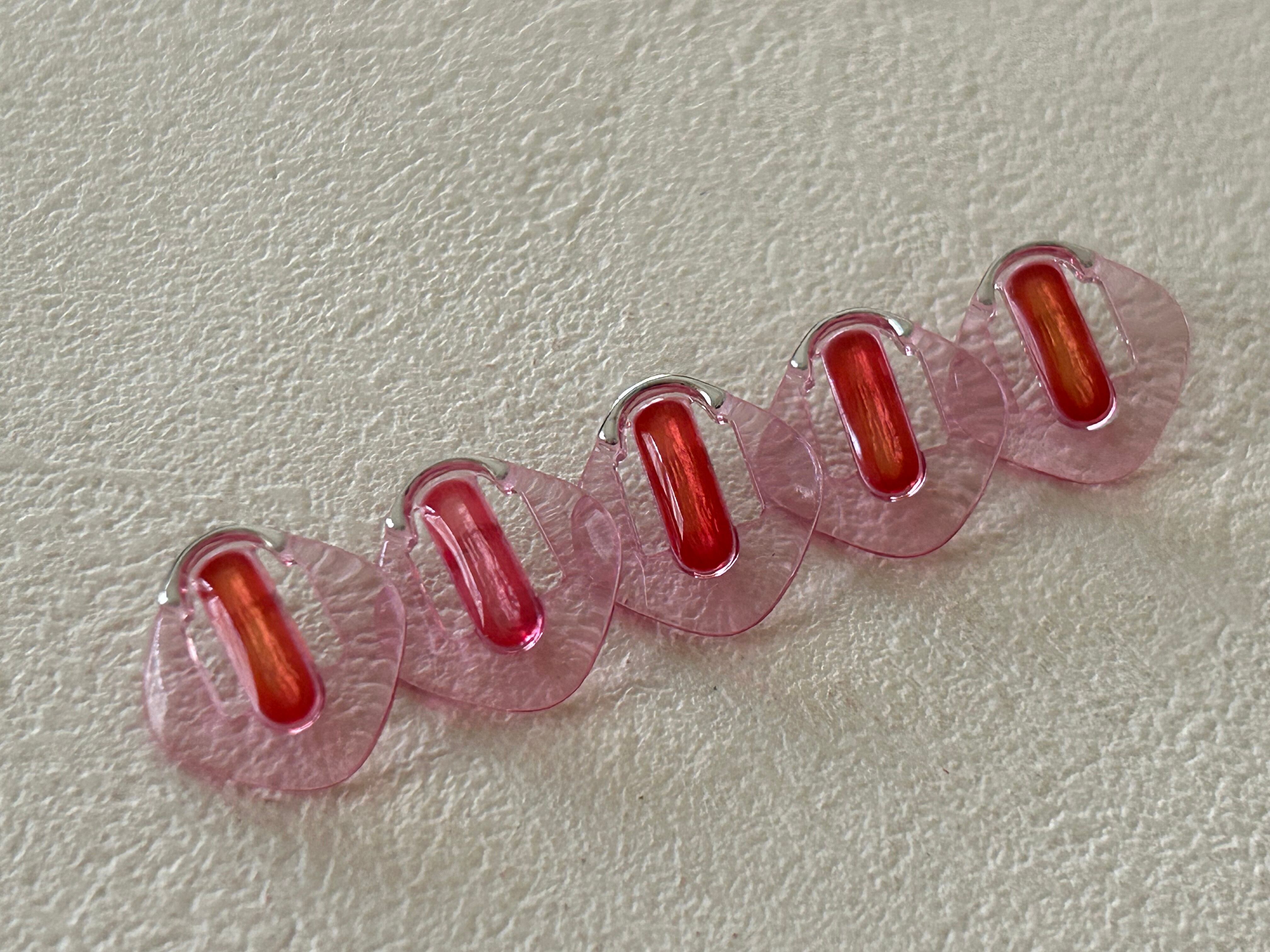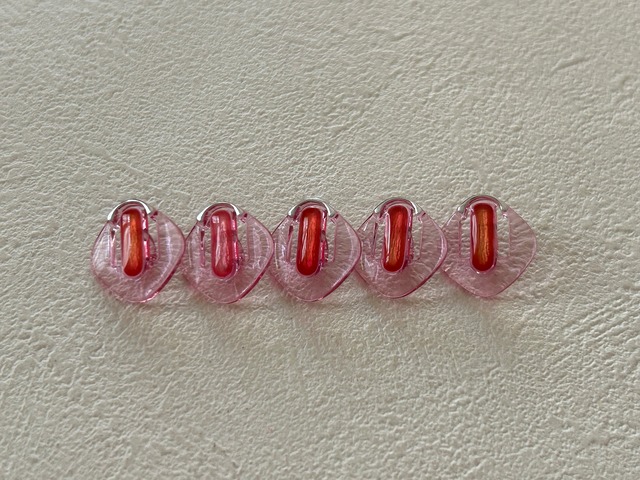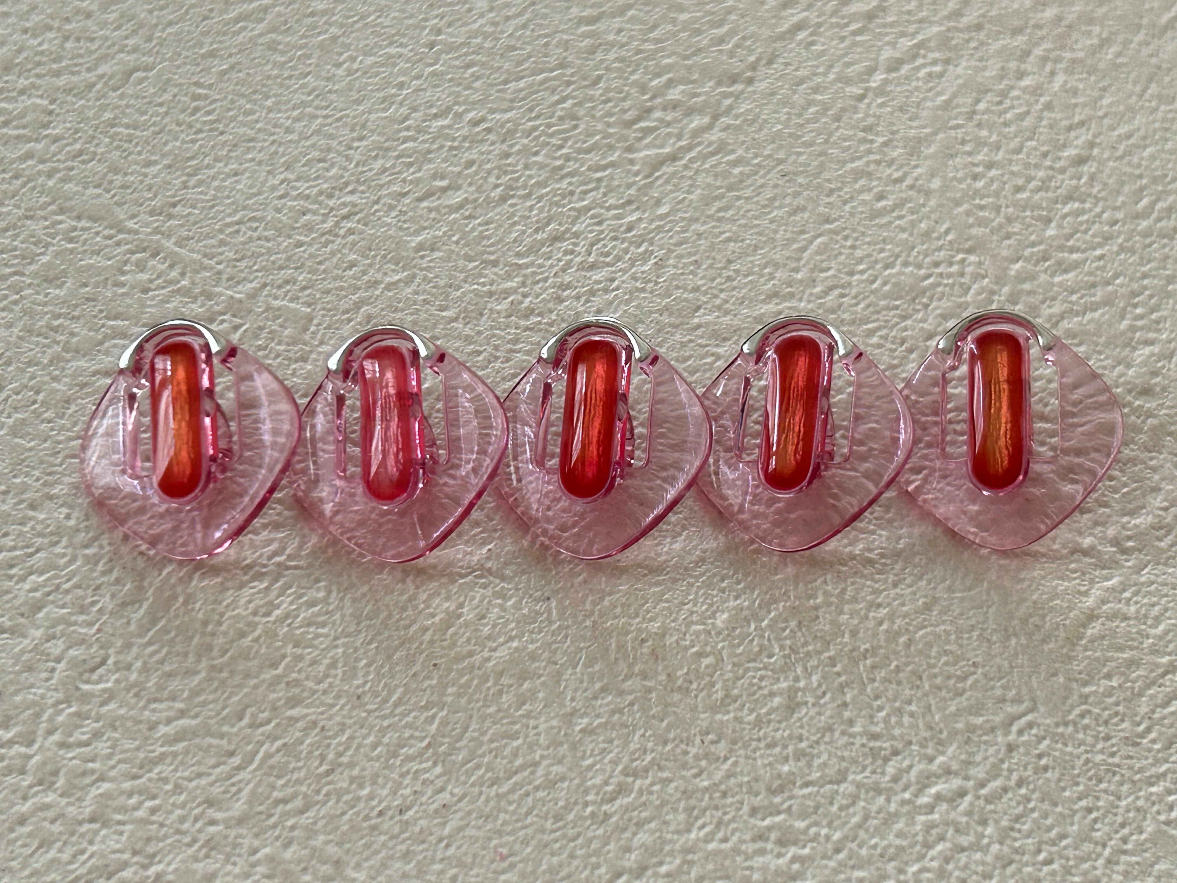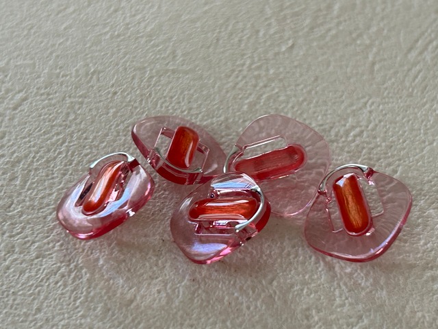 色付きのクリアボタンに画像の様なレッド系のカボション。