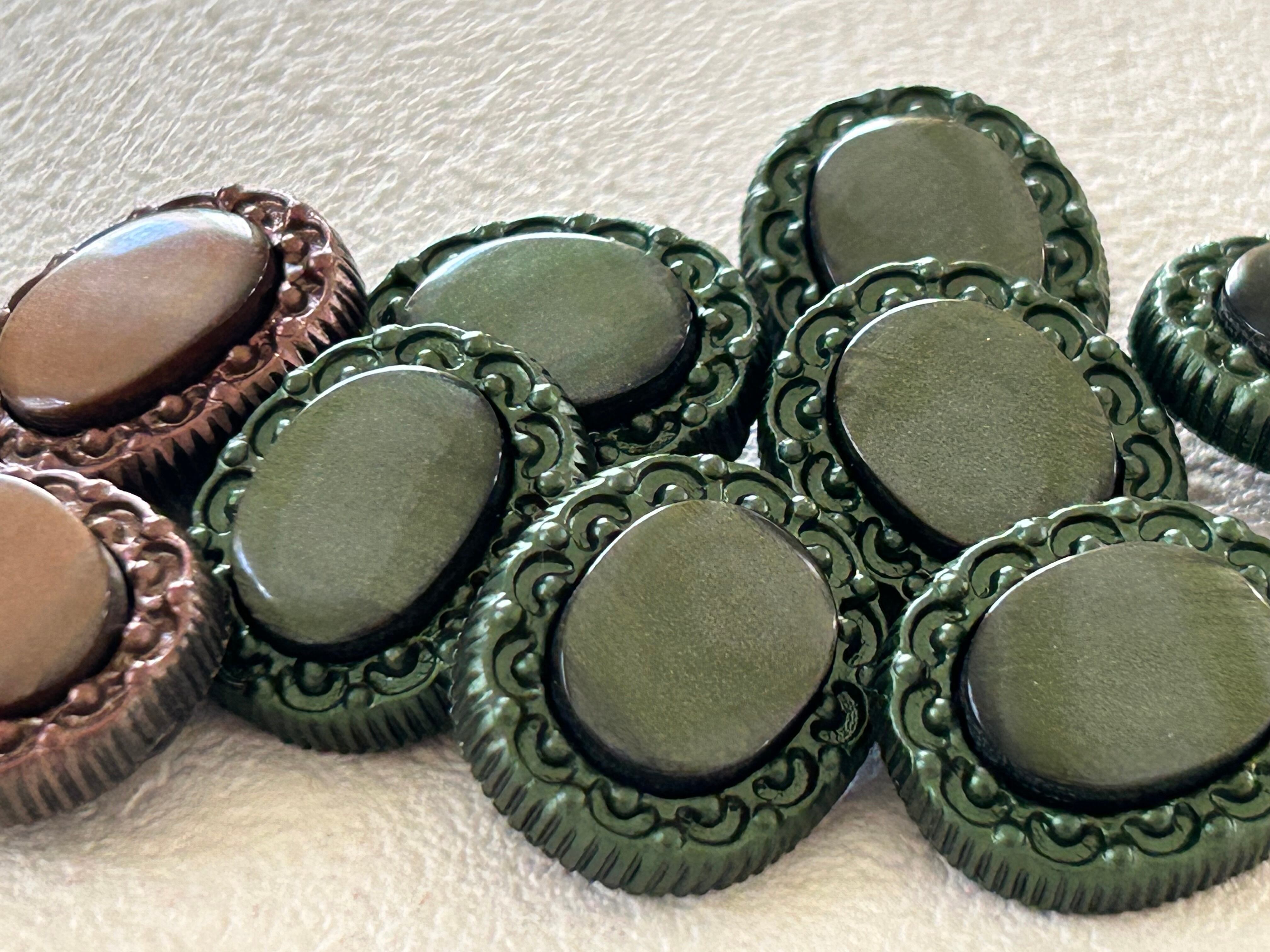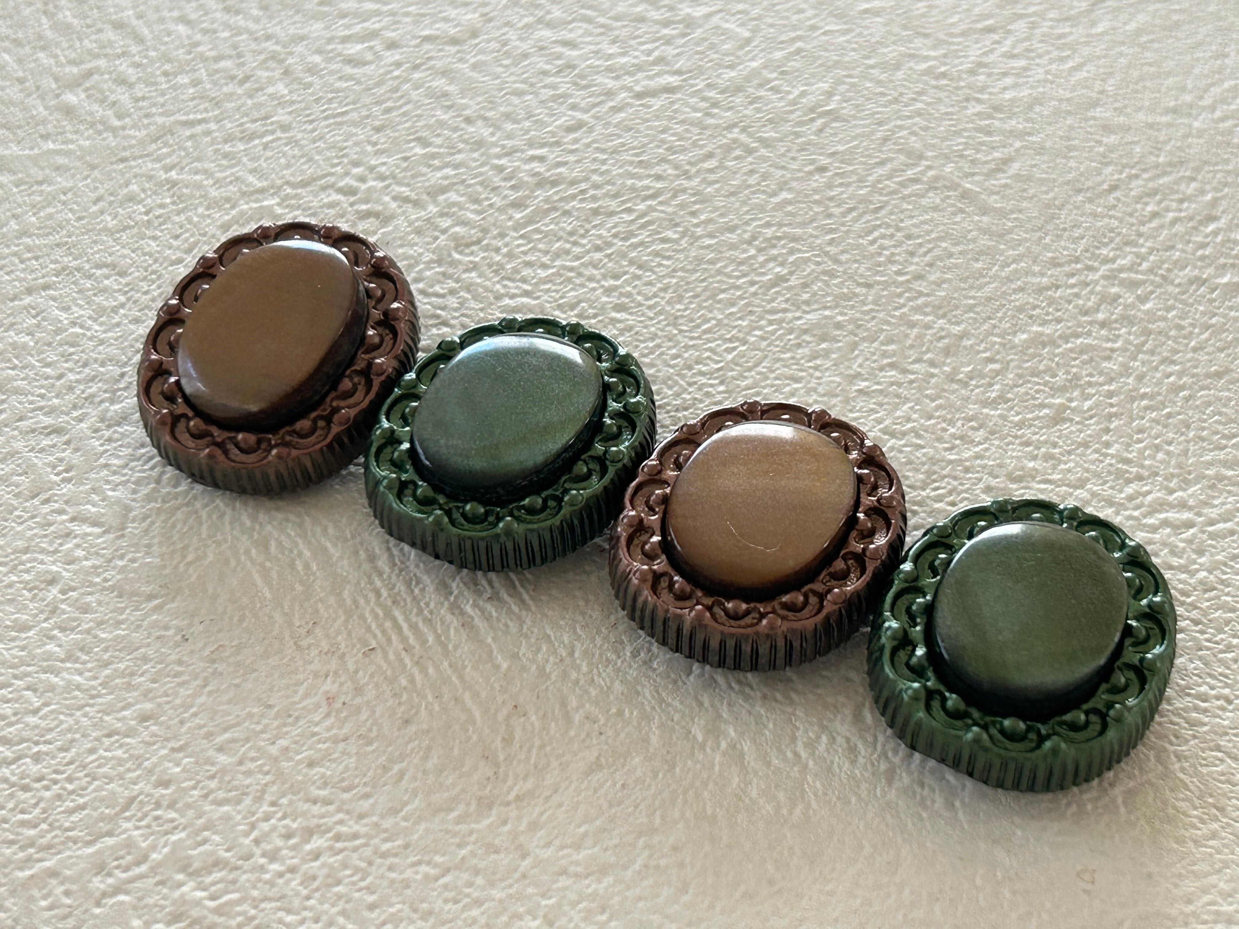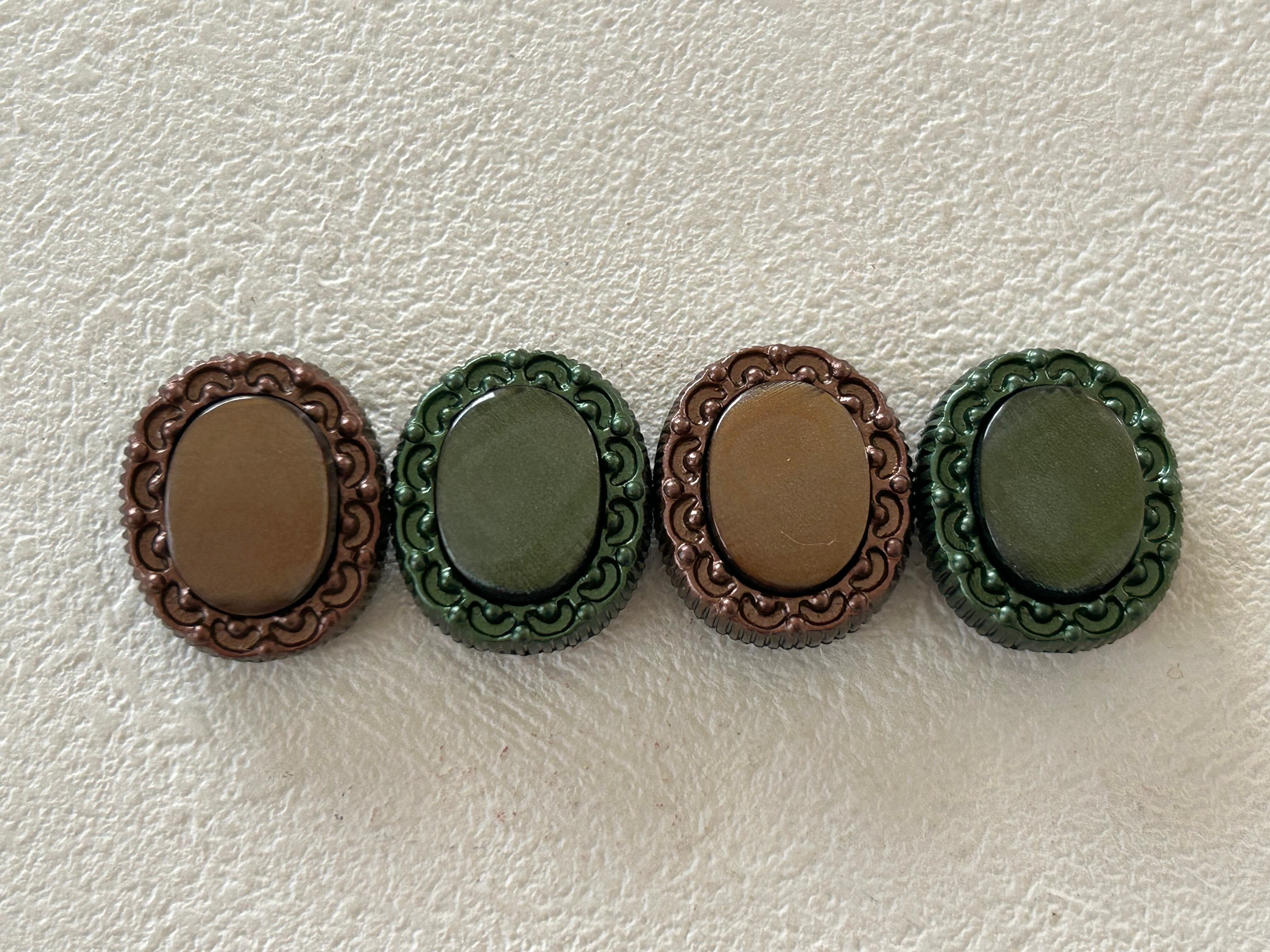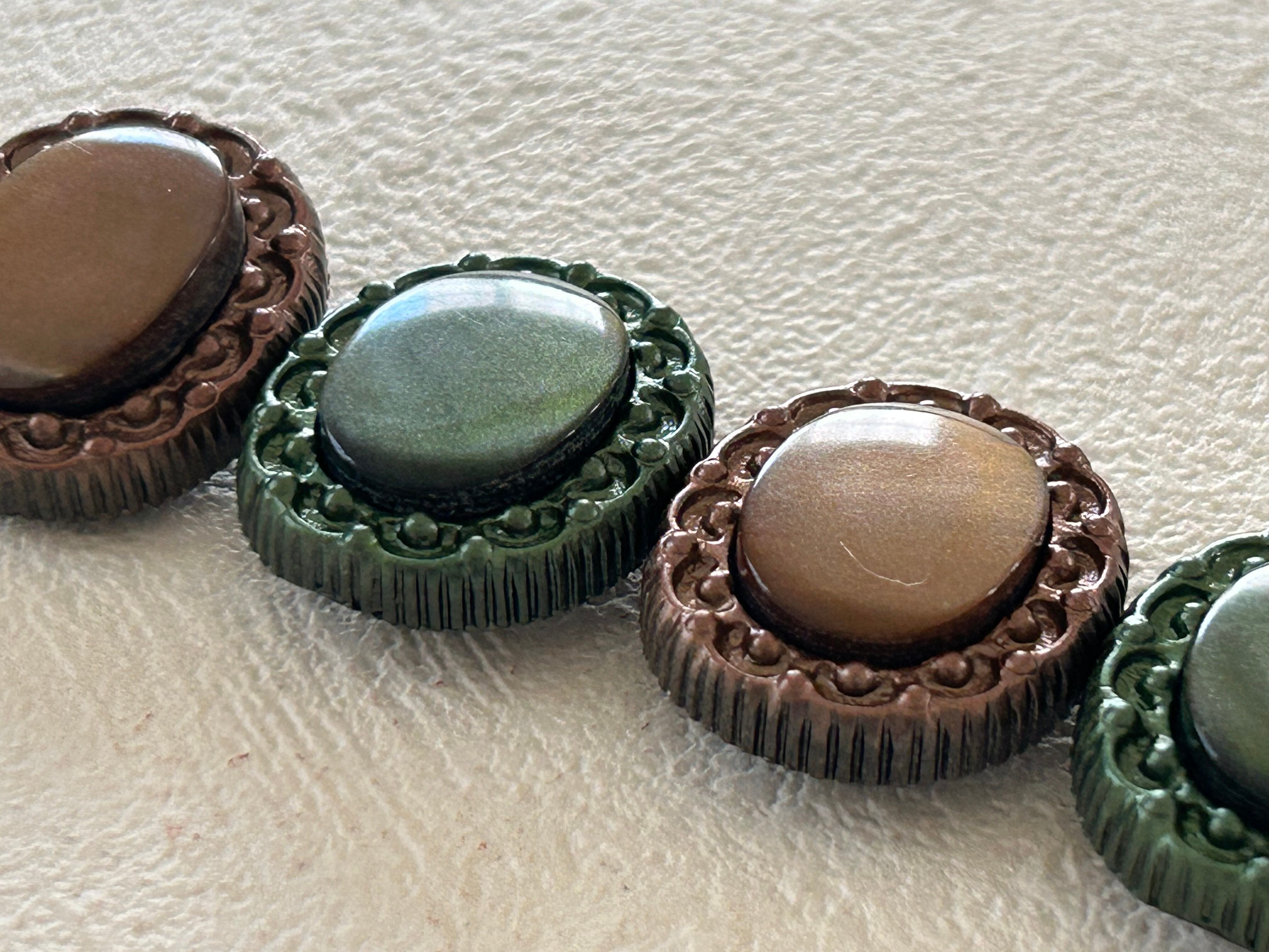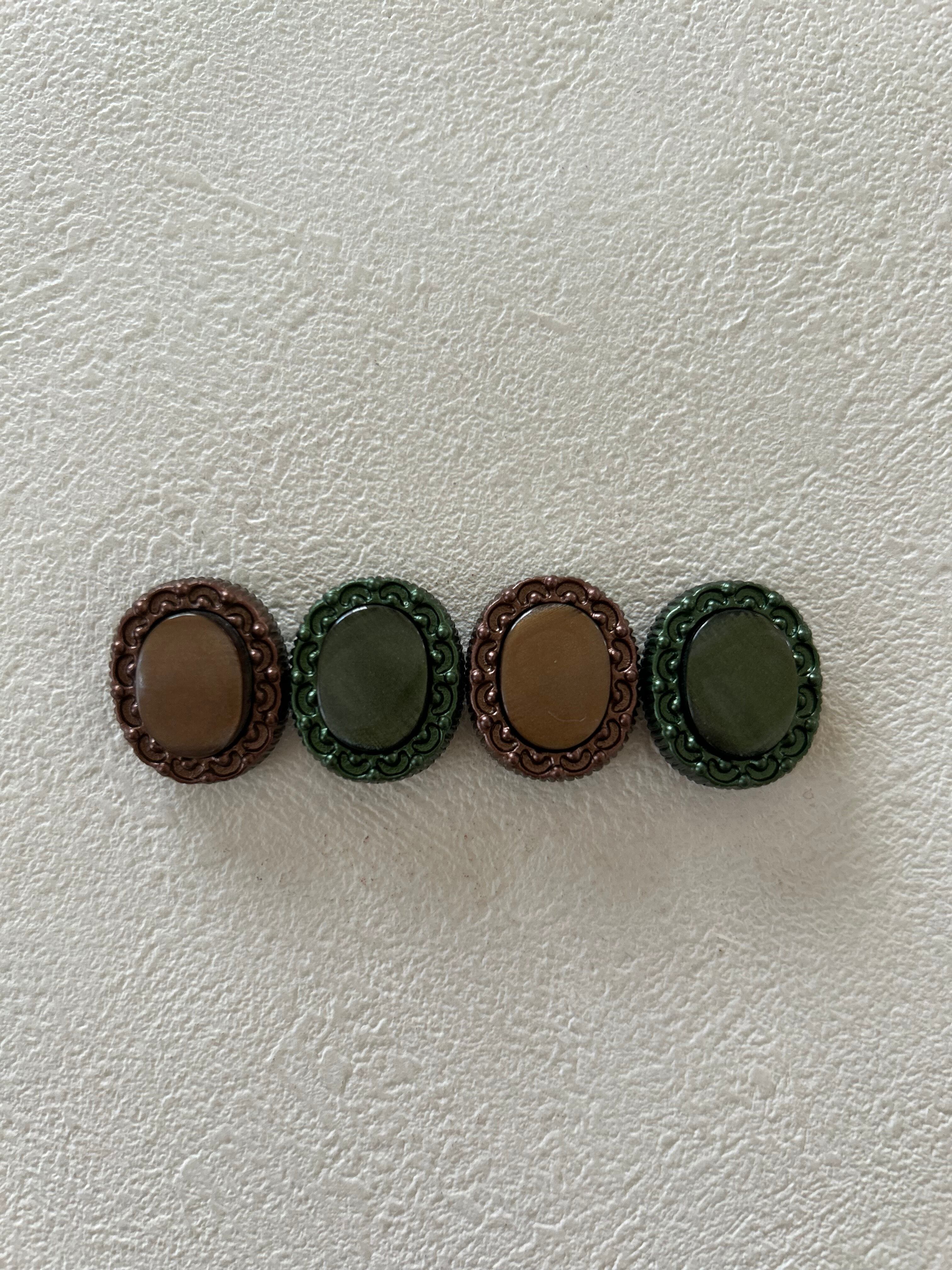 Japanese Vintage ボタン 22mm カボション オーバル型 グリーン/ブラウン アクセサリーパーツ 装飾材 カルトナージュ