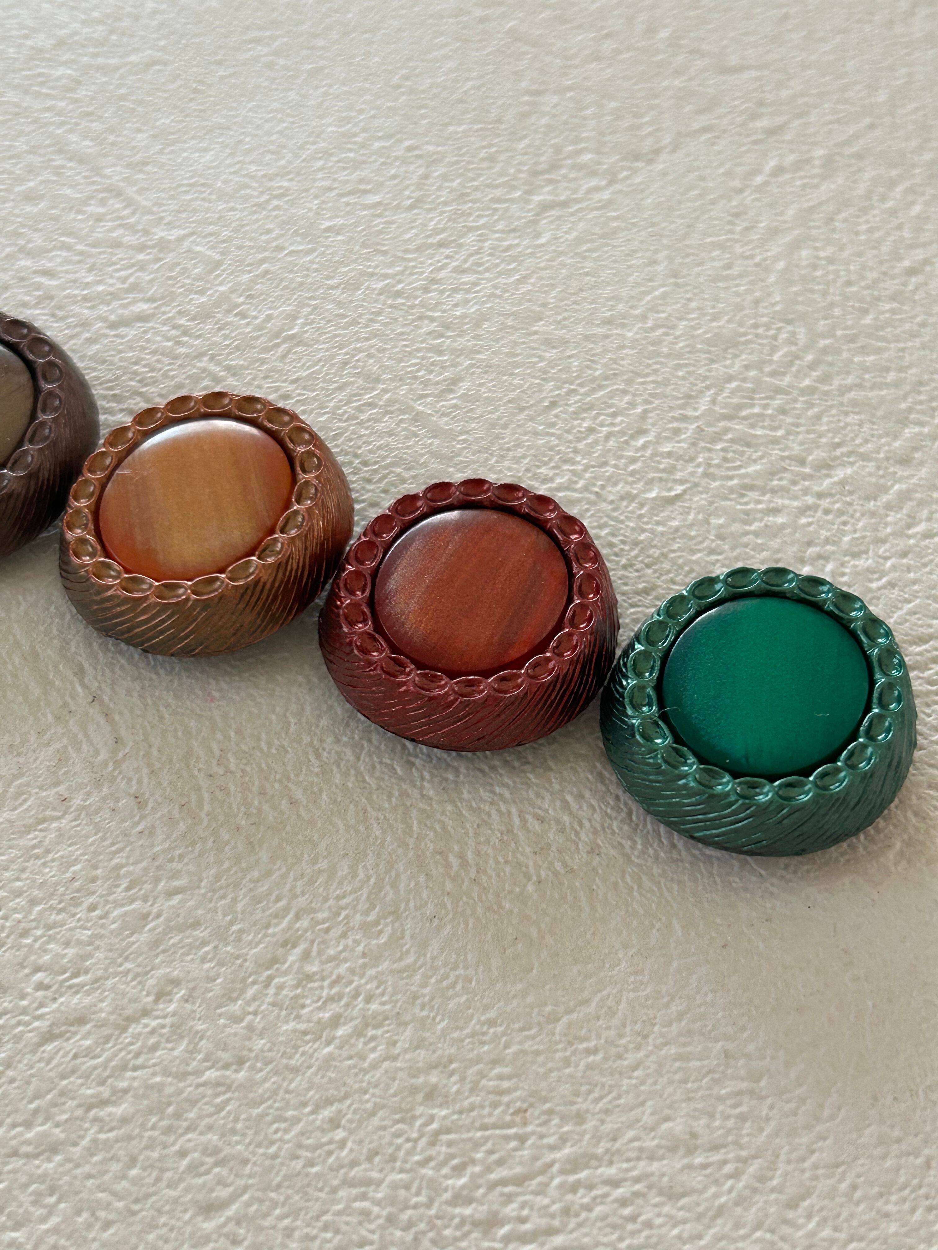 Japanese Vintage ボタン 24mm カボション オーバル型 グリーン/レッド/オレンジ/ブラウン/ブラック アクセサリーパーツ 装飾材 カルトナージュ