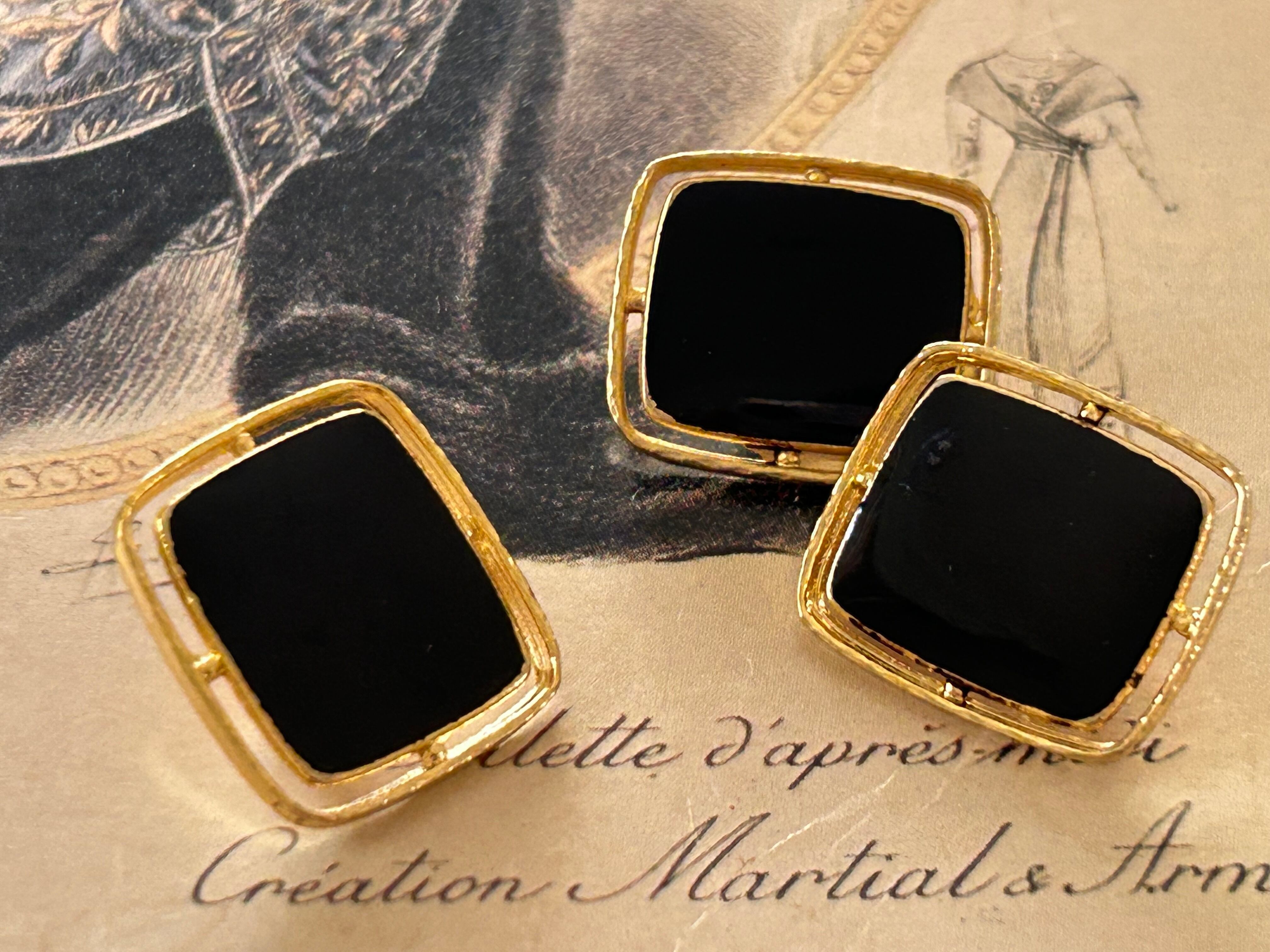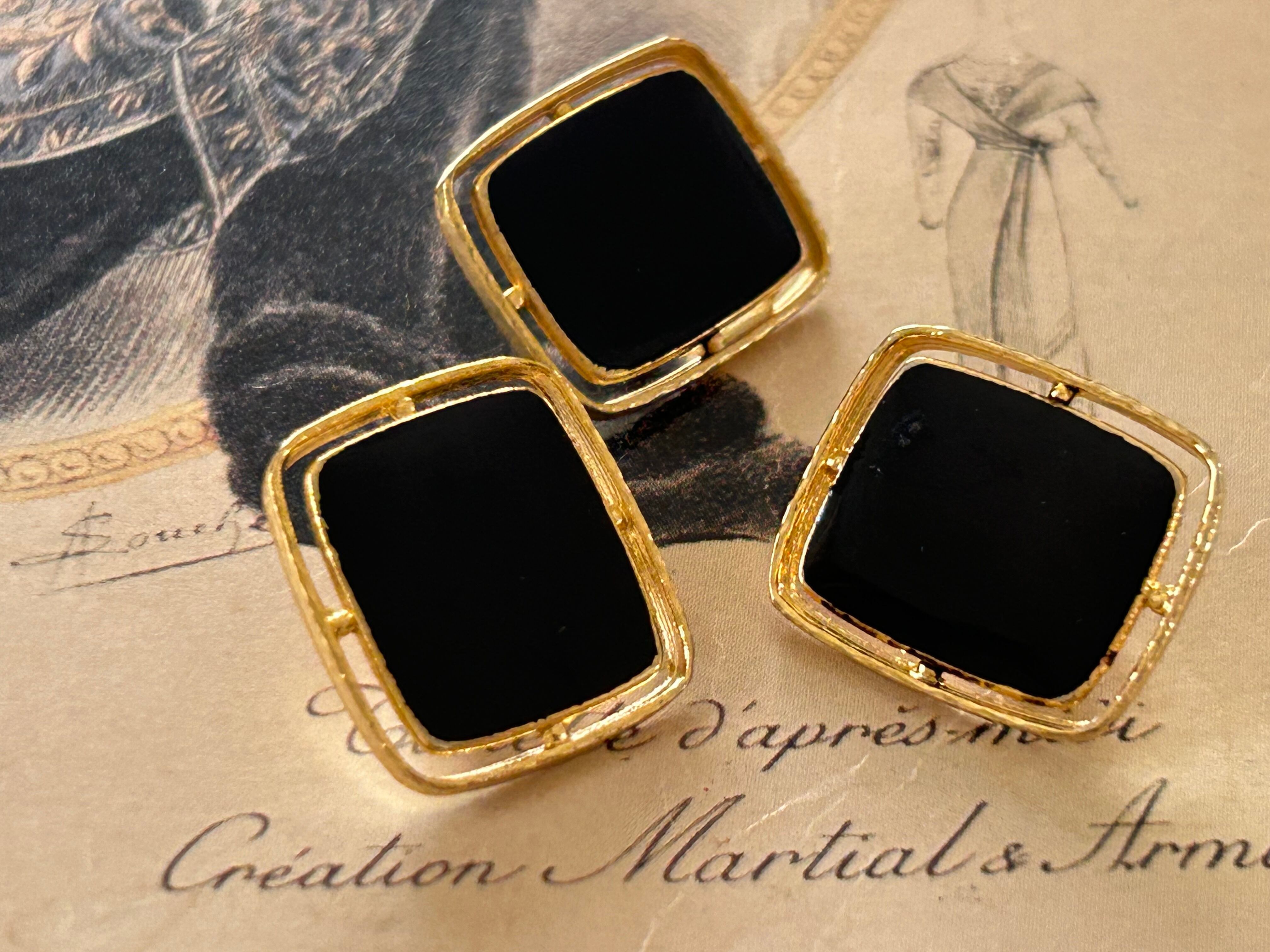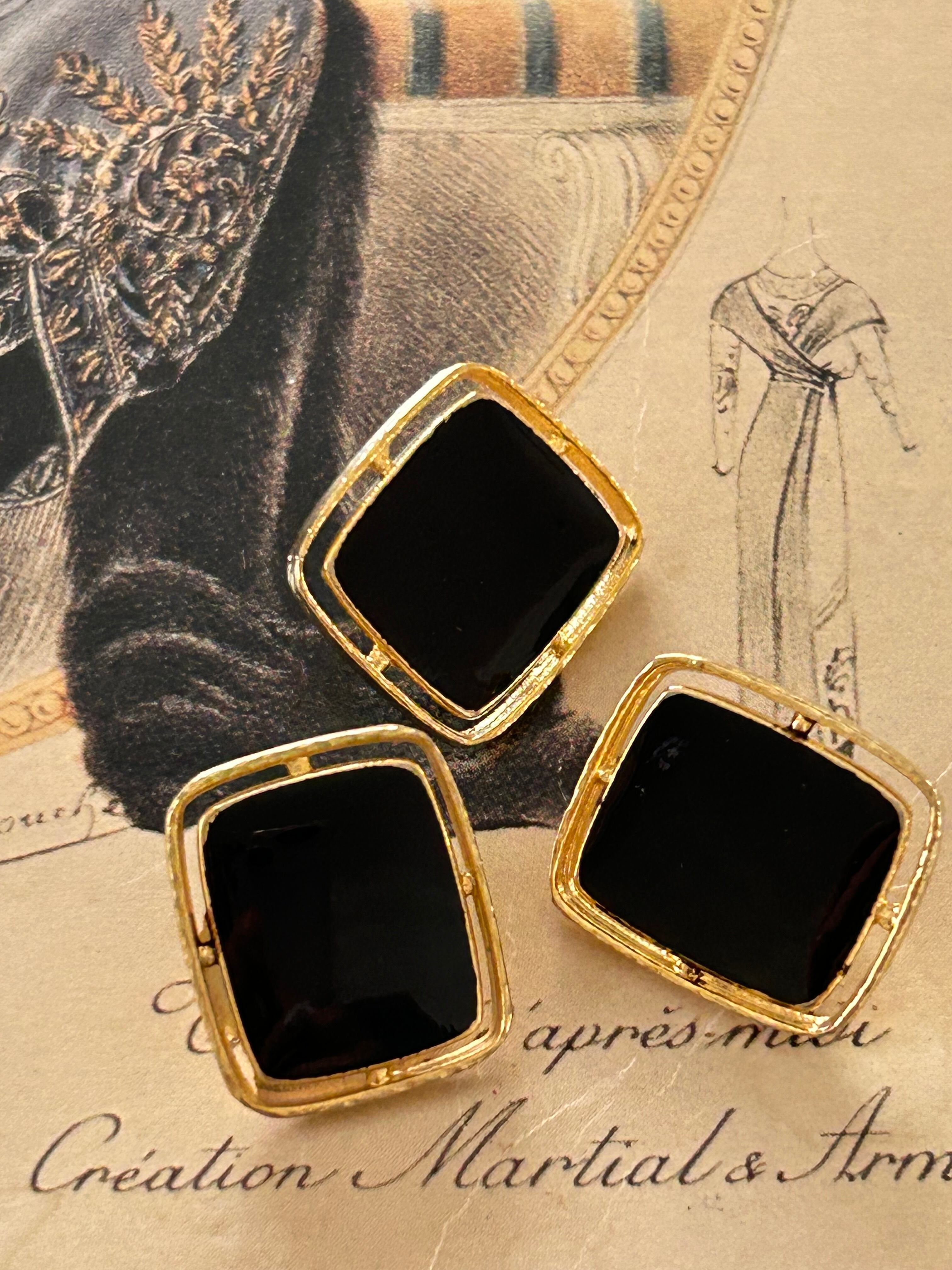 Japanese Vintage ボタン ブラック×ゴールド レクタング 昭和レトロ アクセサリーパーツ 装飾材 カルトナージュ