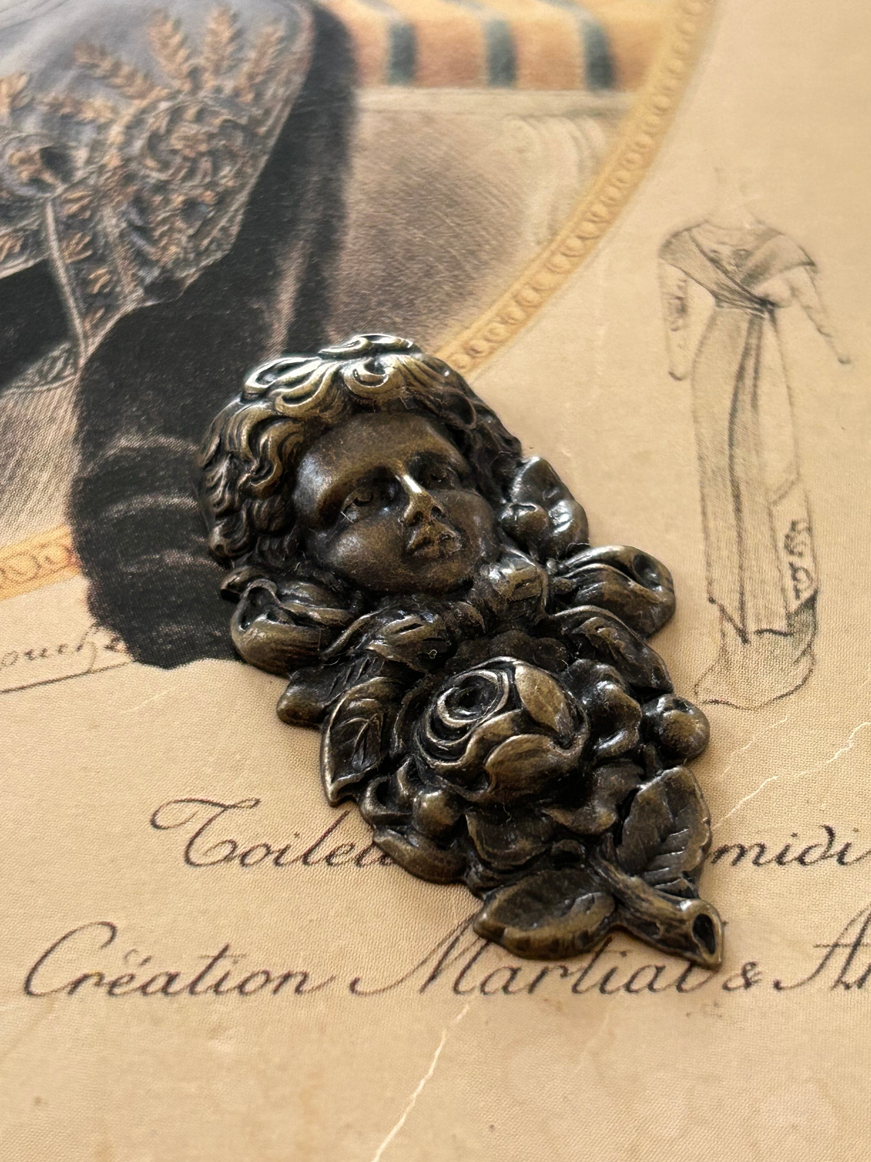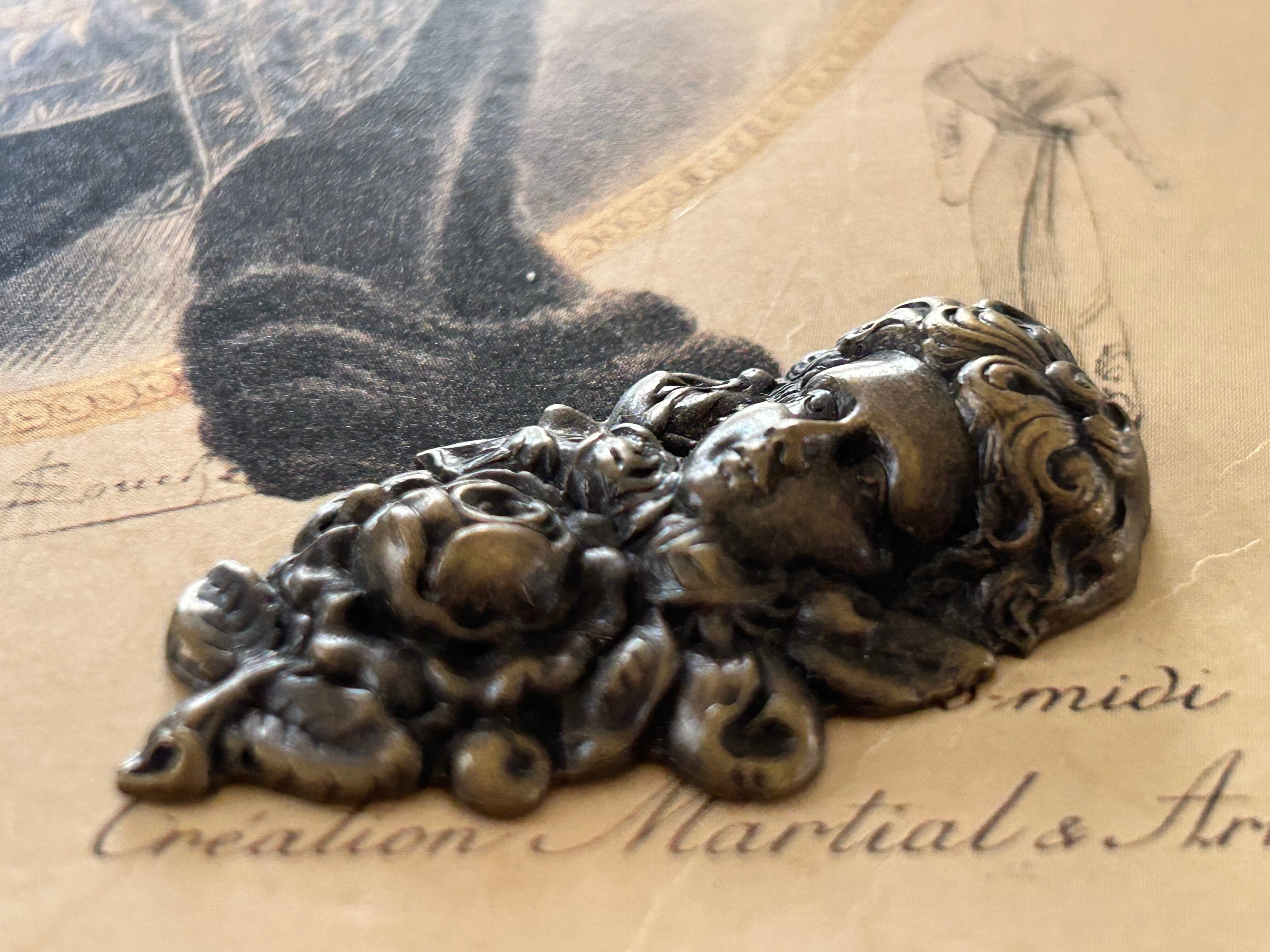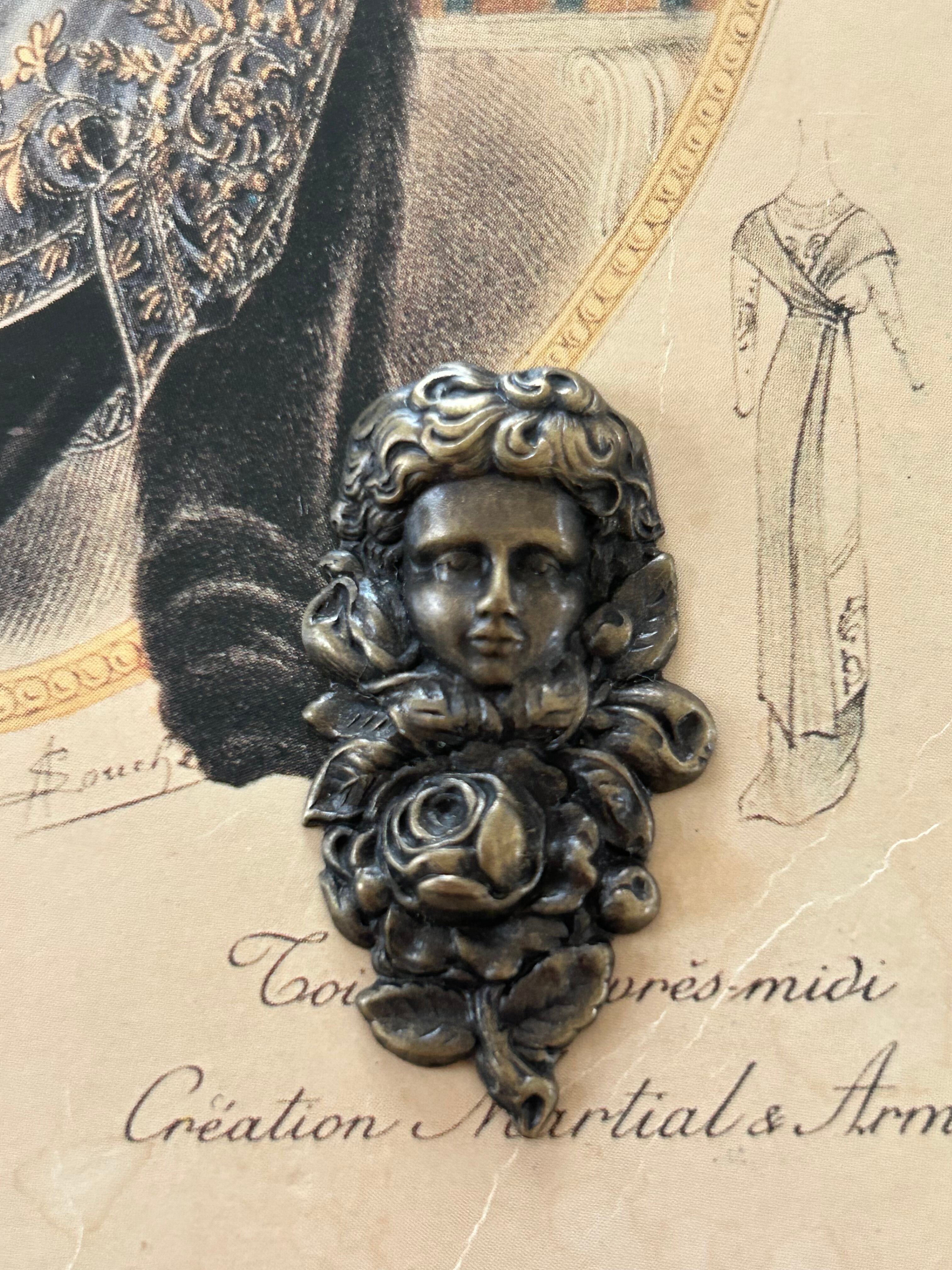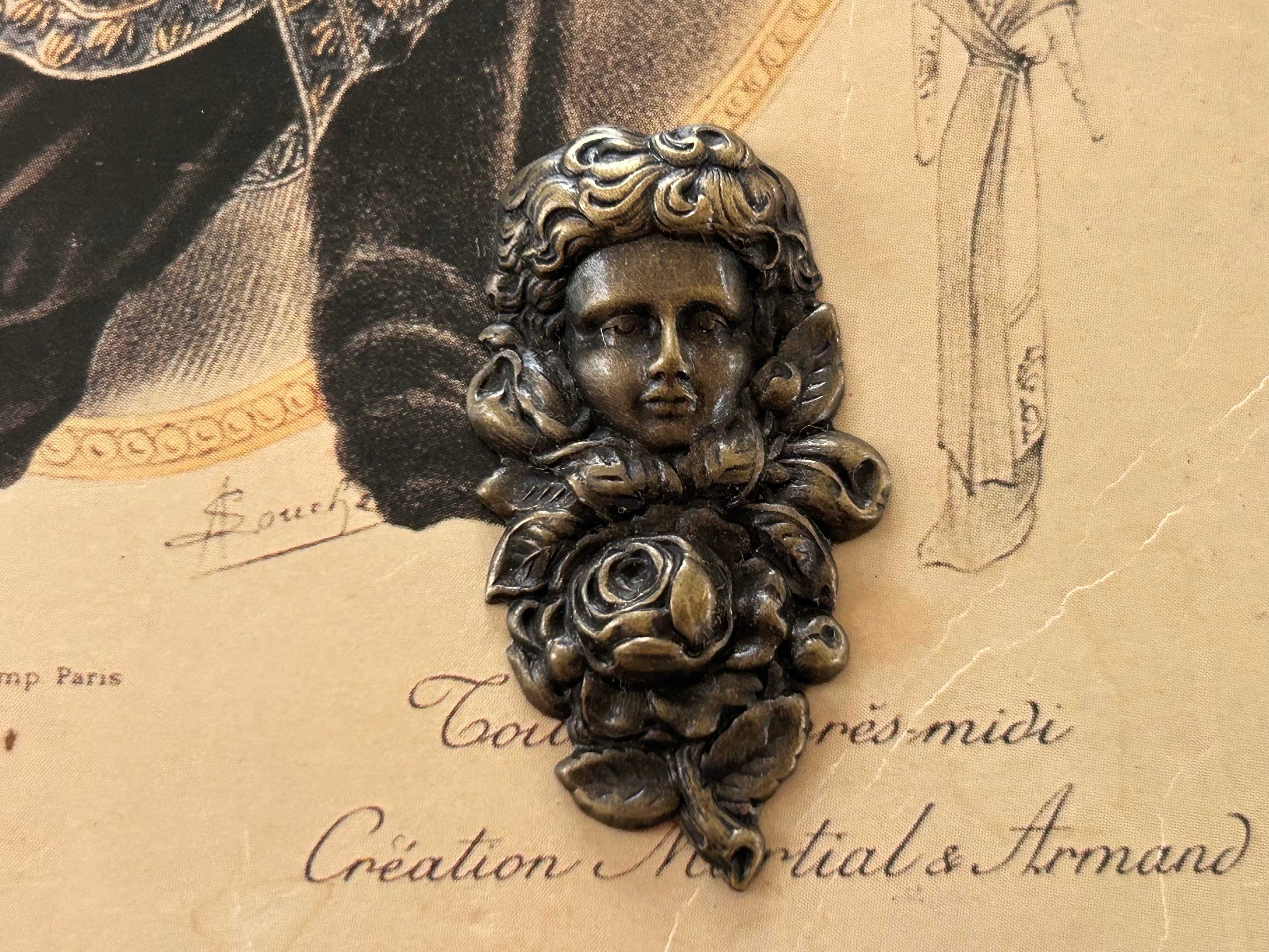 真鍮製のクラシカルでアンティーク調なRoseと人物のスタンピングパーツです。