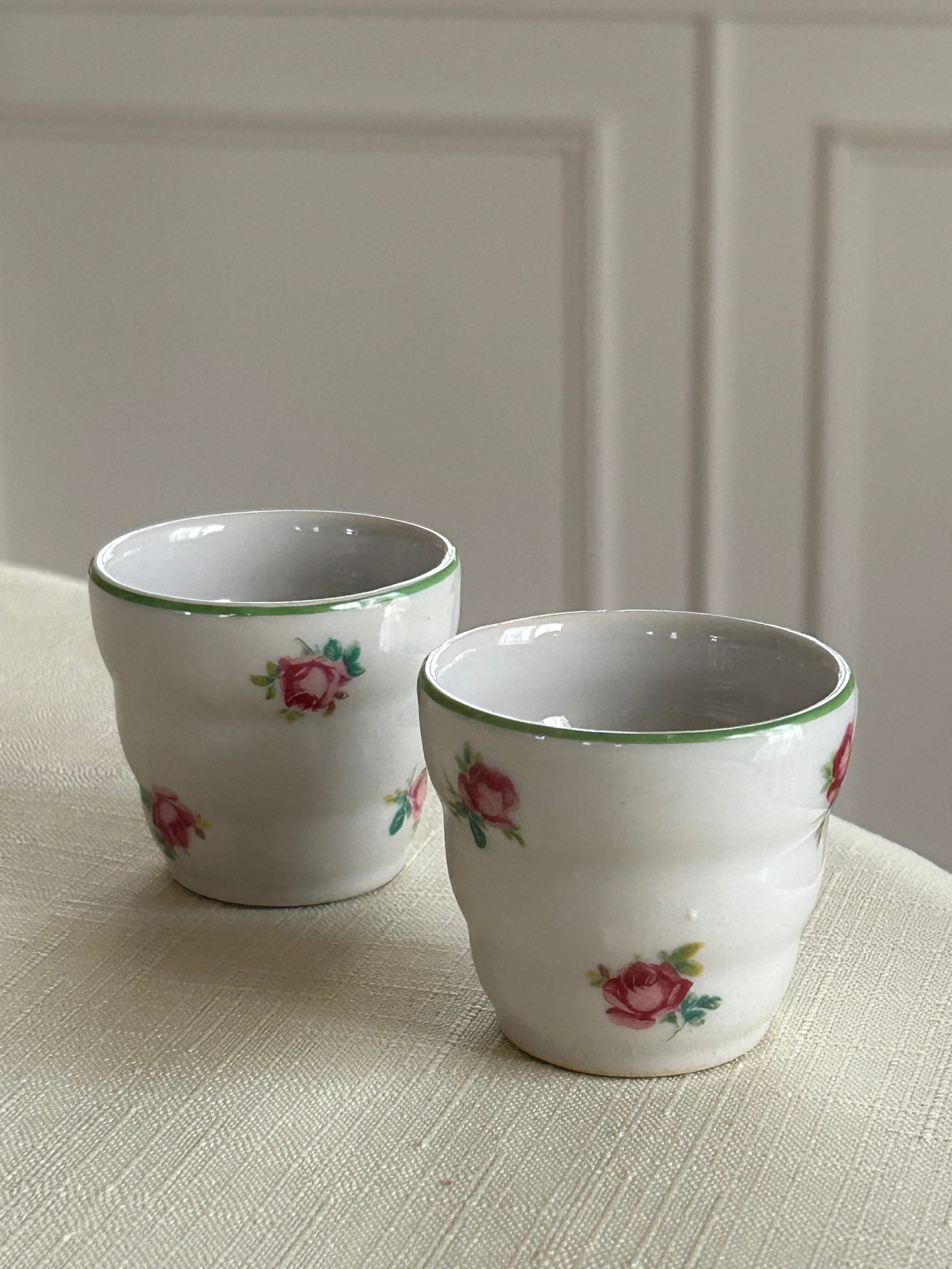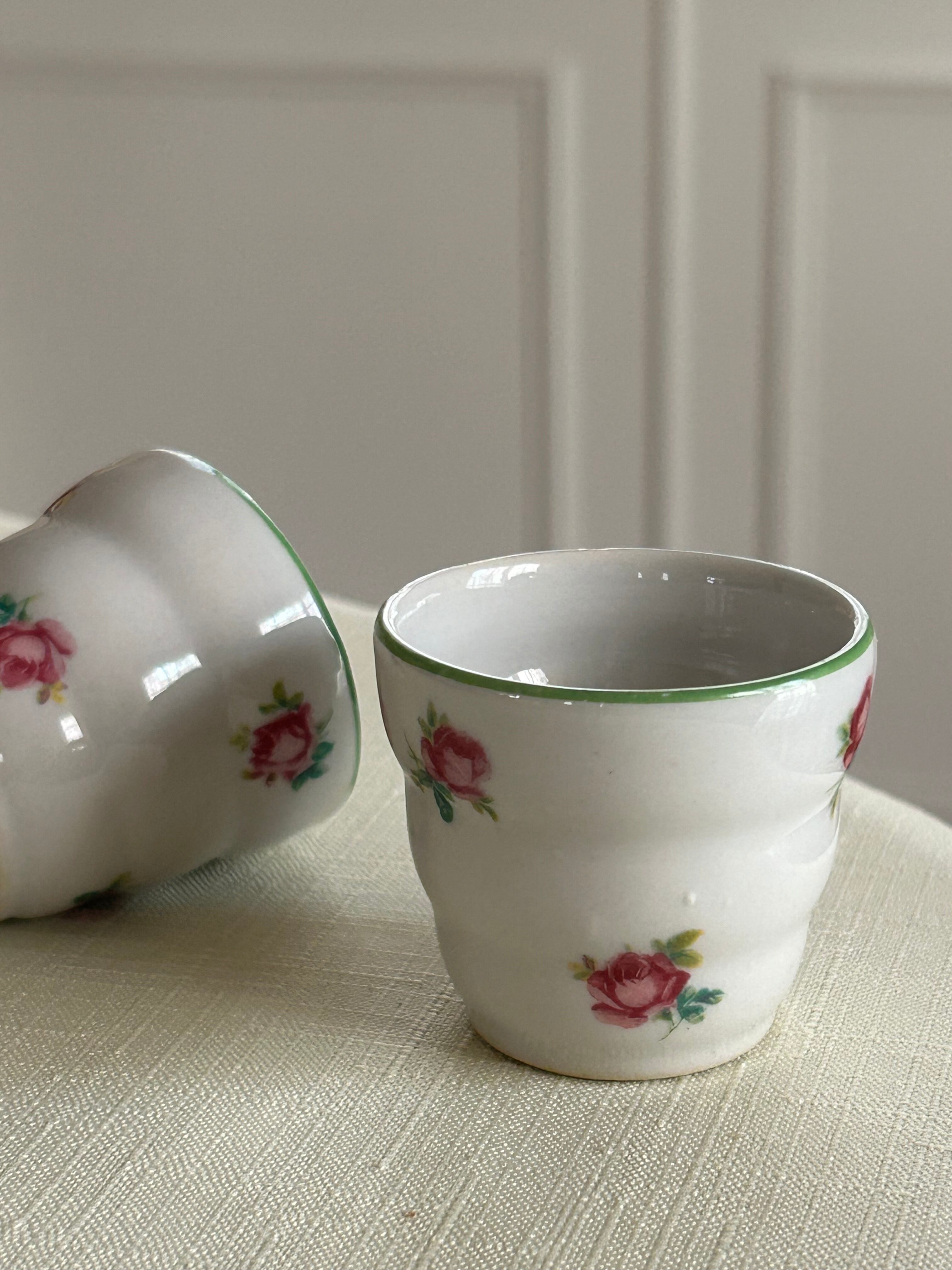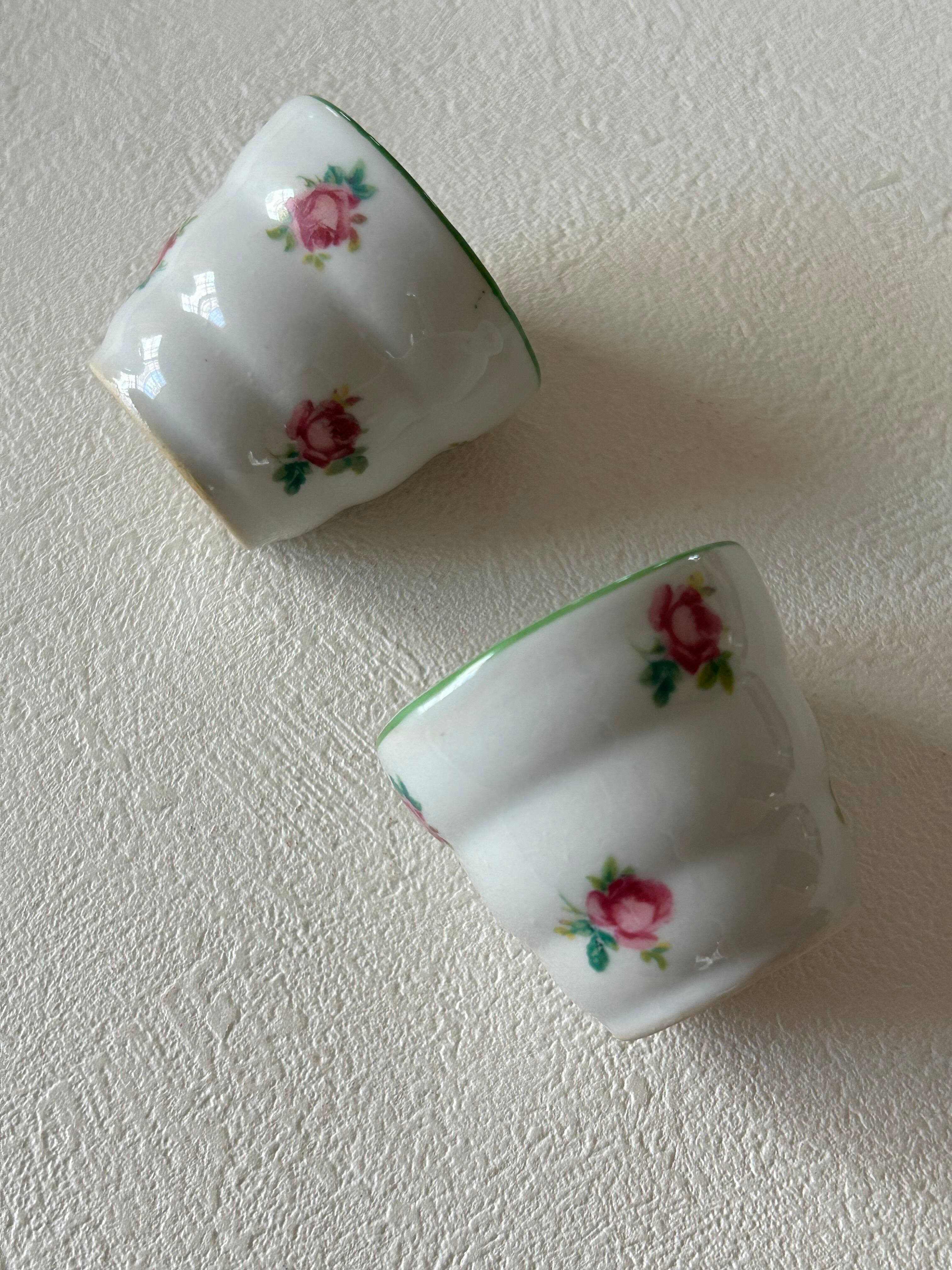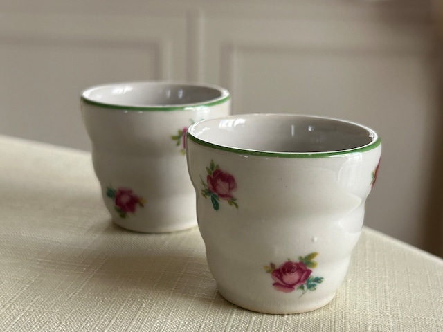 フランスVintage リキュールグラス 陶器製 Rose 薔薇 小花柄 フラワーベース インテリア 撮影小物 インテリア小物