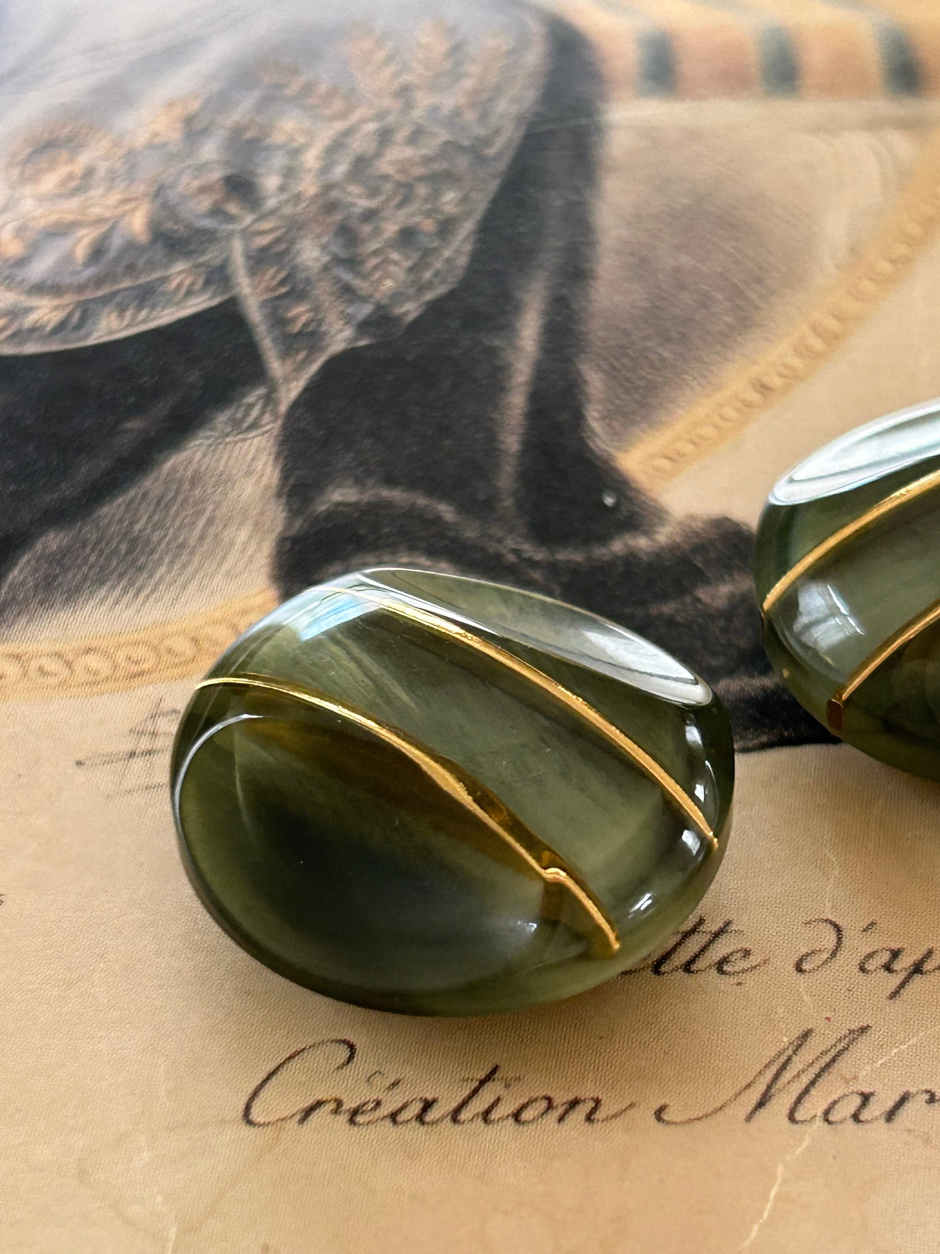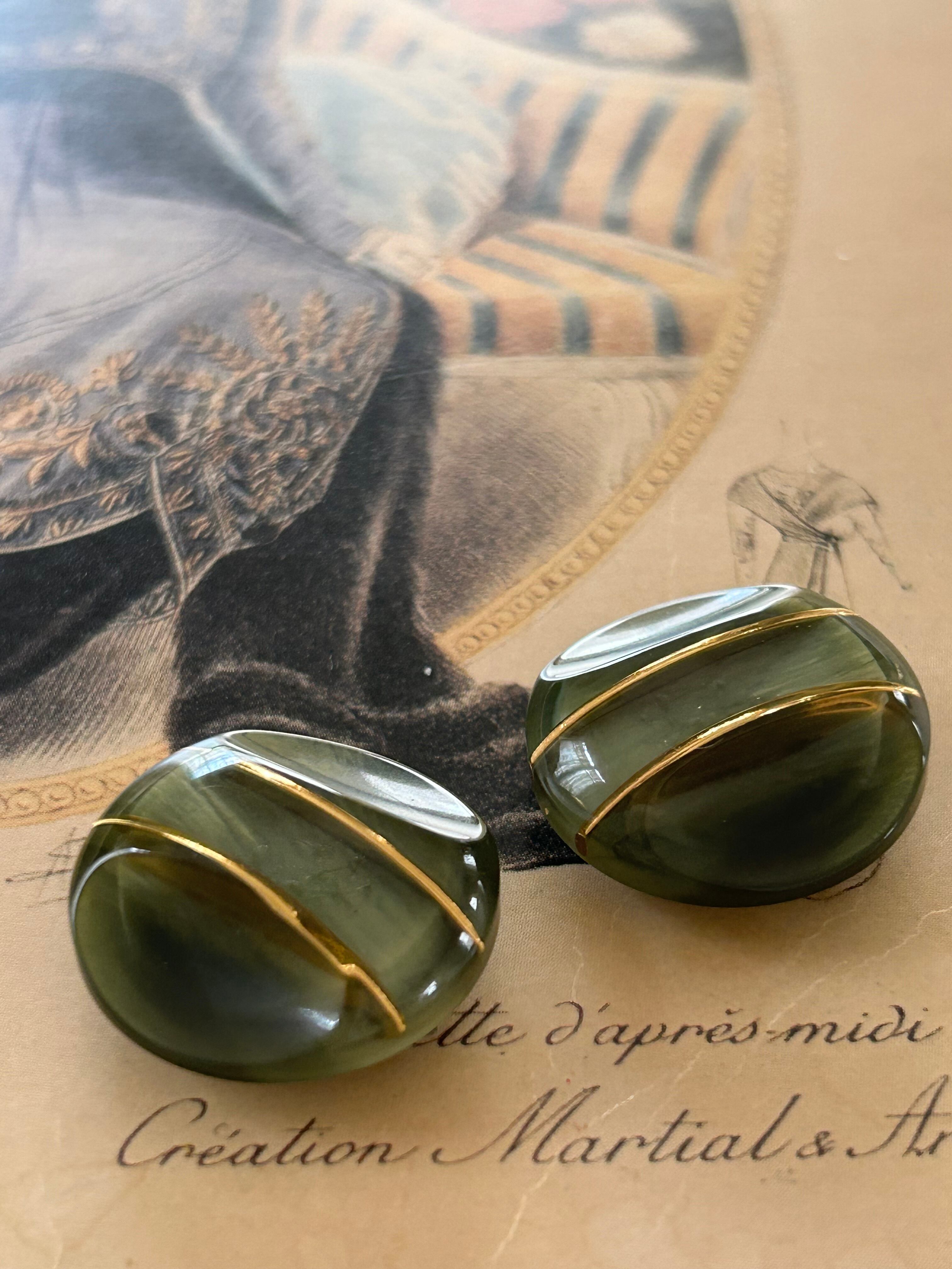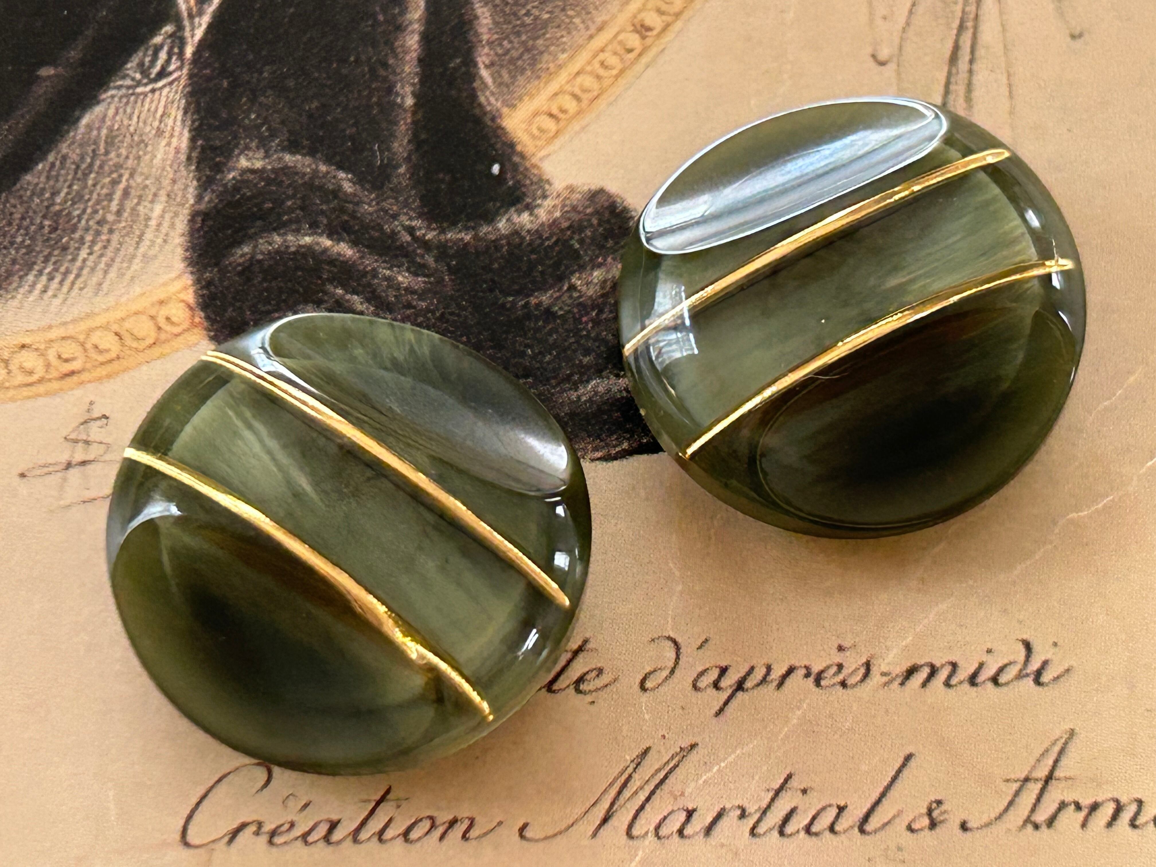Japanese Vintageボタン グリーン系×ゴールド マーブル調 22mm アクセサリーパーツ デコレーション材