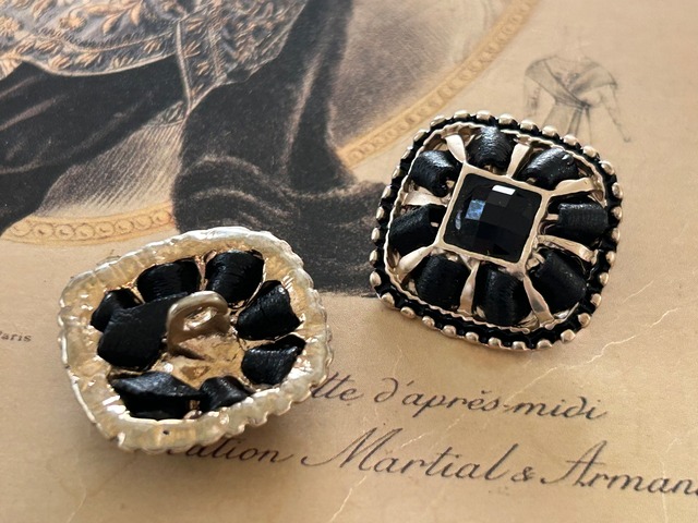 素 材: メタル×ビジュー×レザー調リボン