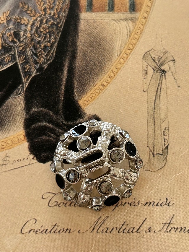 輸入デザインボタン メタル×ストーン シルバー ドーム型 アクセサリーパーツ デコレーション材 カルトナージュ 飾りボタン エレガント