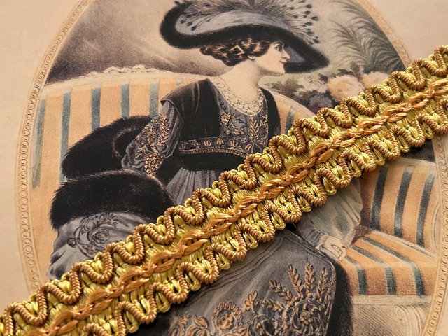 フランスVintage ブレード イエローゴールド 22mm カルトナージュ カットブレード 93cm デコレーション材 ヴィンテージブレード