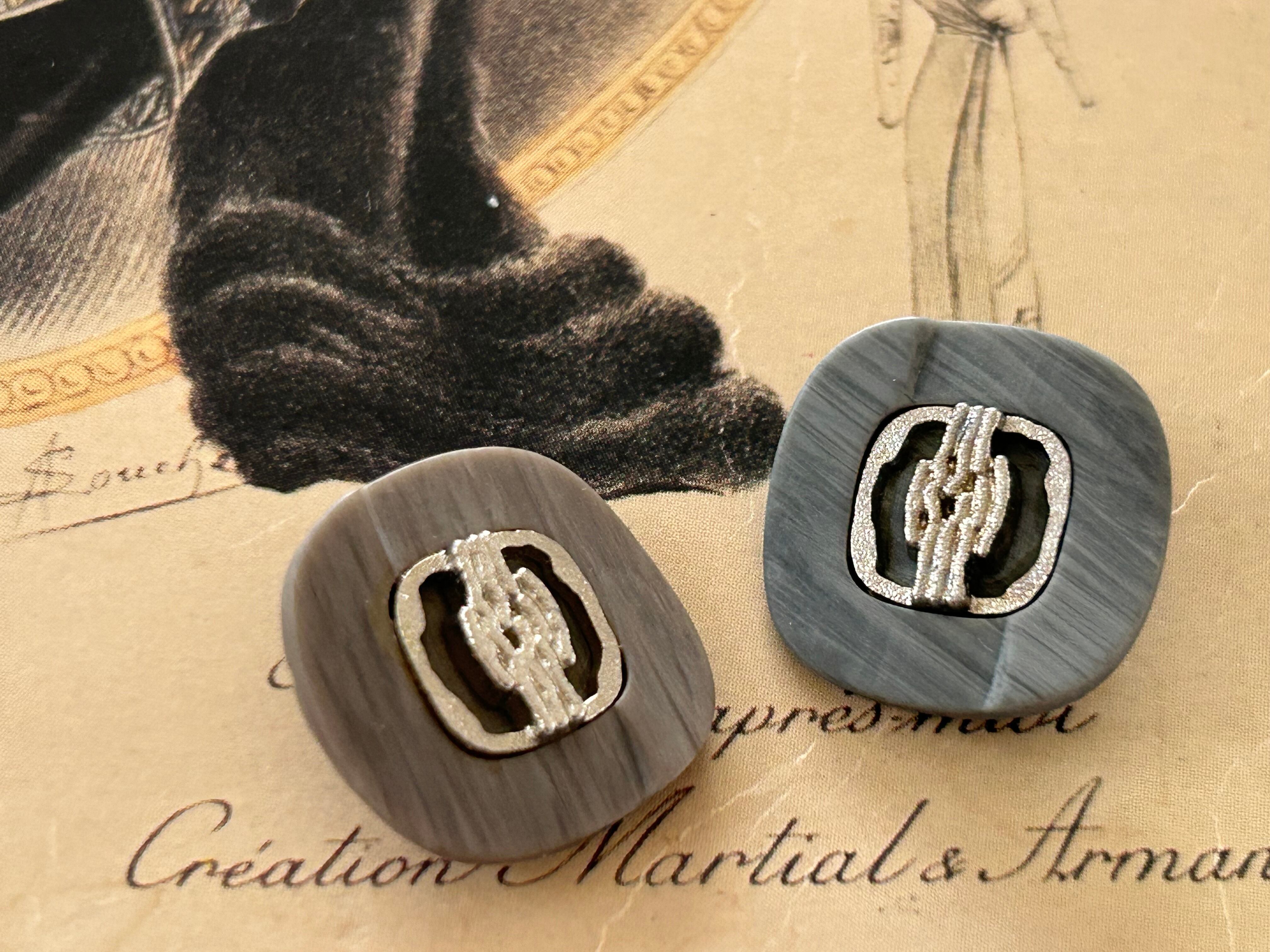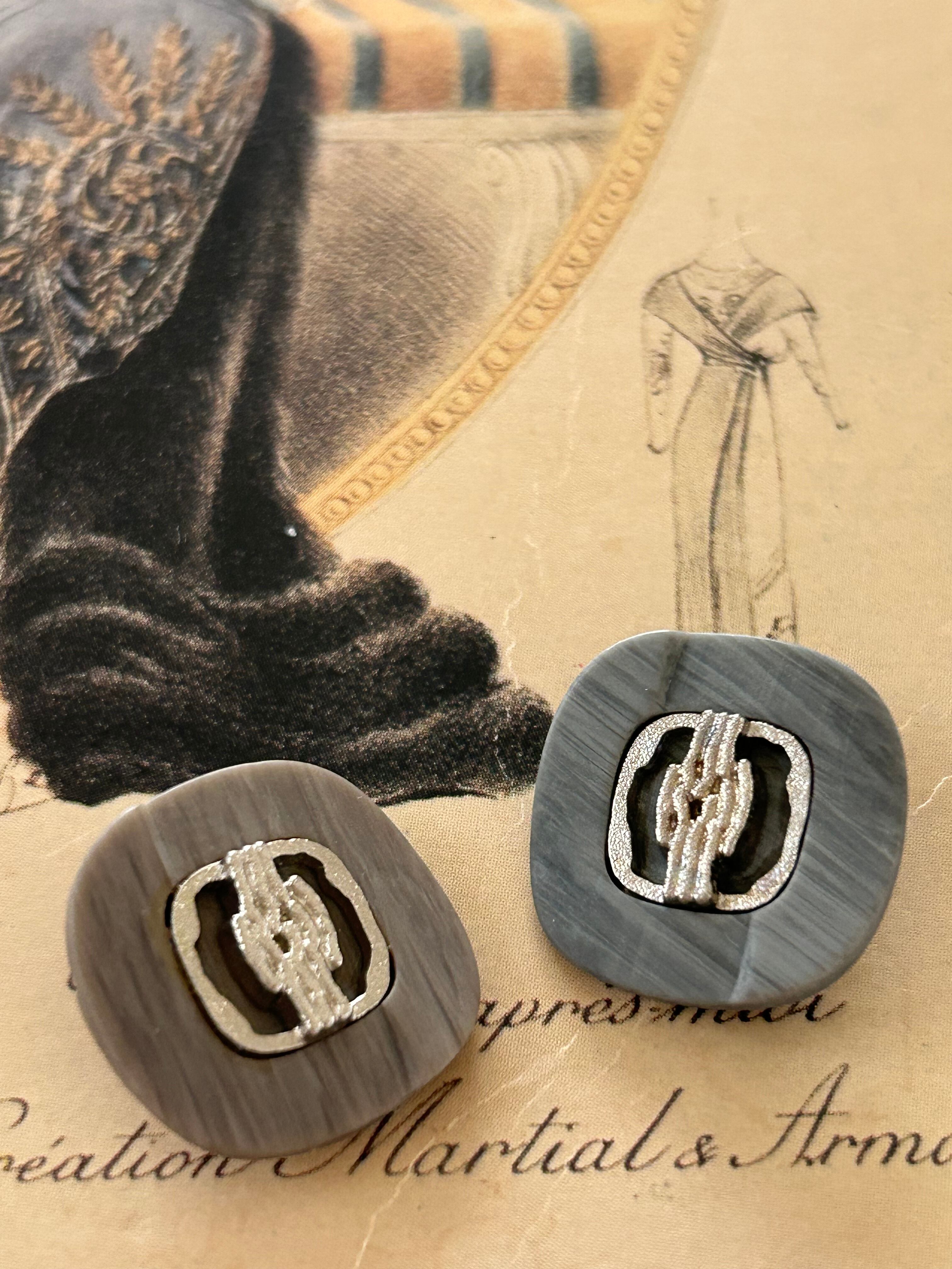 Japanese Vintage ボタン 角なしスクウェア グレー/ベージュ シルバー 石調 18mm 昭和レトロ アクセサリーパーツ 装飾材 カルトナージュ
