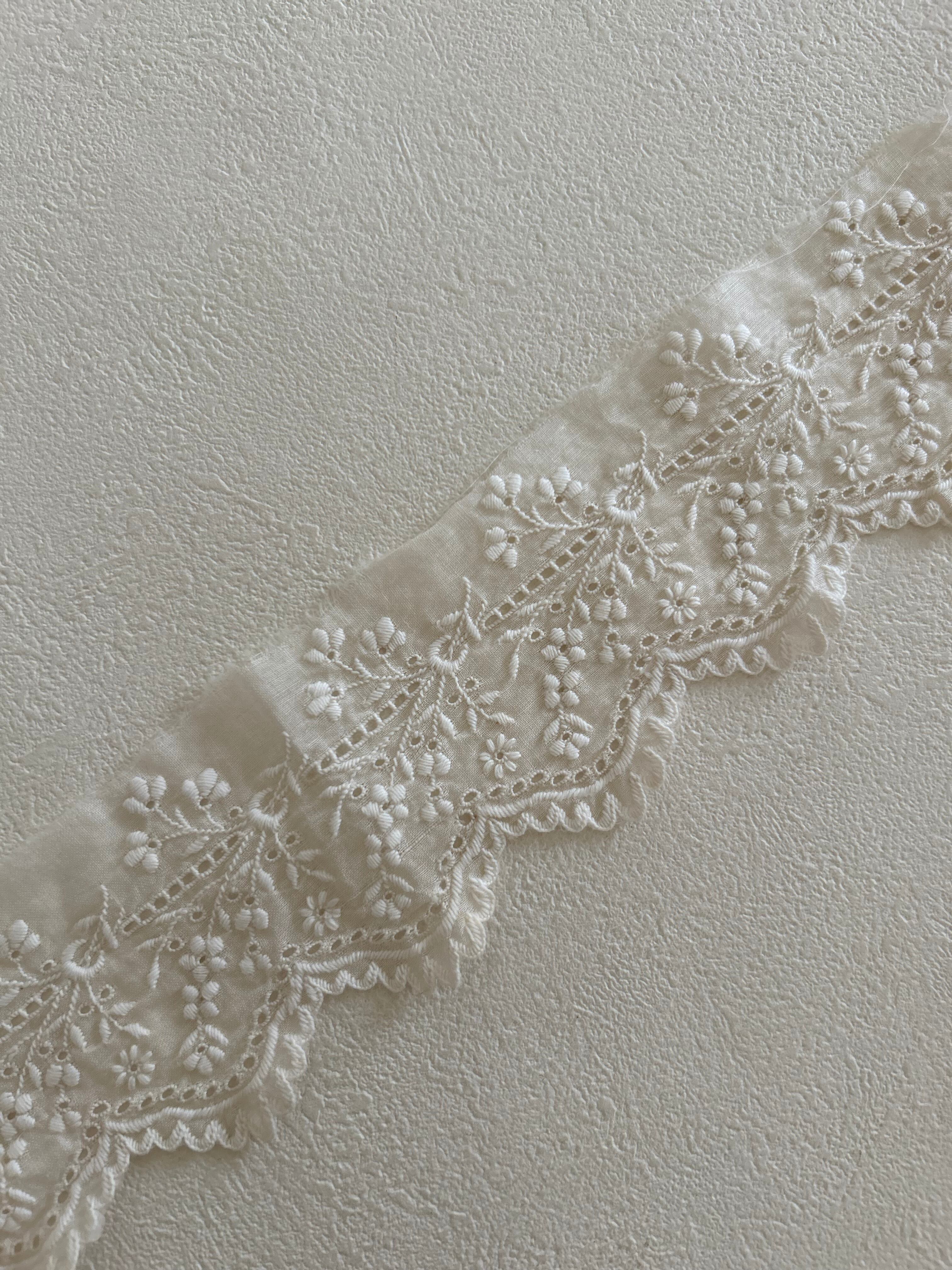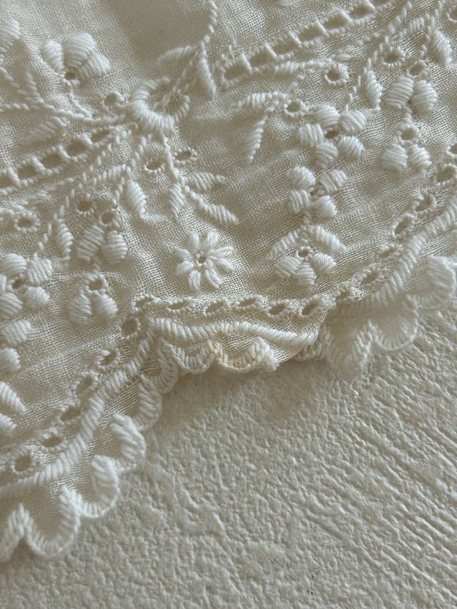 大変繊細で美しい手仕事のカットワーク刺繍レースです。