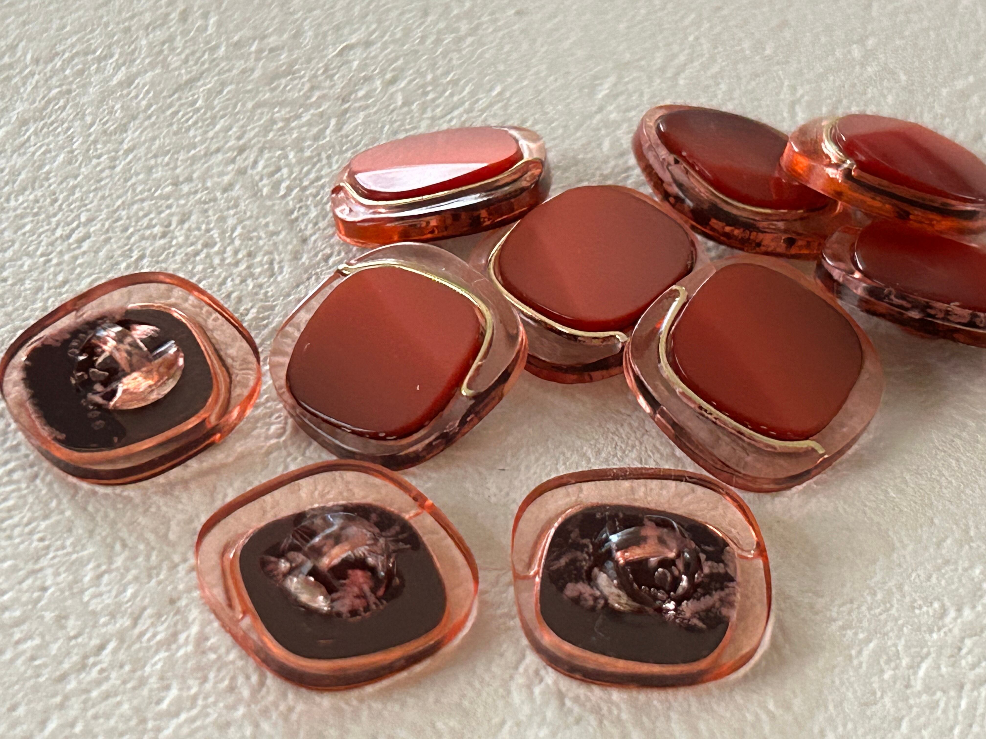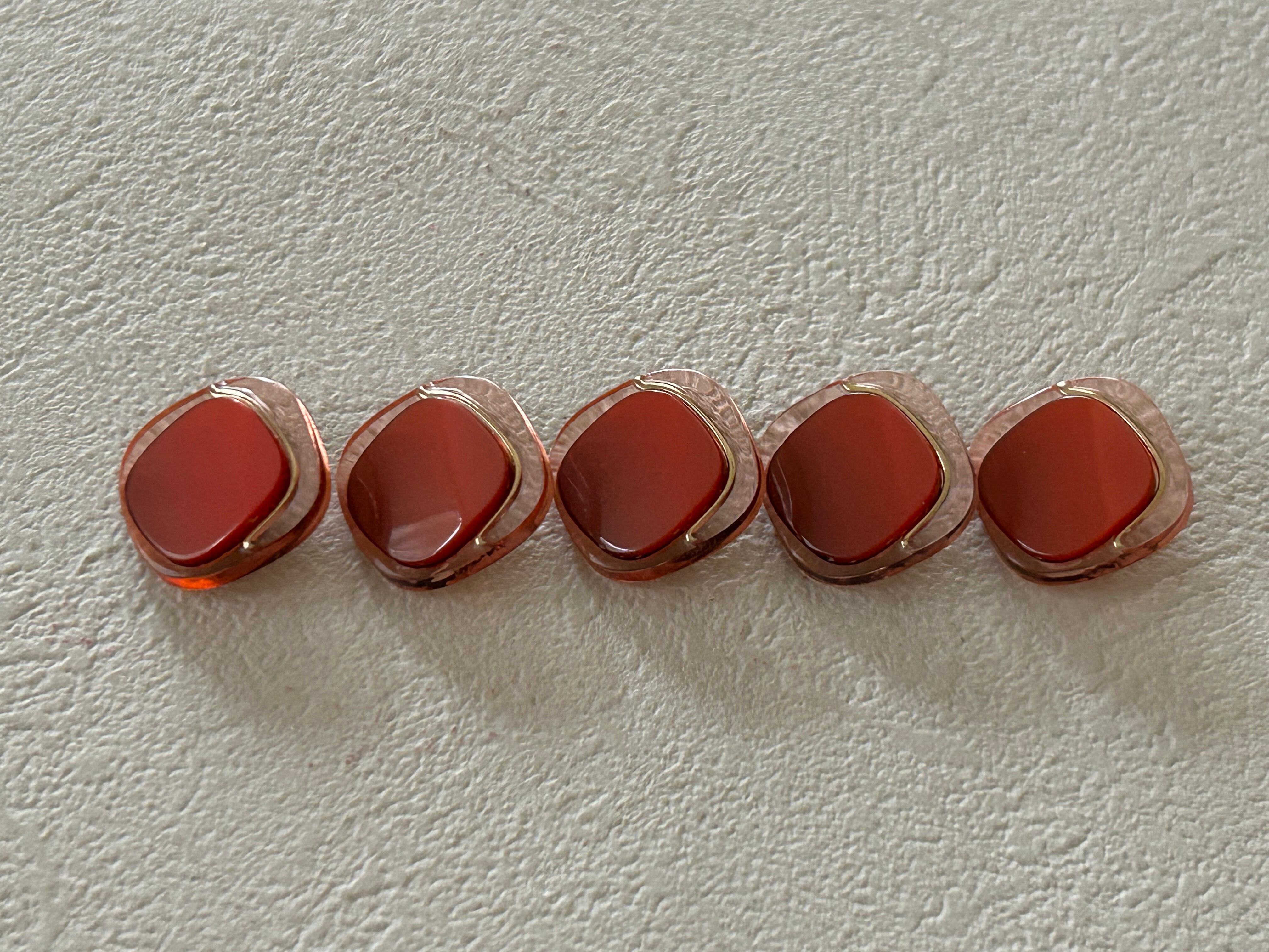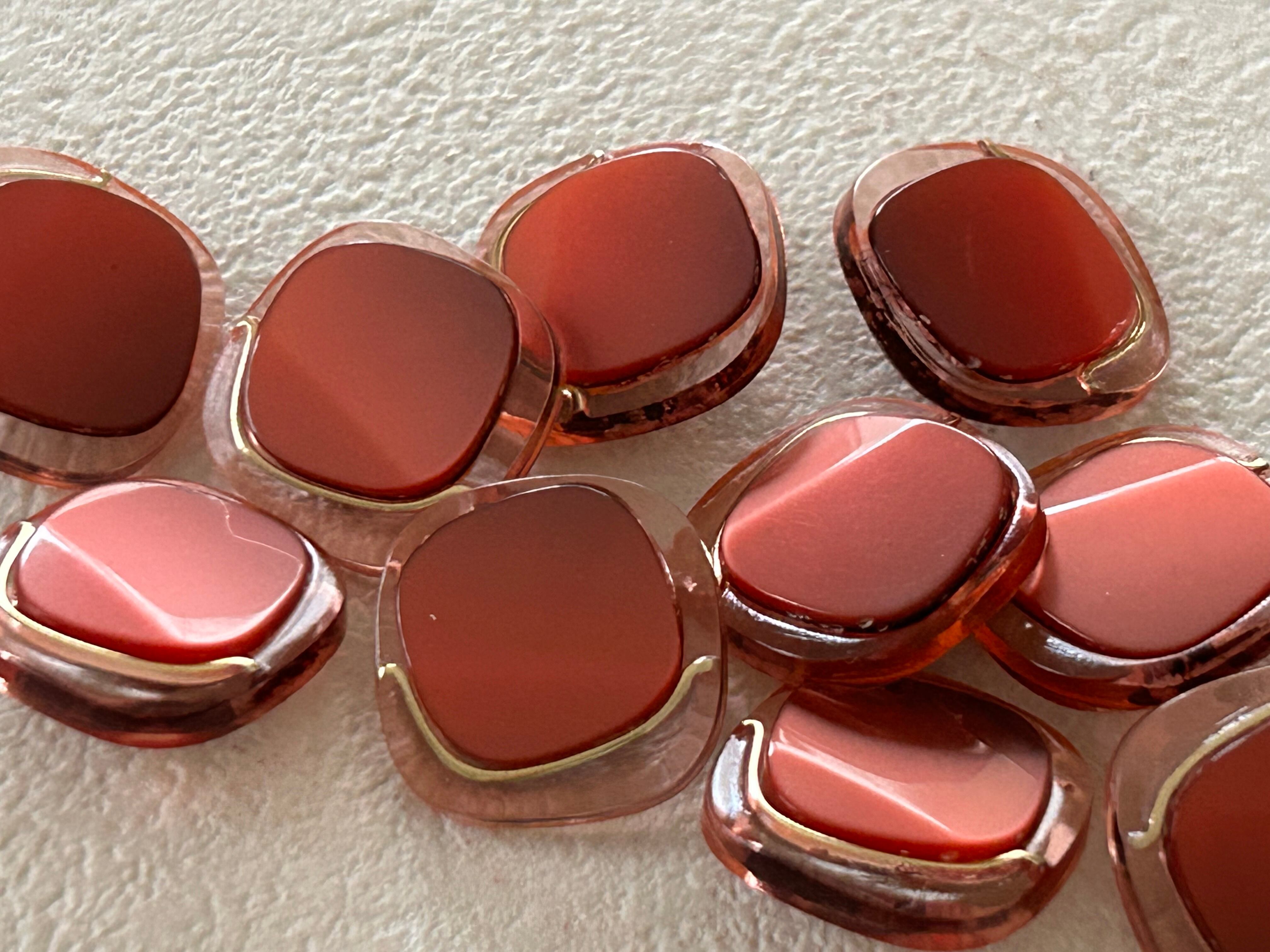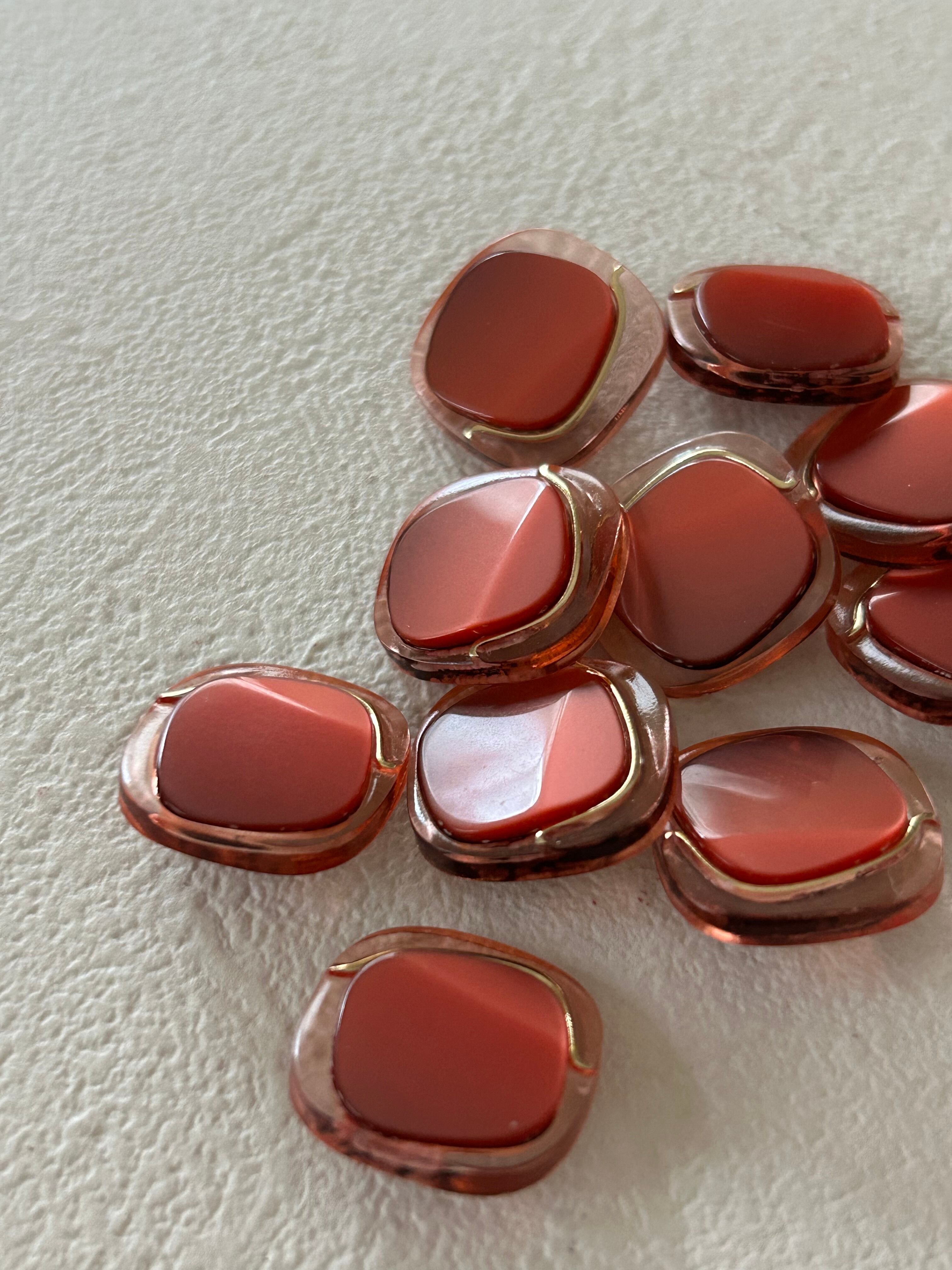 Japanese Vintage ボタン 角なしスクウェア レッド グラデーション 16mm 昭和レトロ アクセサリーパーツ 装飾材 カルトナージュ