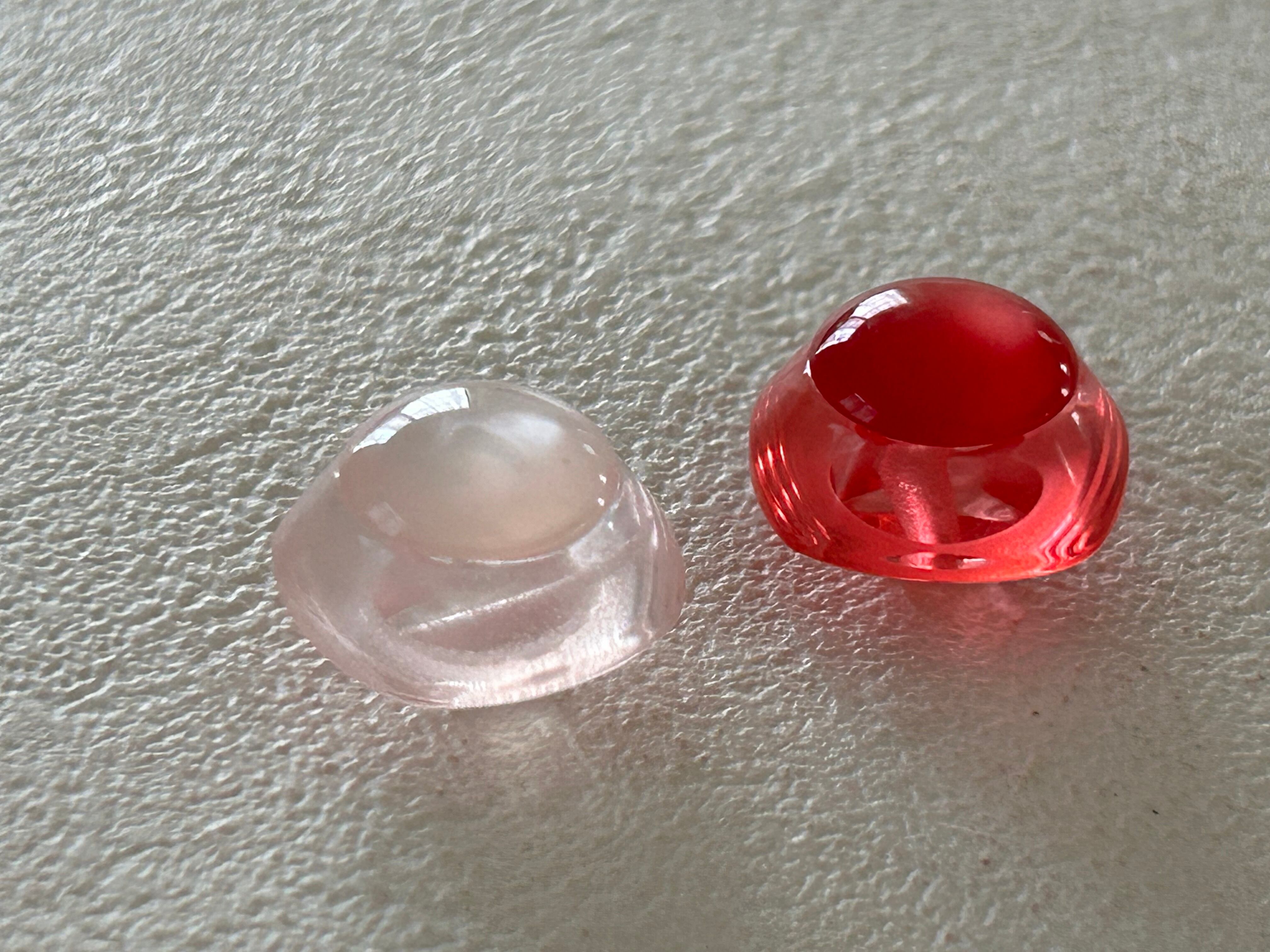 色付きのクリアカラーの台座のトップに艶やかに輝くカボションが設置されています。