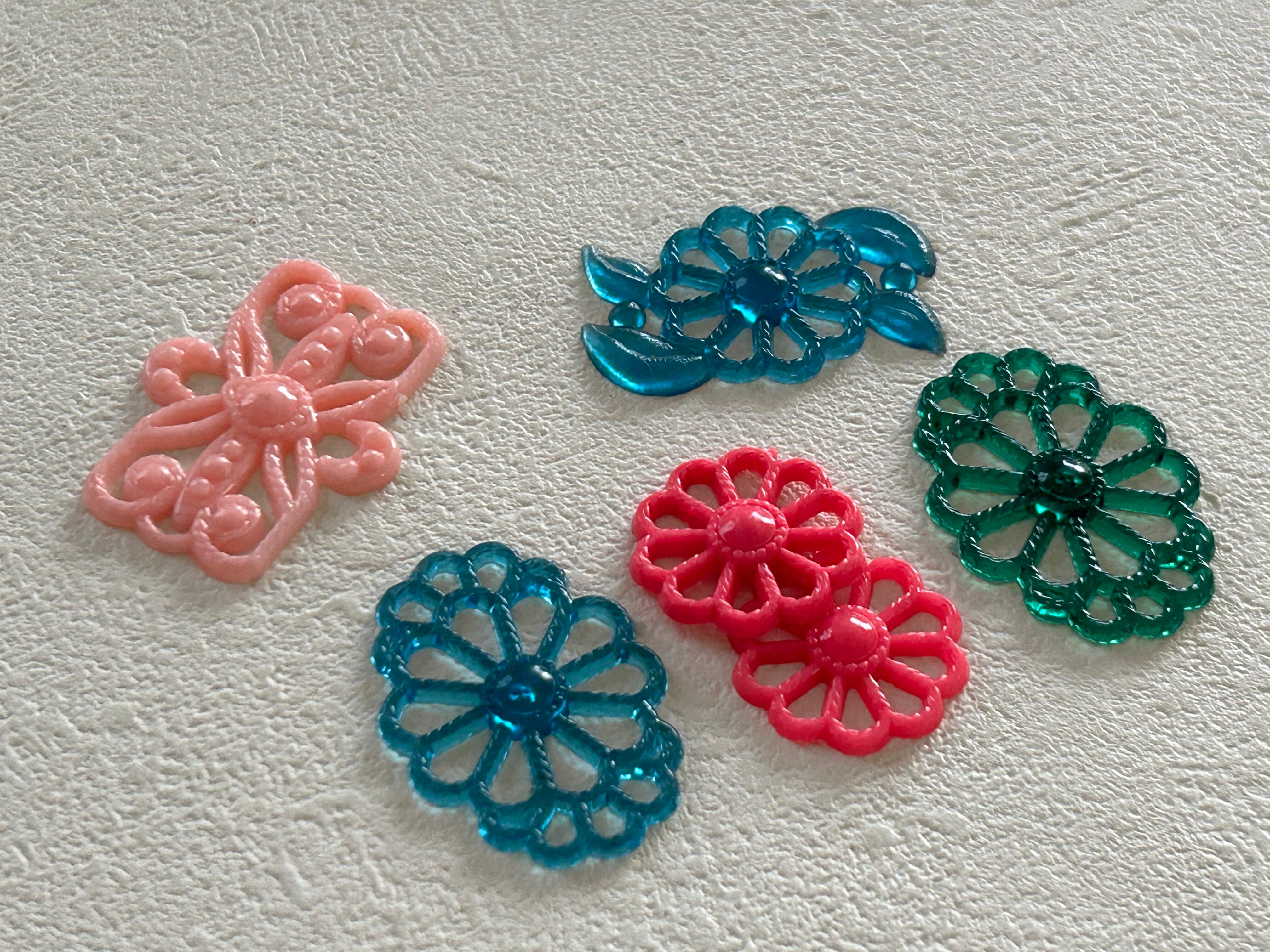 フランスVintage ヴィンテージパーツ 透かしパーツ 6個セット プラスチック チャーム アクセサリーパーツ デコレーション材
