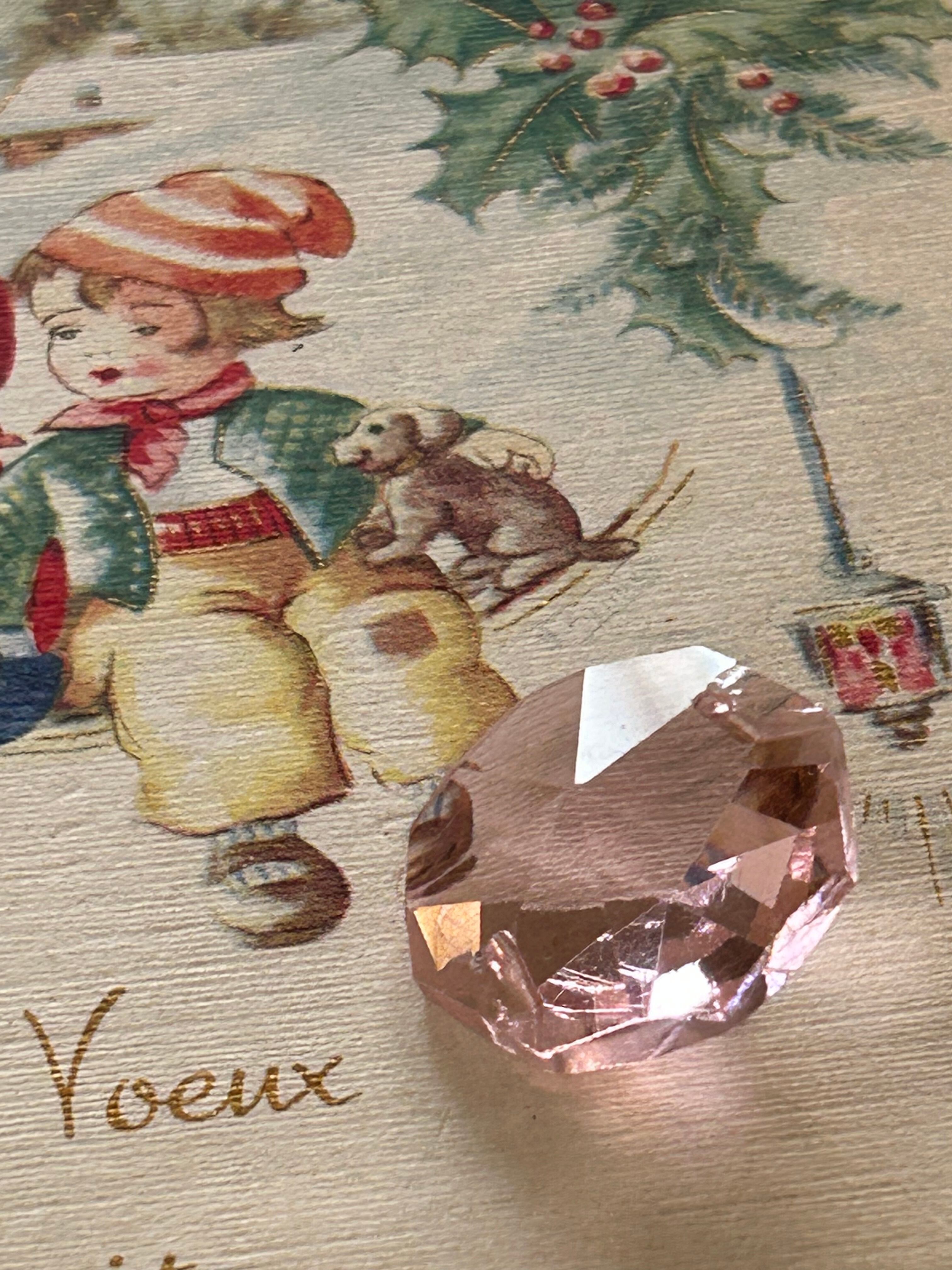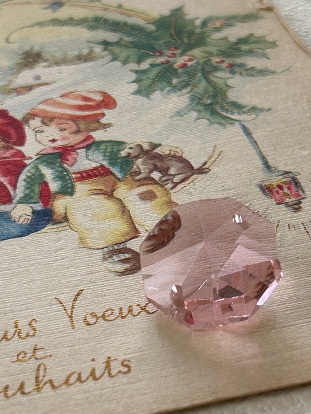 英国Vintage シャンデリアパーツ サンキャッチャー ピンク ガラス カットガラス インテリア小物 オブジェ