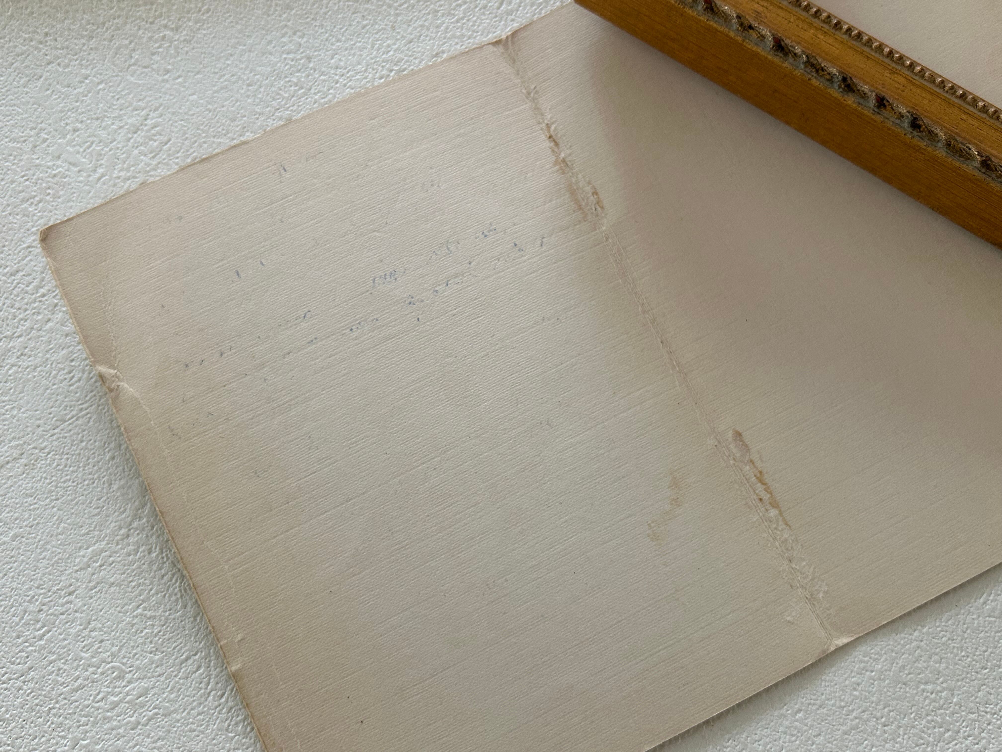 内側にメッセージを書く薄紙があったのかもしれません。見開きの台紙のみとなります。