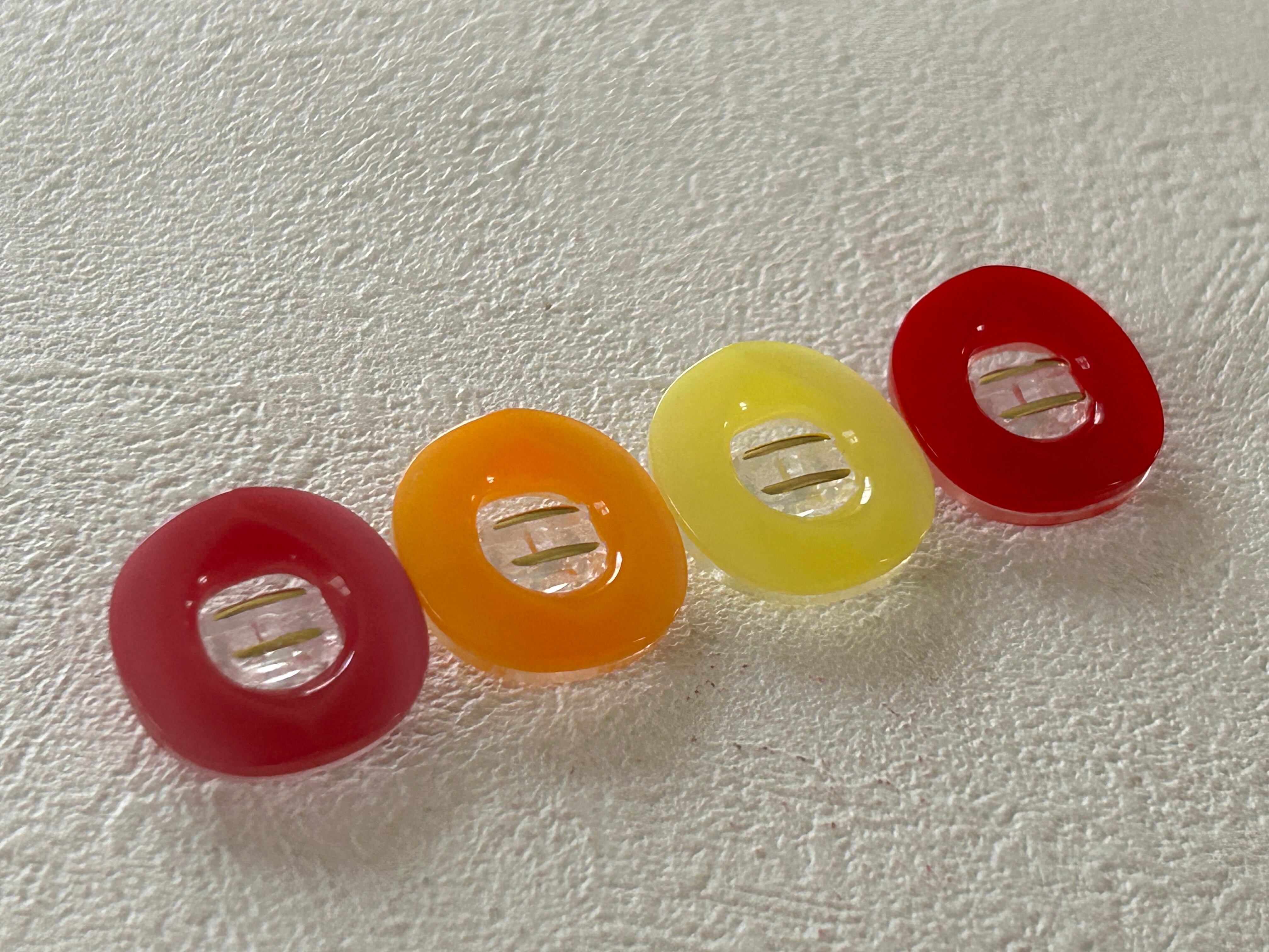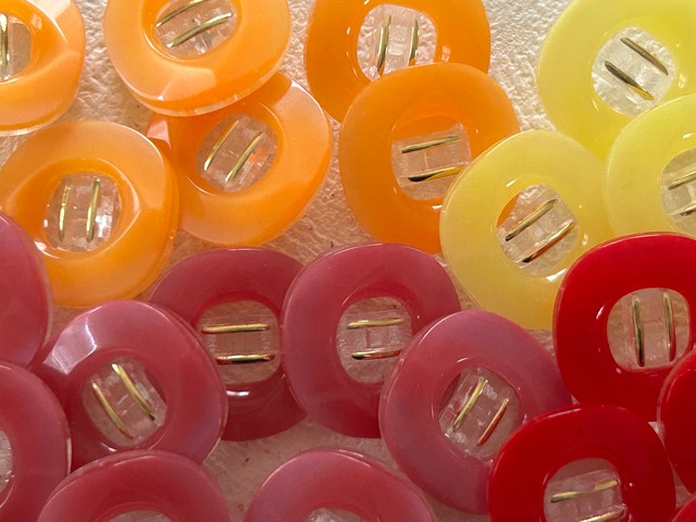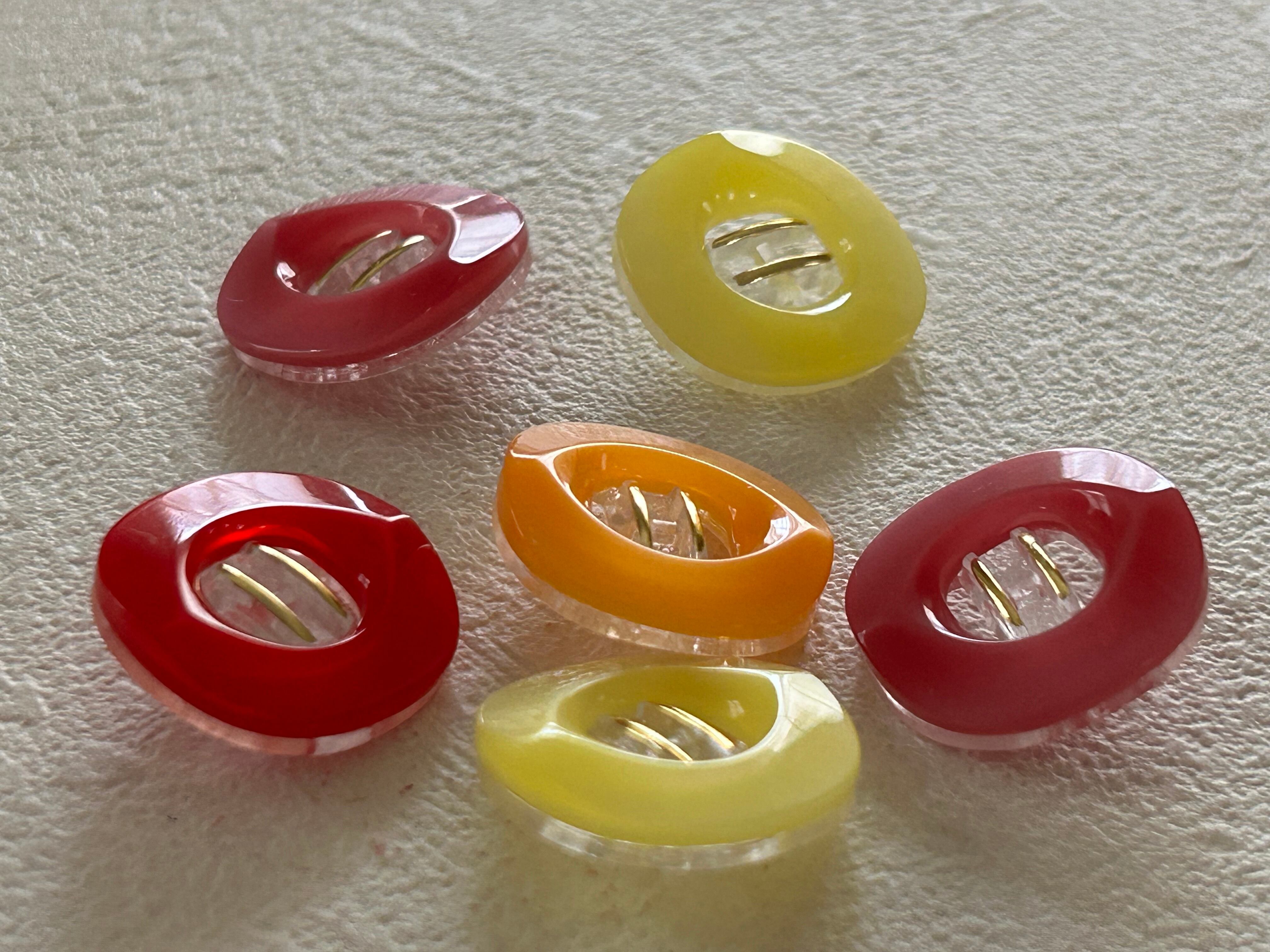 Japanese Vintage ボタン 角なしスクウェア レッド/イエロー/オレンジ/ピンク系 20mm プラスチック 昭和レトロ アクセサリーパーツ 装飾材 カルトナージュ