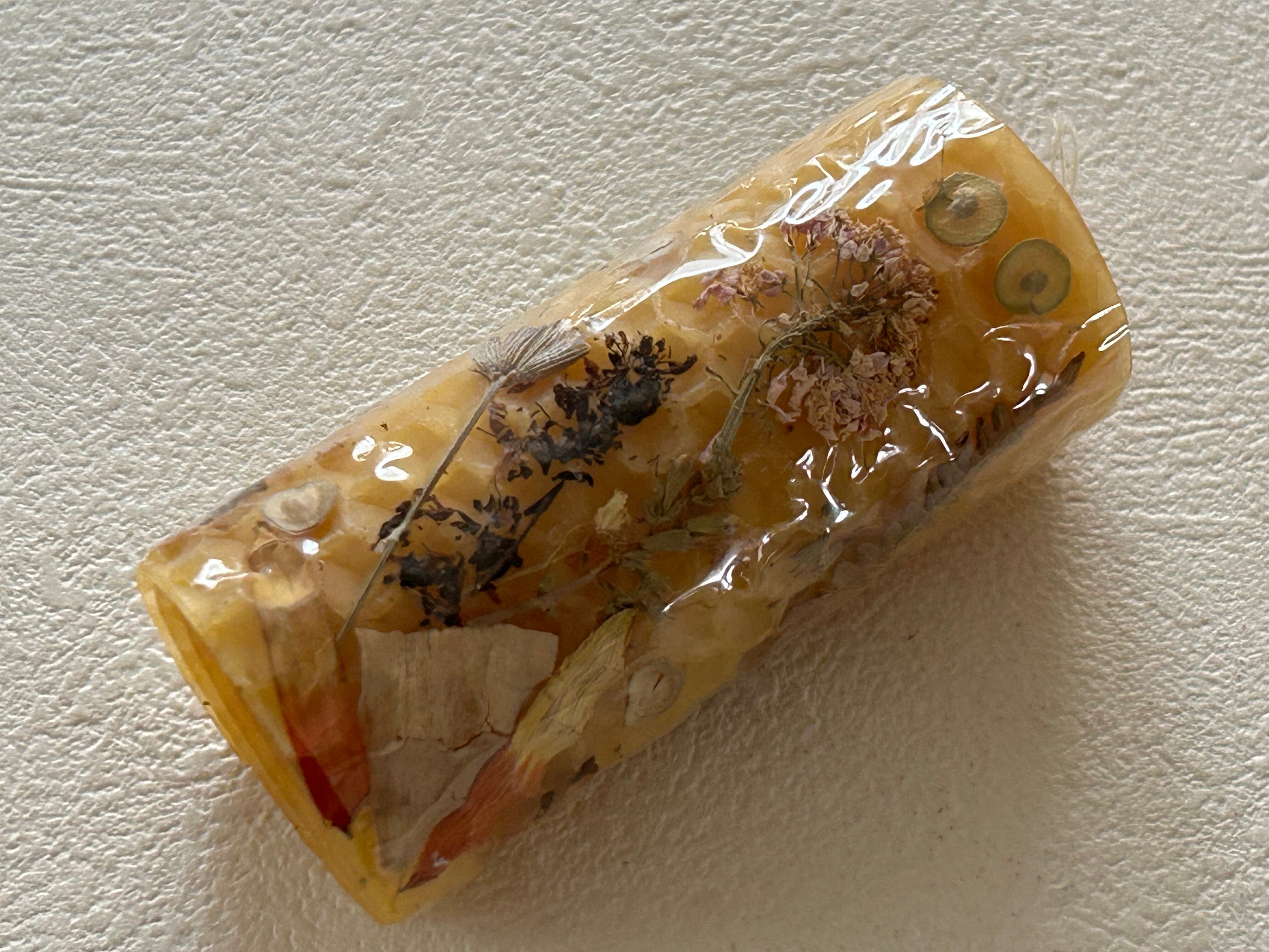 また表面にはドライフラワーが貼り付けられています。