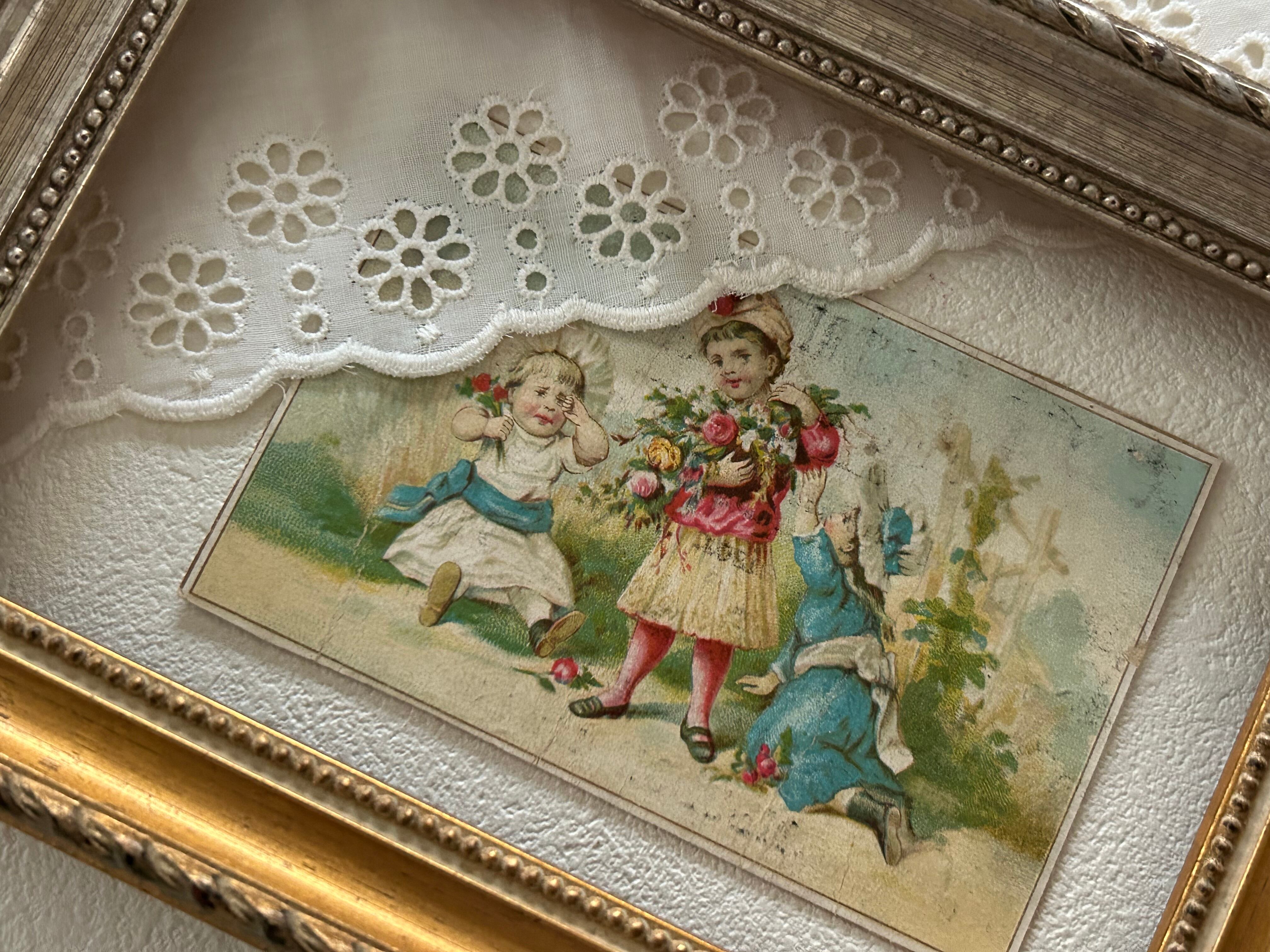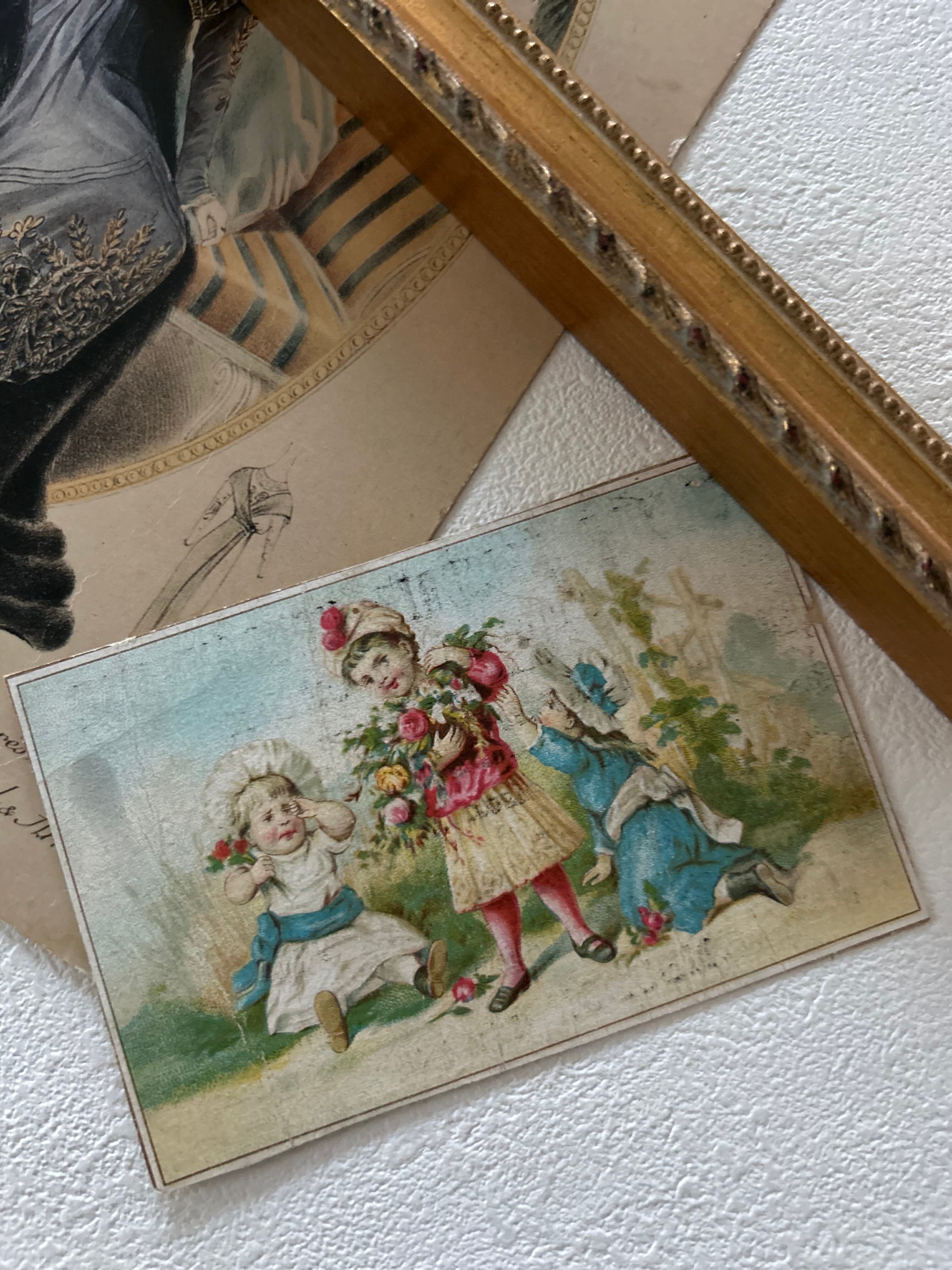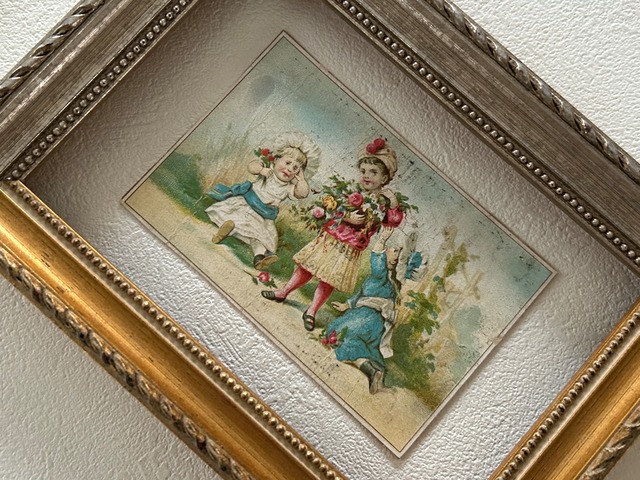 フランスアンティーク クロモカード EPICERIE 子供柄 額装 インテリア小物 撮影小物 コレクション