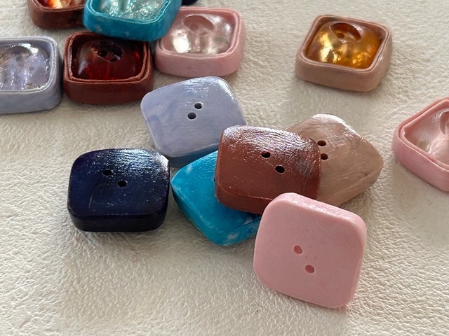 お菓子のような、レトロで雰囲気のある個性的なボタンです。